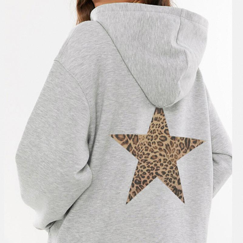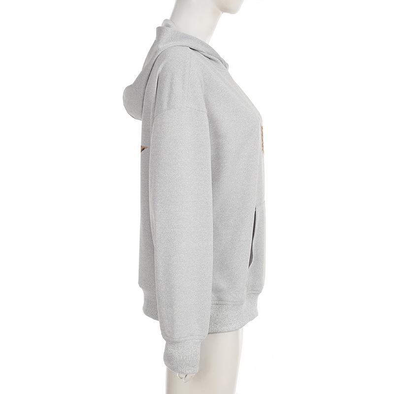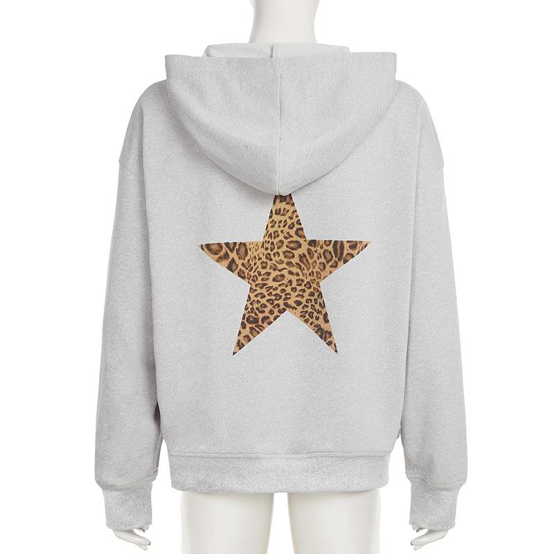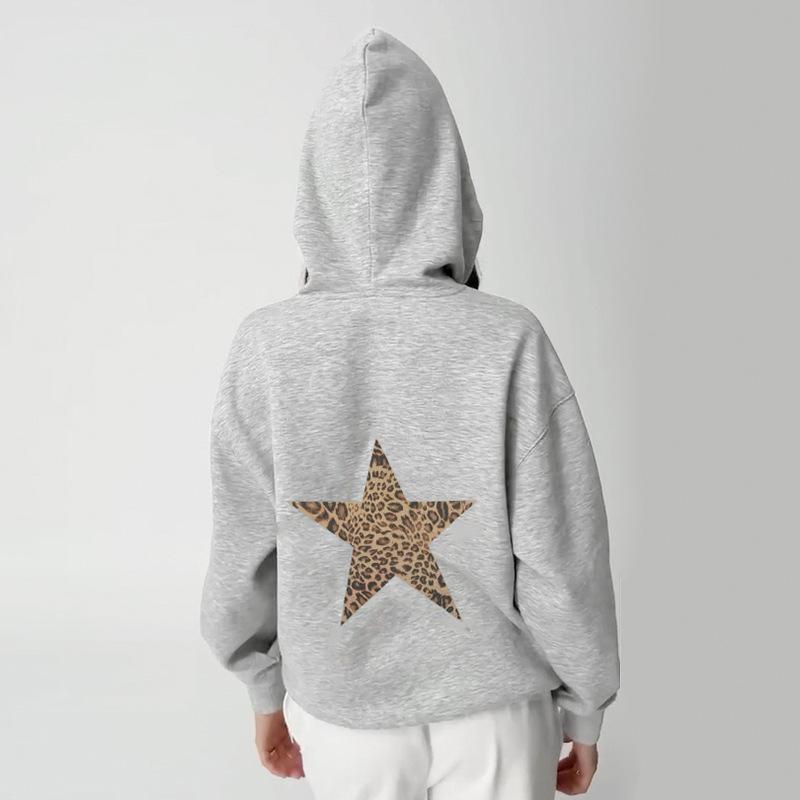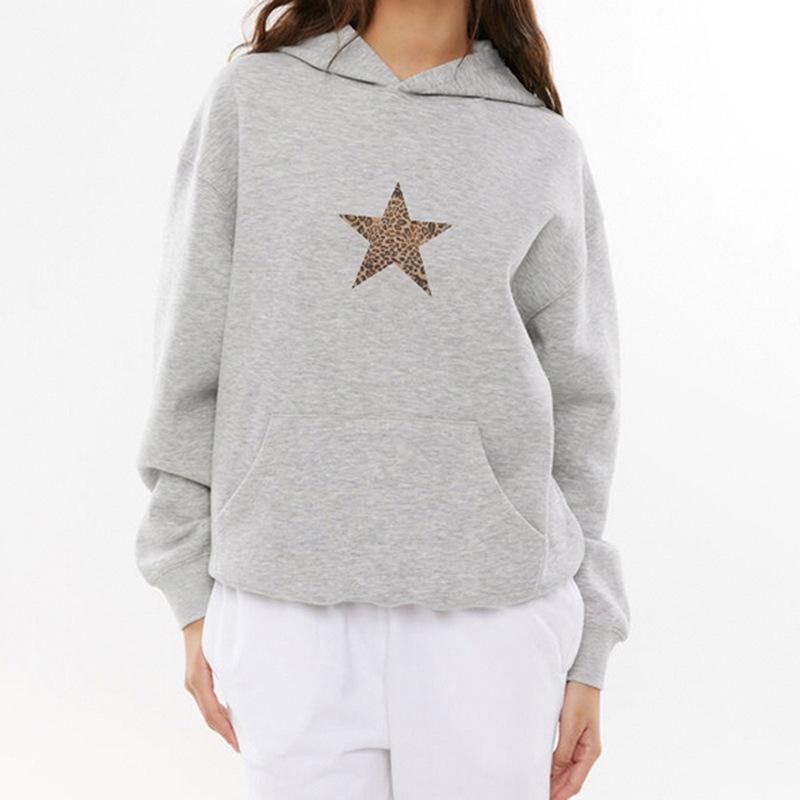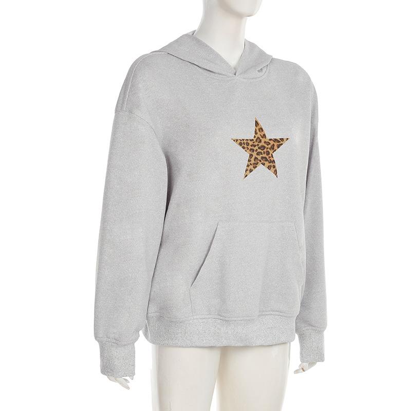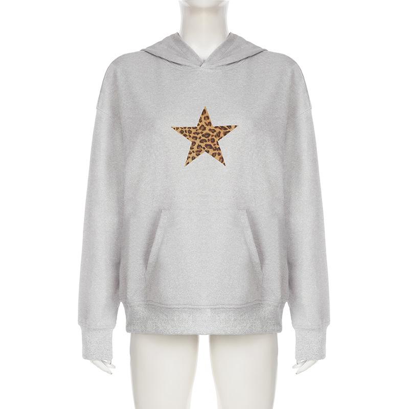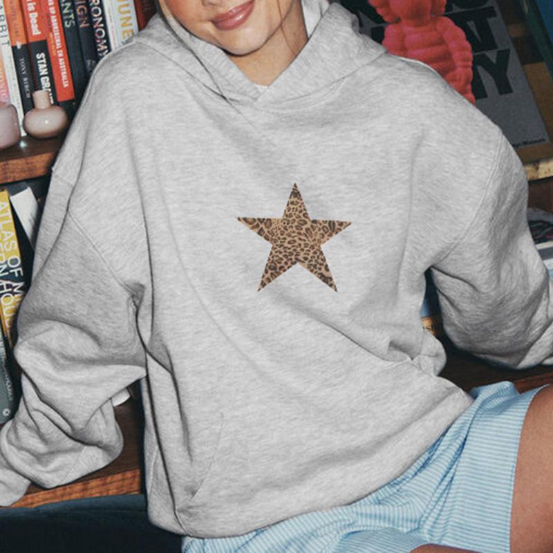 Sudadera holgada con capucha estampada con estrella de cinco puntas sencilla retro europea y americana para mujer, top casual de principios de otoño 01
