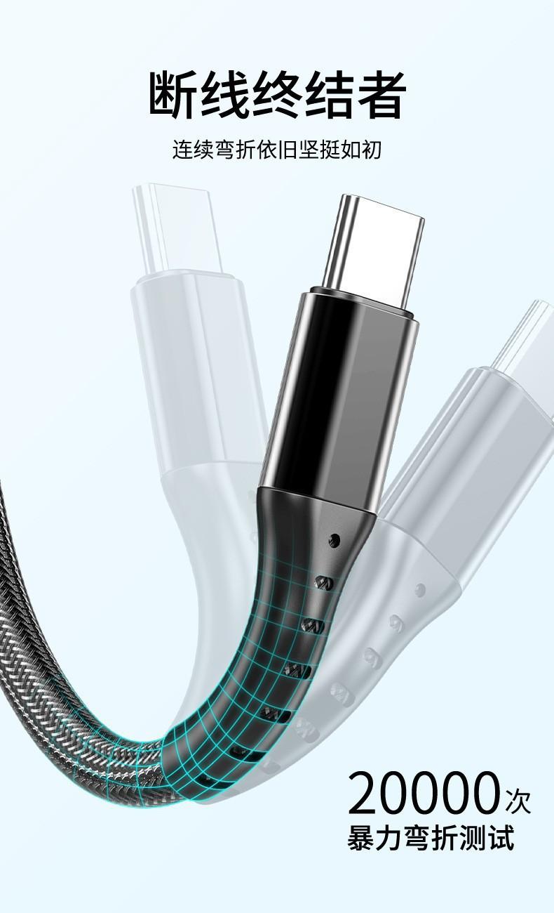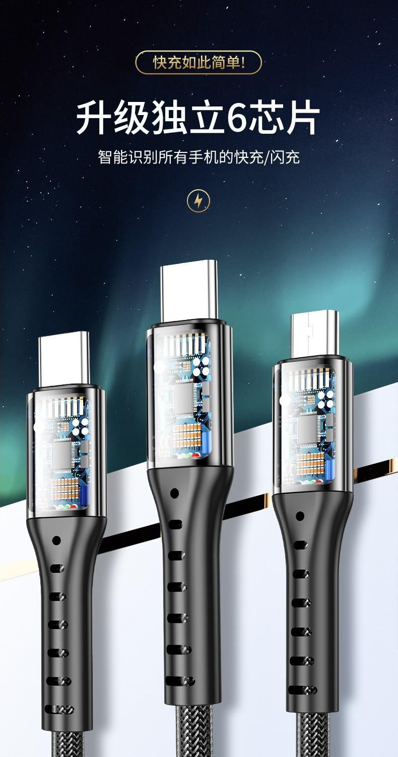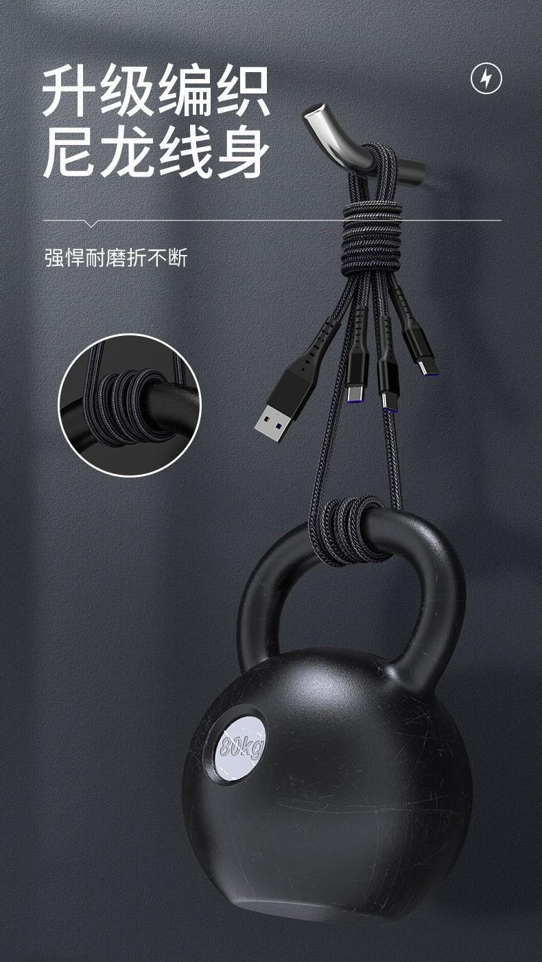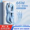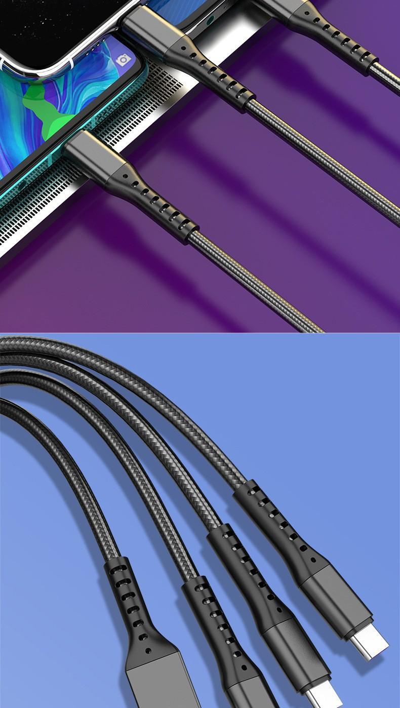 Cable Trenzado Tres en Uno de 66W de Carga Rápida Adecuado para Apple, Huawei, Cable de Carga Tipo C de Uno a Tres, Cable de Datos de Carga Rápida