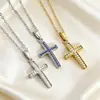 Collar Cruz Diamante Simple Nuevo Acero Titanio Suéter Mujer Lujo Ligero Nicho Cadena Joyería Diseño Nicho