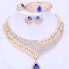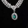 2024 Nuevo Estilo Europeo y Americano Lujo Zafiro Collar Aretes Pulsera Juego de Cuatro Piezas Joyería para Mujer Vestido de Boda
