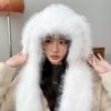 Set de Gorro y Bufanda de Orejas de Oso de Peluche Personalizado Estampado Leopardo Piel Sintética Mongol Sombrero de Pescador Bufanda Removible