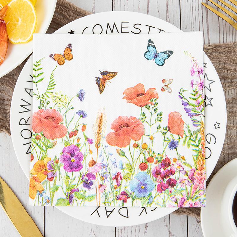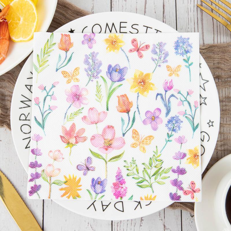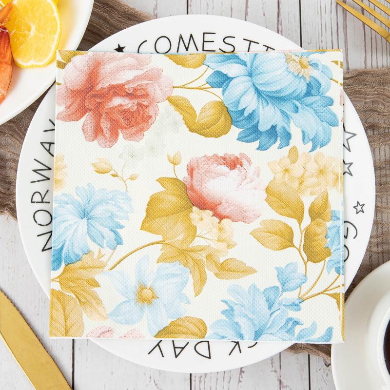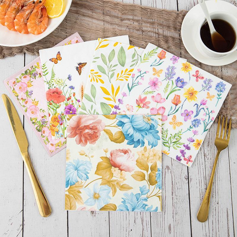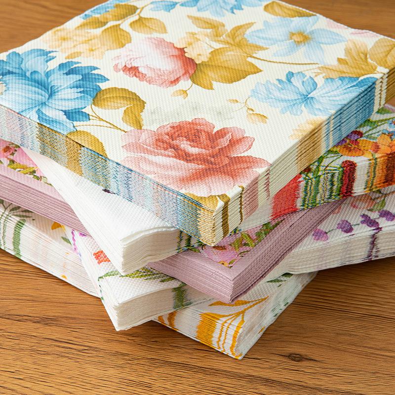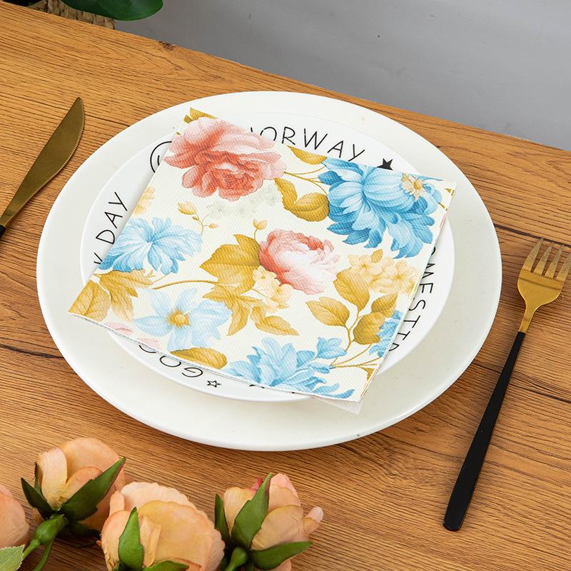 Servilletas de papel Temu con diseño de flores, color Amazon, para decoración de mesa de cocina y hogar, toallas de papel estampadas, pequeñas toallas de papel cuadradas.