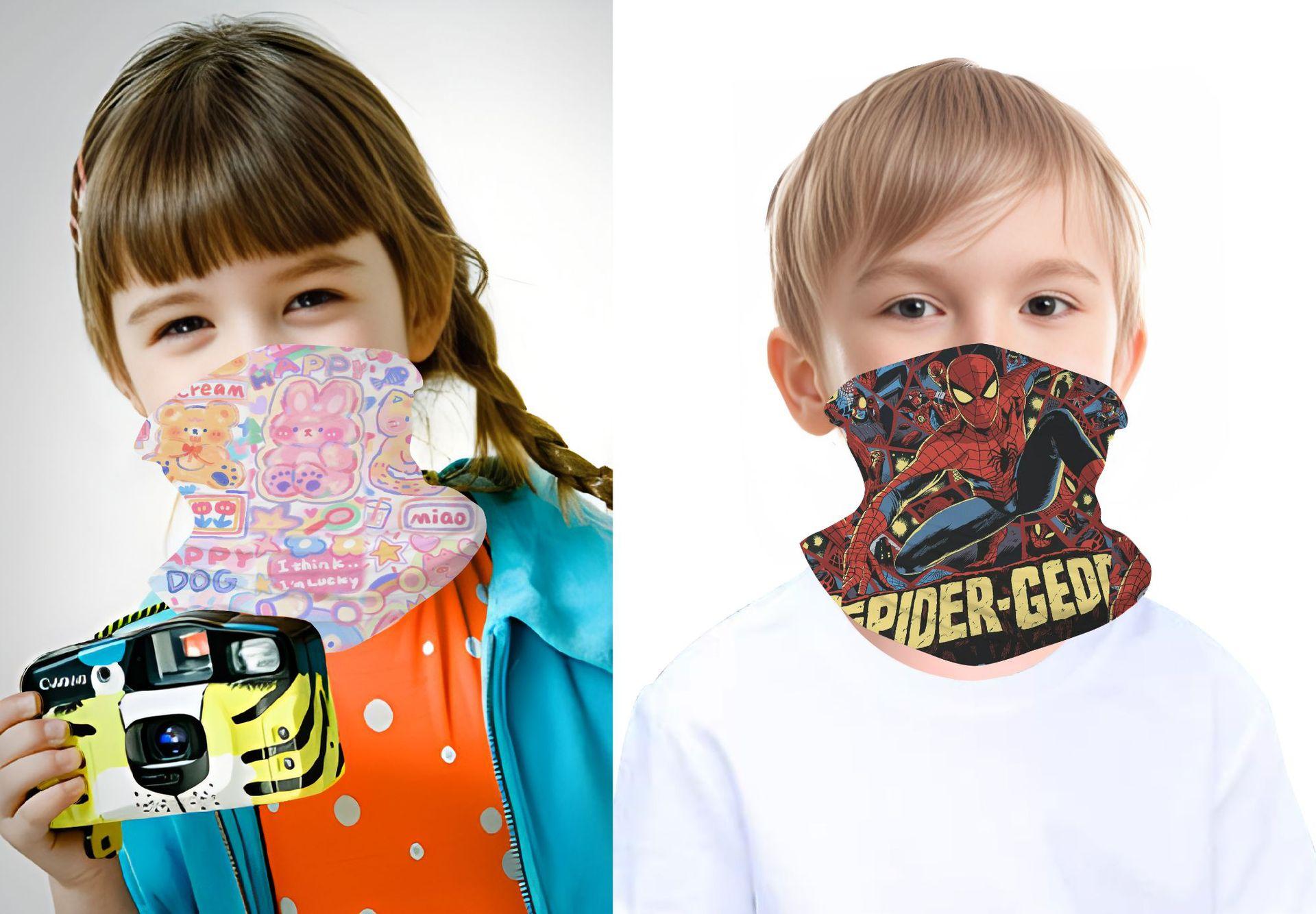 Nueva bufanda de seda de hielo para niños, toalla mágica para la cara, máscara cortavientos, máscara deportiva para ciclismo, estampado frío, caricatura