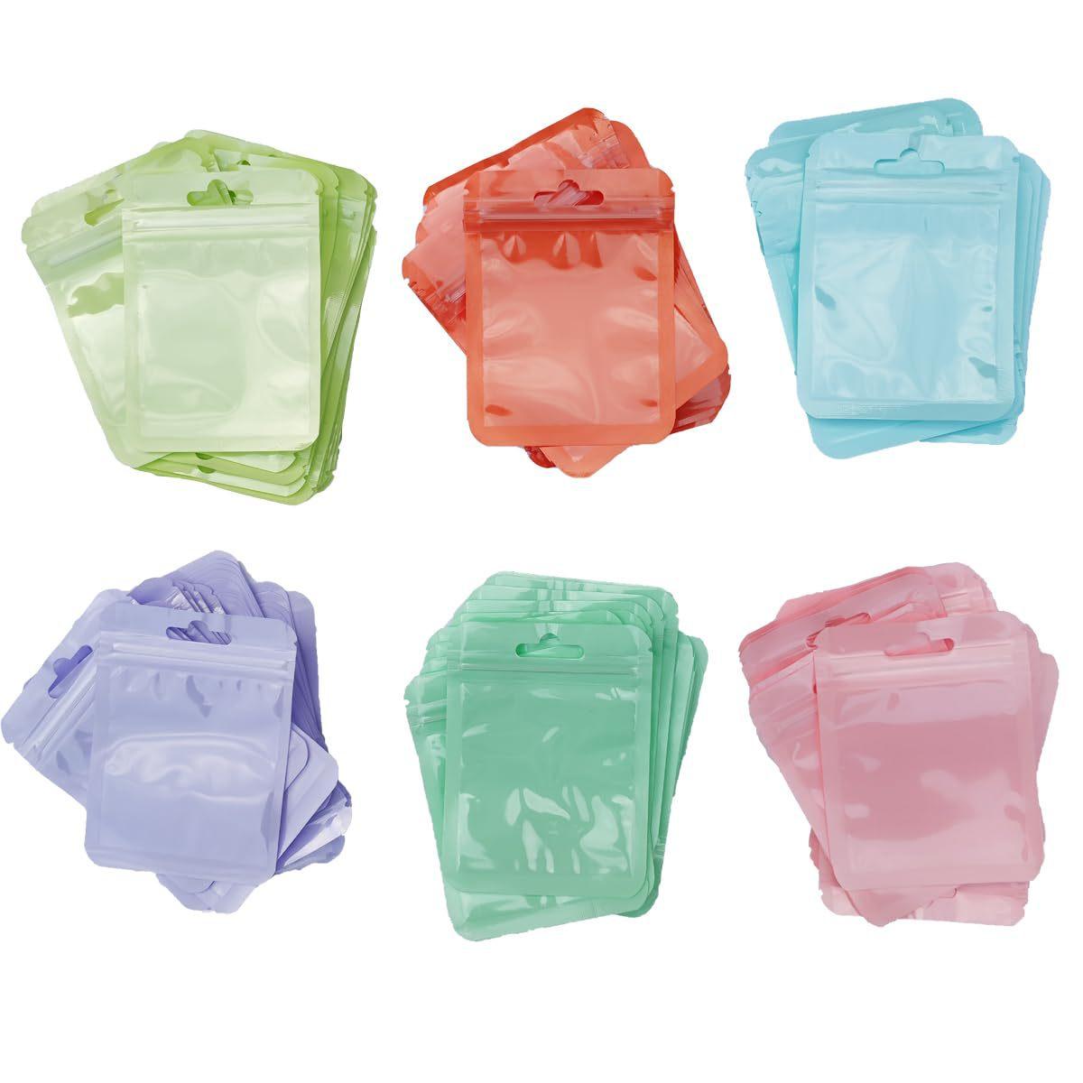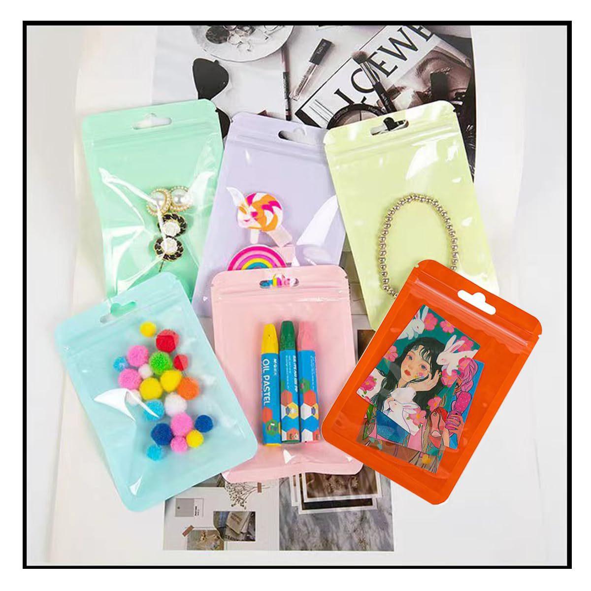 Bolsa autosellable color macaron con impresión interior, bolsa transparente de color engrosada yin-yang con hueso, bolsillo sellador para joyería, bolsa cosmética