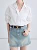 Elegante y Juvenil Camisa para Mujer, Nuevo Estilo Verano 2026, Casual Holgada Nicho Francés Cuello en V Manga Corta Fresca Blanca
