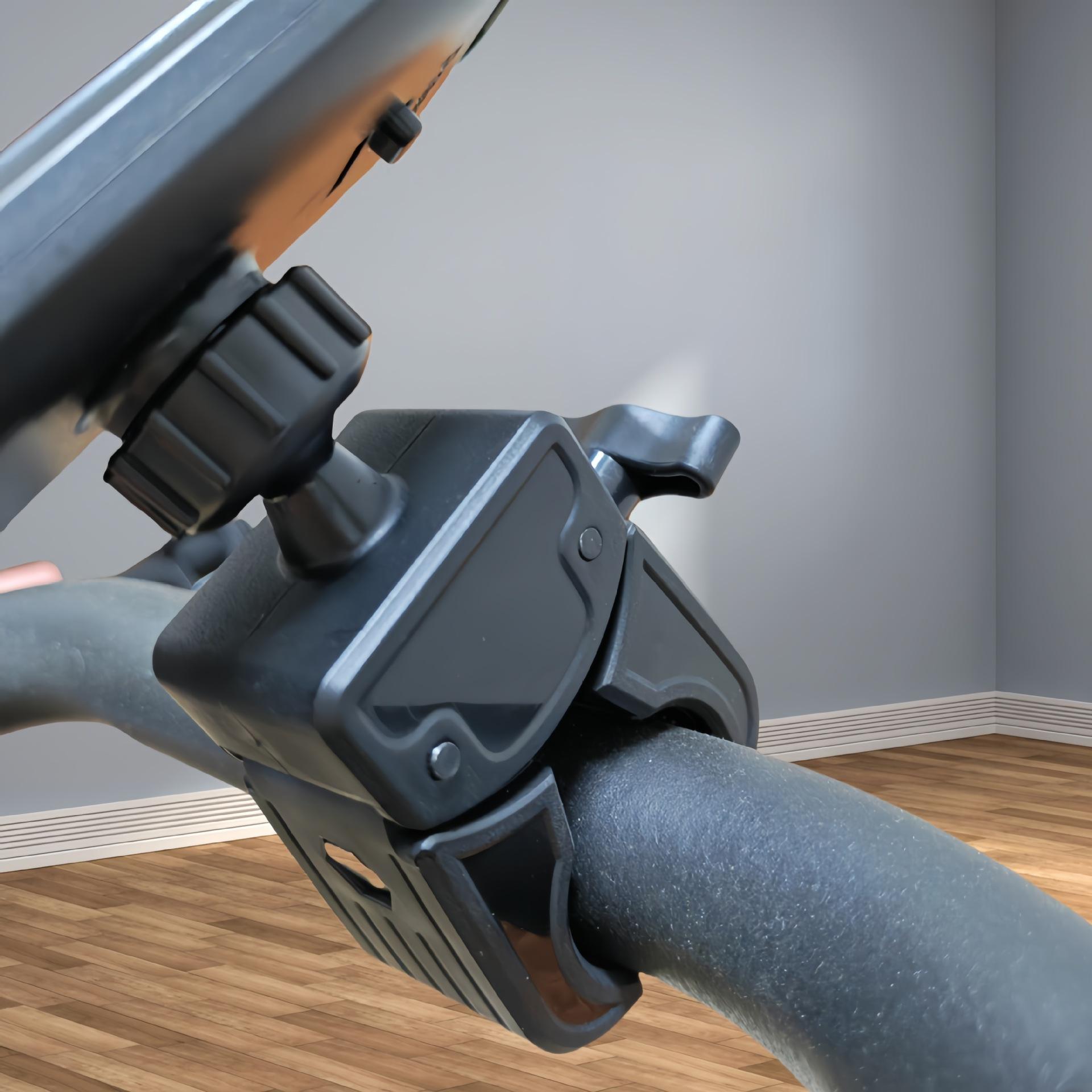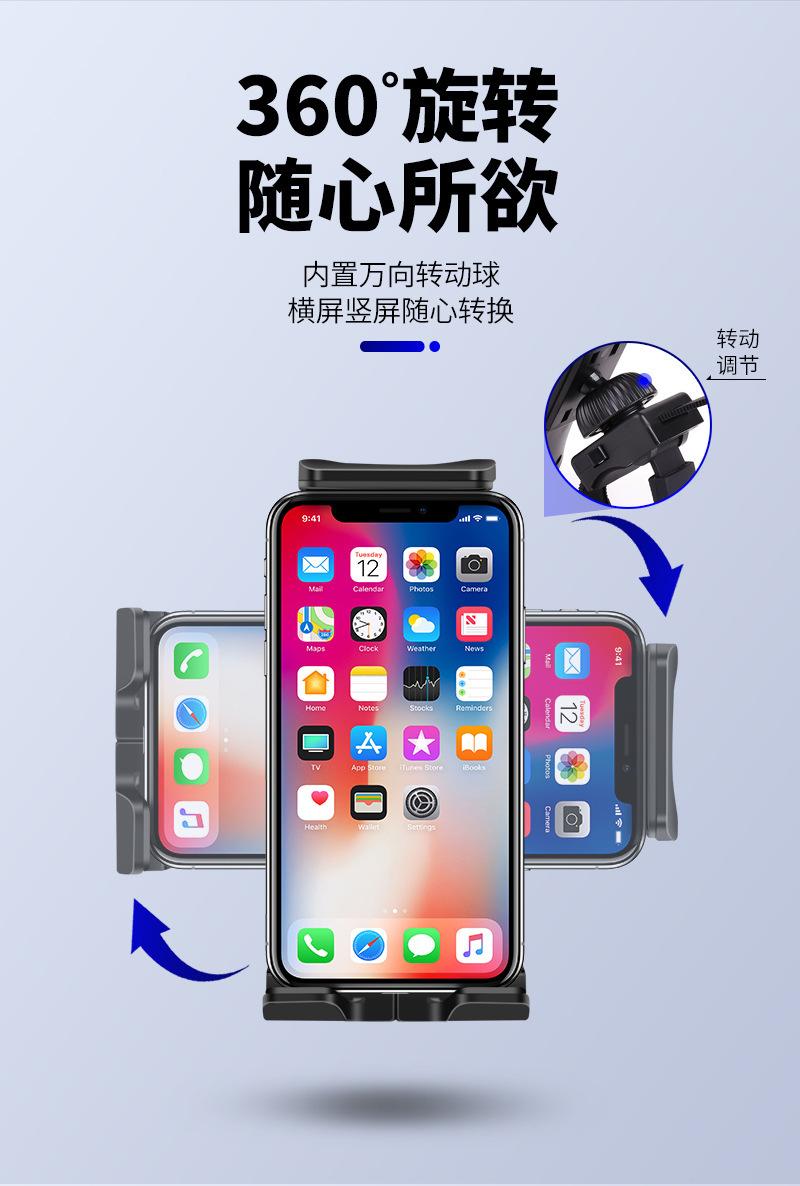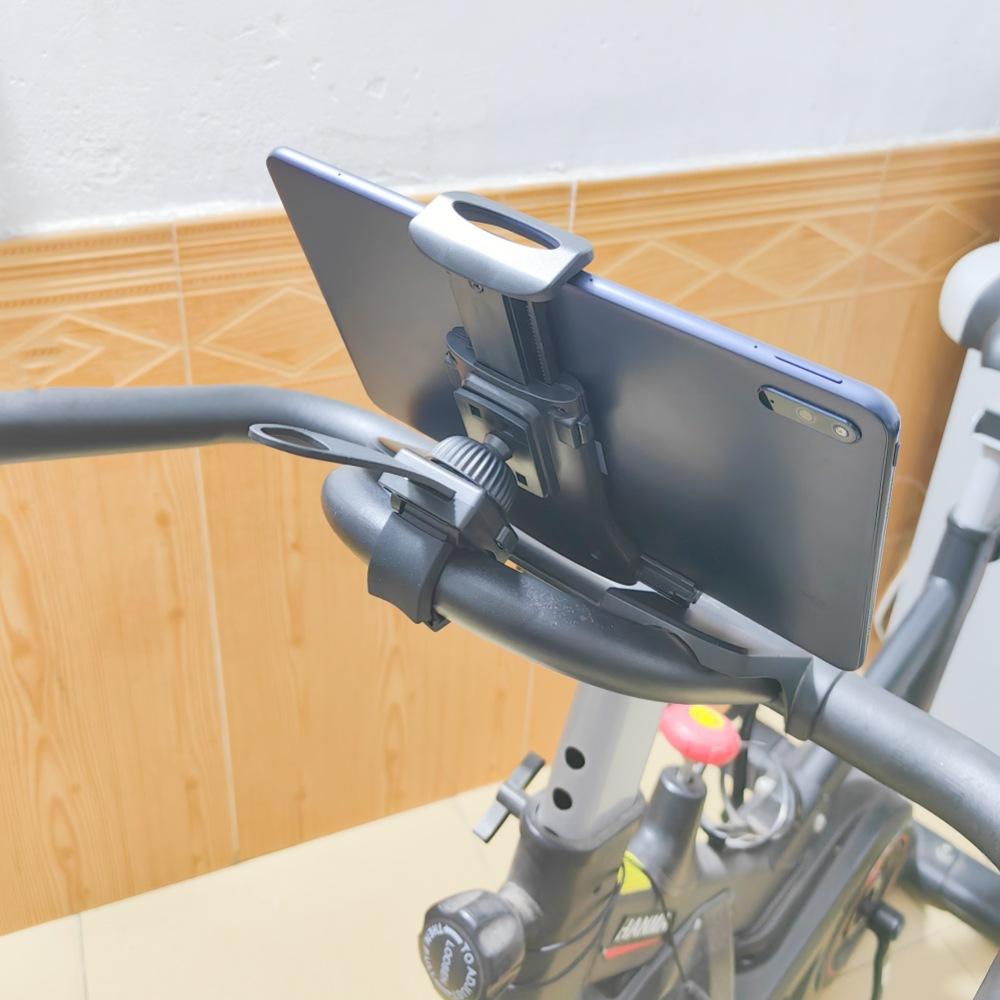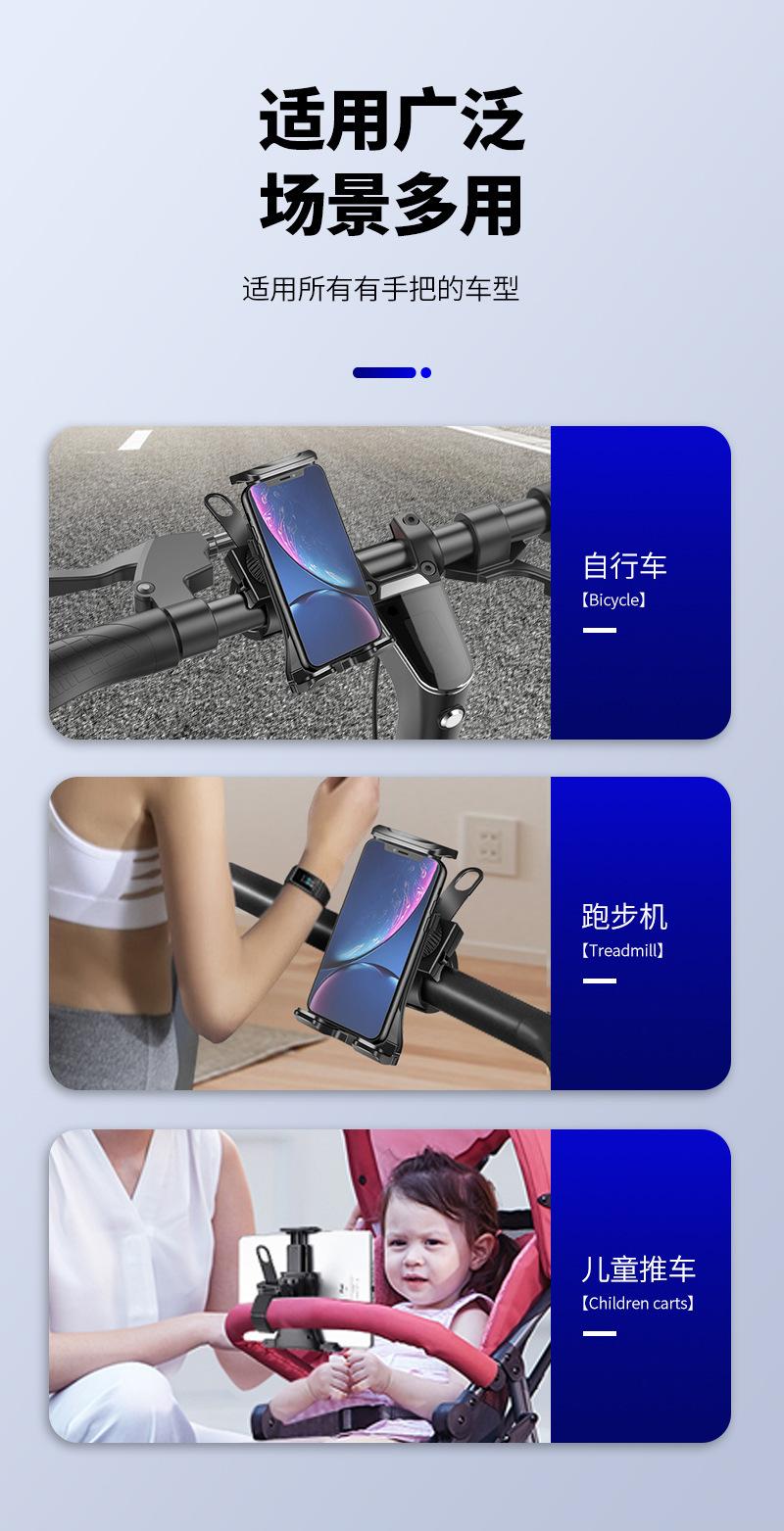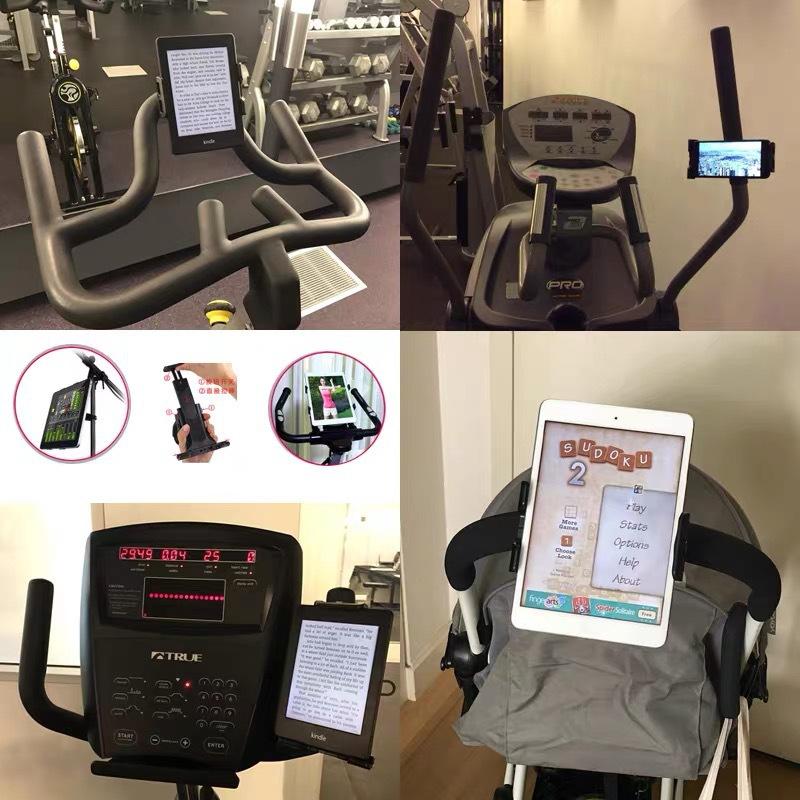 Estilo de correa, soporta tubos redondos y tubos cuadrados con un diámetro dentro de 4.5 cm, soporta varias bicicletas estáticas, cintas de correr, cochecitos, etc. con barras redondas y cuadradas, tiene una amplia gama de aplicaciones, es altamente práctico, se puede usar en manillares de bicicleta y motocicleta para paseos al aire libre, soporta varios teléfonos móviles y tabletas de hasta 13 pulgadas, un buen compañero para el ciclismo de fitness.