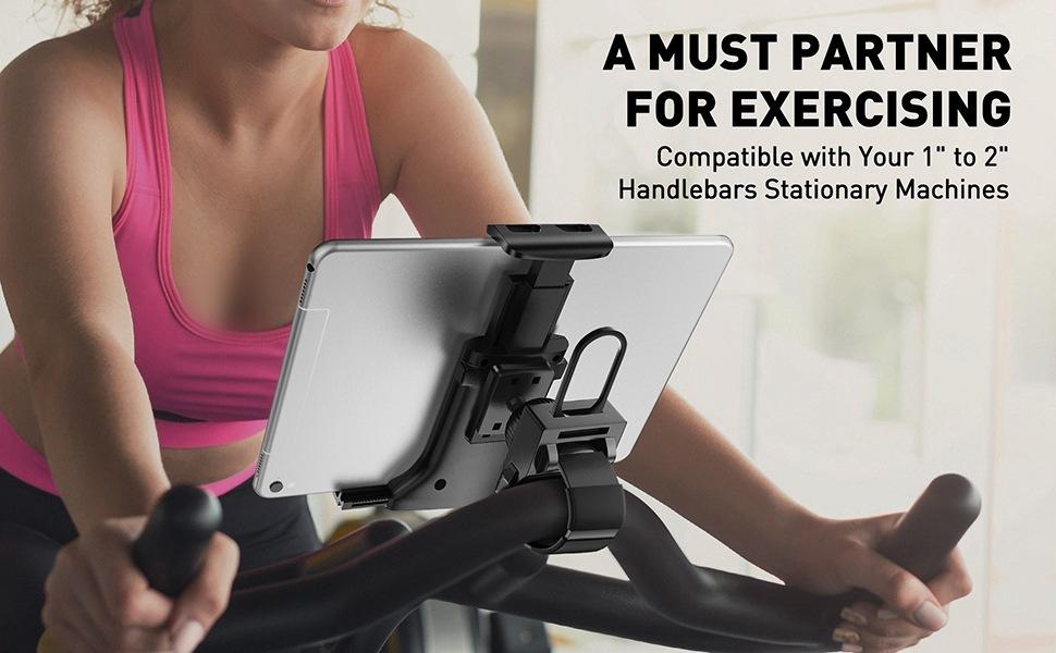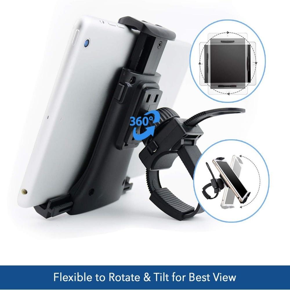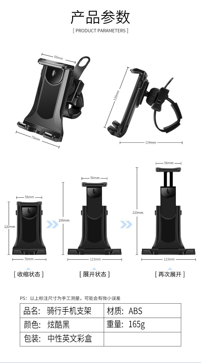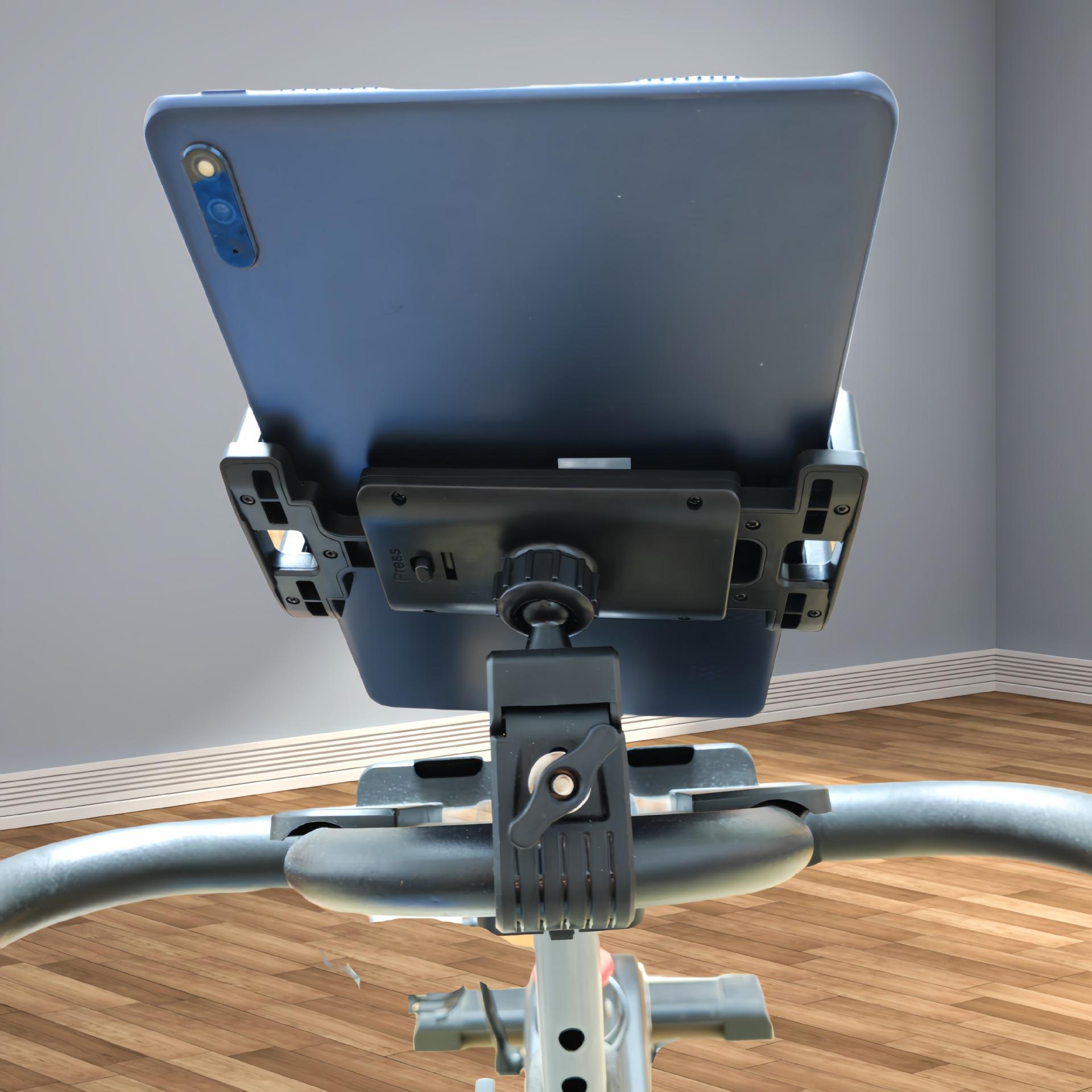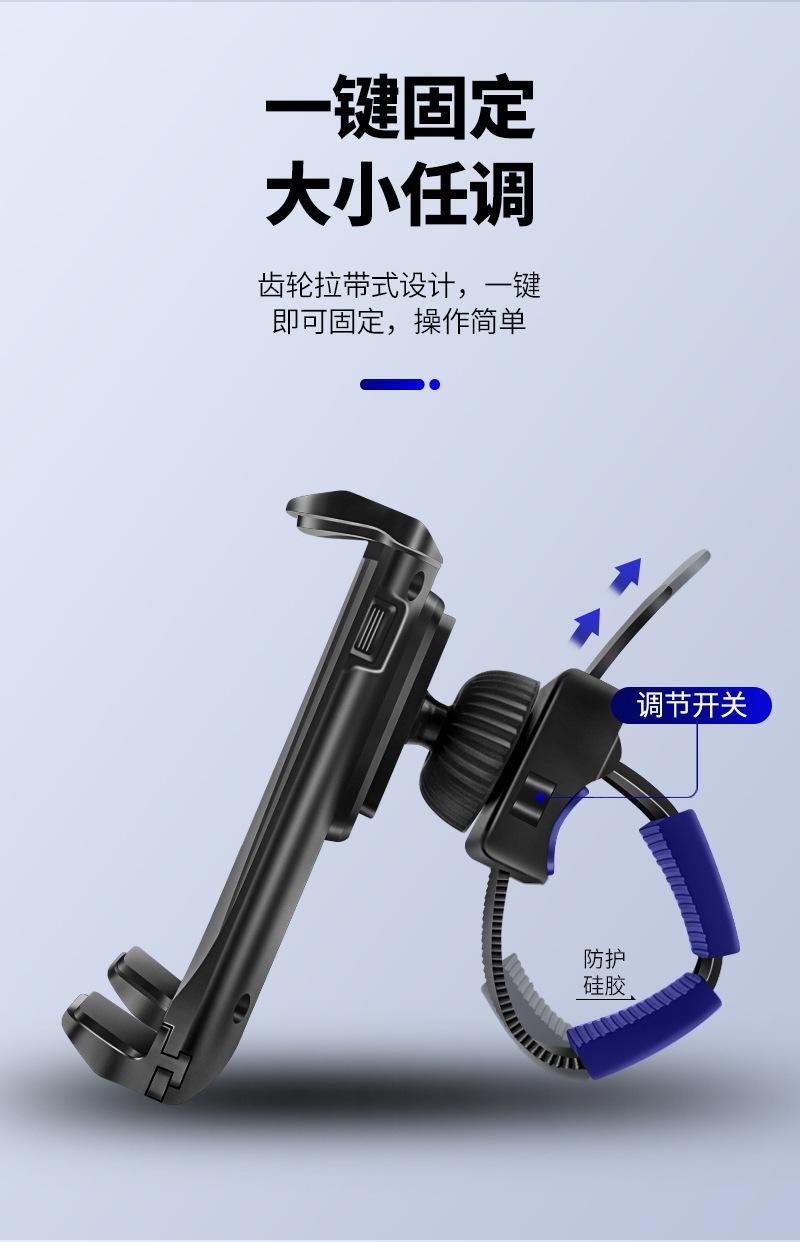 Estilo de correa, soporta tubos redondos y tubos cuadrados con un diámetro dentro de 4.5 cm, soporta varias bicicletas estáticas, cintas de correr, cochecitos, etc. con barras redondas y cuadradas, tiene una amplia gama de aplicaciones, es altamente práctico, se puede usar en manillares de bicicleta y motocicleta para paseos al aire libre, soporta varios teléfonos móviles y tabletas de hasta 13 pulgadas, un buen compañero para el ciclismo de fitness.