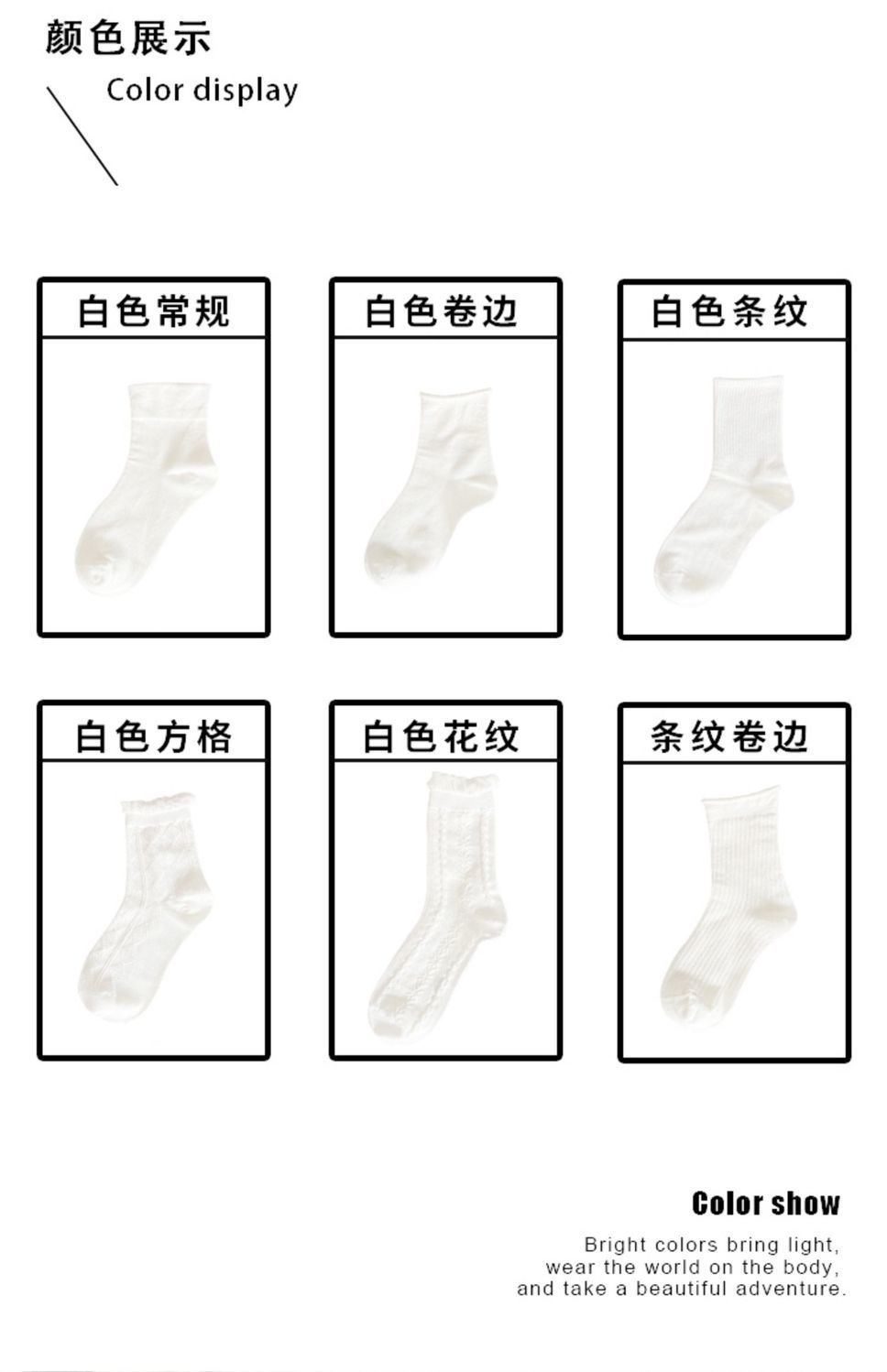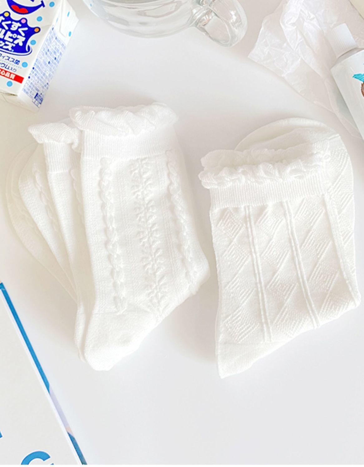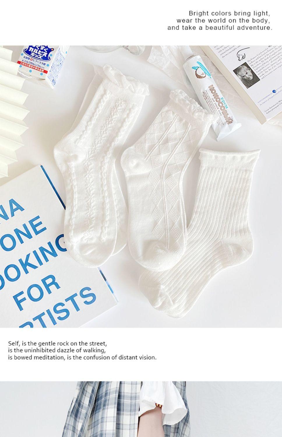 Lolita White Socks Mix and Match, White regular, white stripe, White hemming, white diamond, white twist, Striped hemming