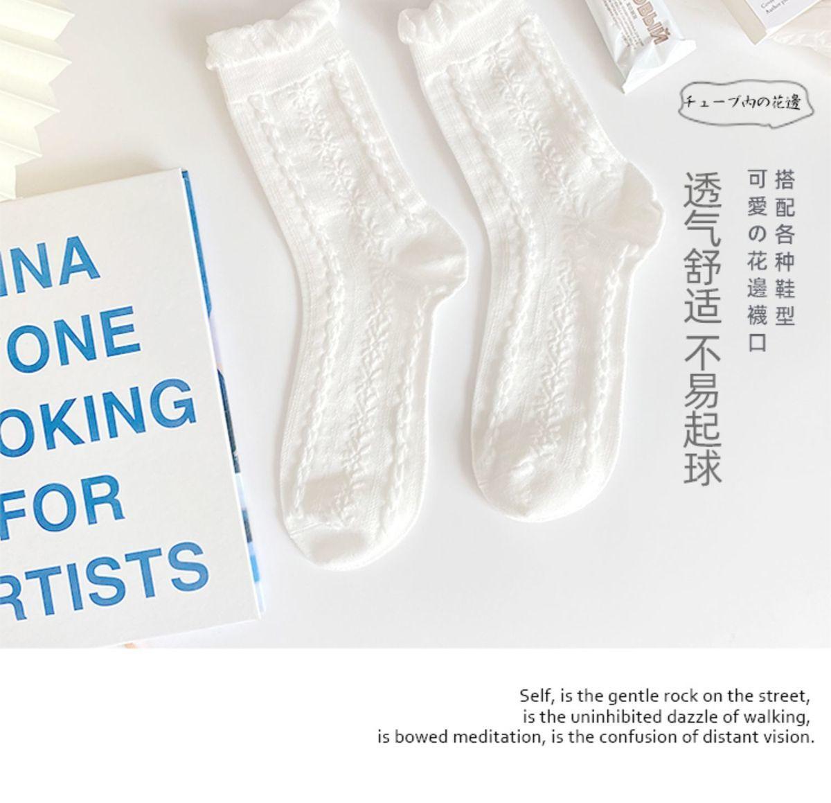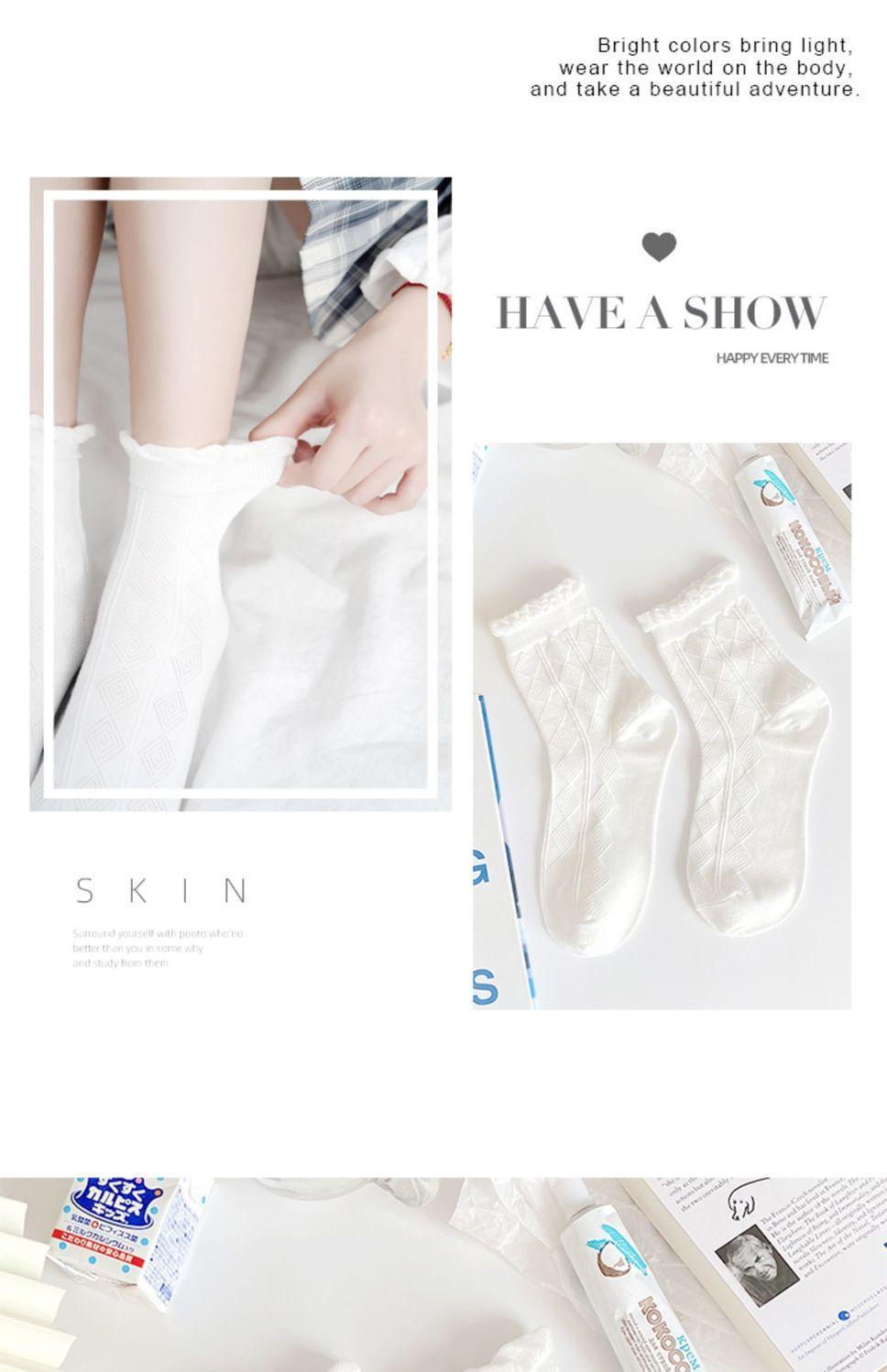 Calcetines JK Blancos Calcetines de Media Caña para Mujer Ins Modernos Otoño e Invierno Lindo Lolita Japonés Calcetines de Encaje Coreanos Estilo Delgado de Verano