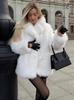 Abrigo de Mujer Estilo Nuevo Otoño e Invierno Europeo y Americano Estampado de Leopardo de Piel Abrigo Largo con Cuello de Traje Abrigo de Piel Sintética de Zorro F0869