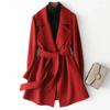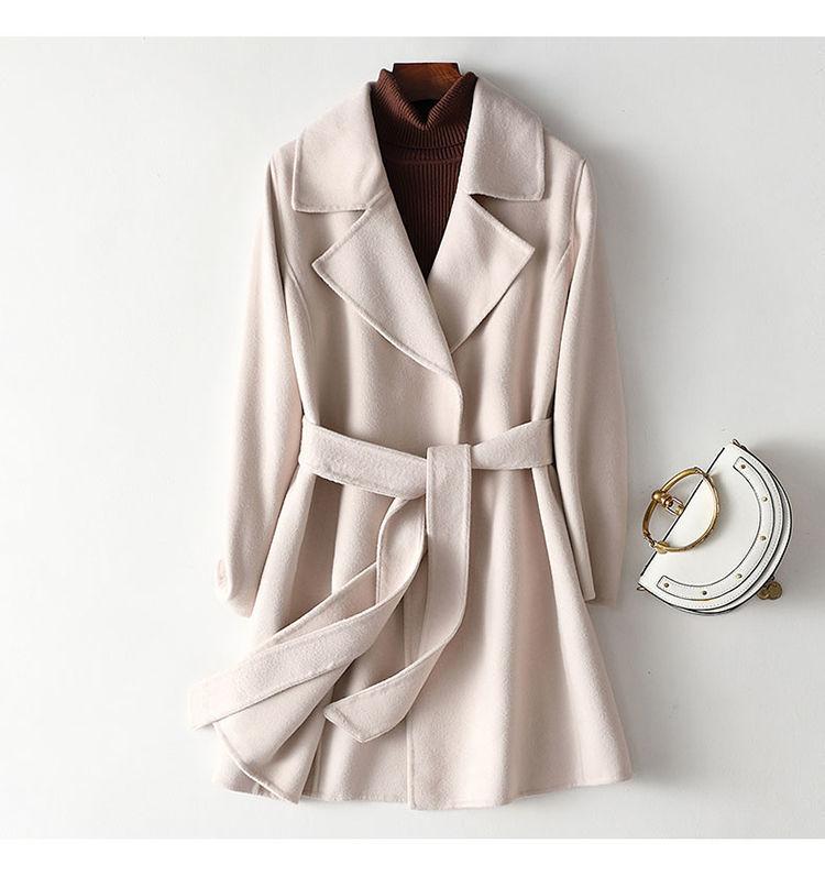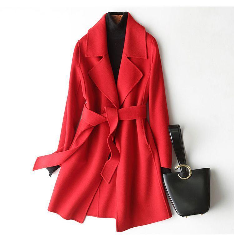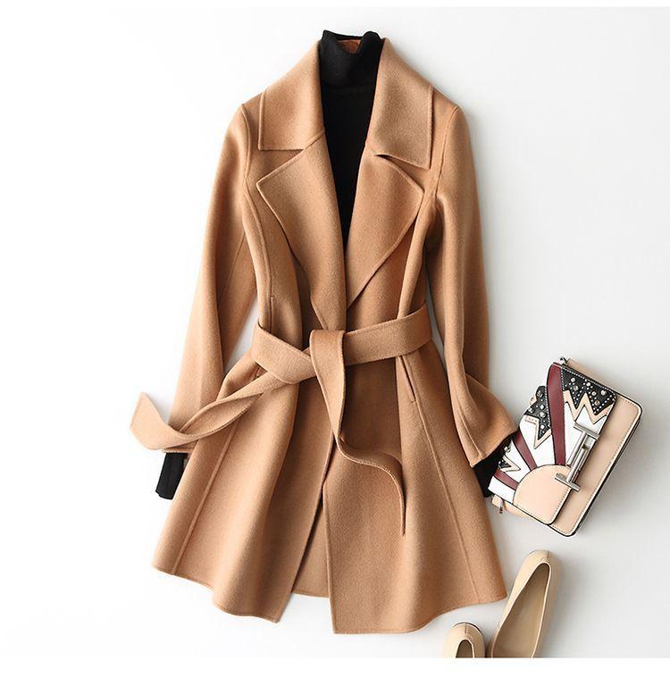 Abrigo de Lana Nuevo Otoño e Invierno 2024 para Mujer con Cinturón Abrigo Coreano de Largo Medio