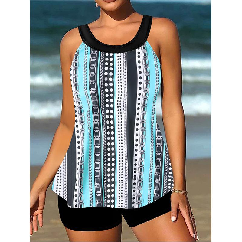 Traje de Baño de Talla Grande Dividido 2025 Tankini para Mujer Traje de Baño Estampado para Mujer Europea y Americana Estilo Falda Estación Independiente Exportación Transfronteriza