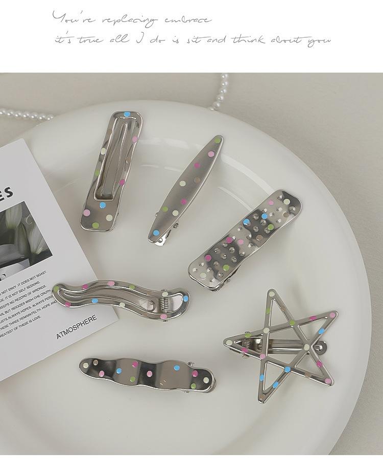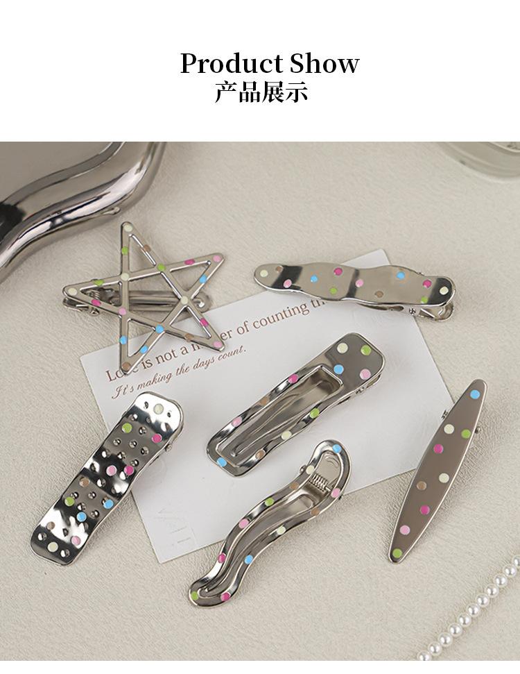 Horquilla de metal plateada con forma de gota de aceite de frijol de color para mujer, pinza lateral con goteo, horquilla para maquillaje, pinza para flequillo frontal, estilo pato