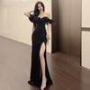Vestido halter ajustado de cintura alta con caída, ajustado, sin espalda, sin mangas, vestido de noche de banquete, vestido diario para el hogar hasta el largo