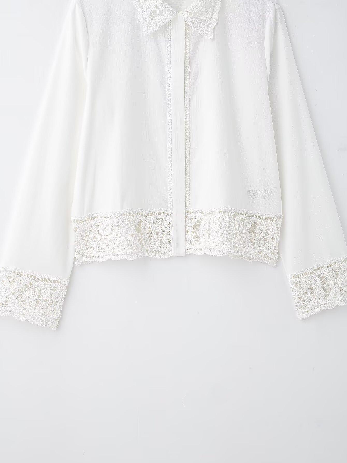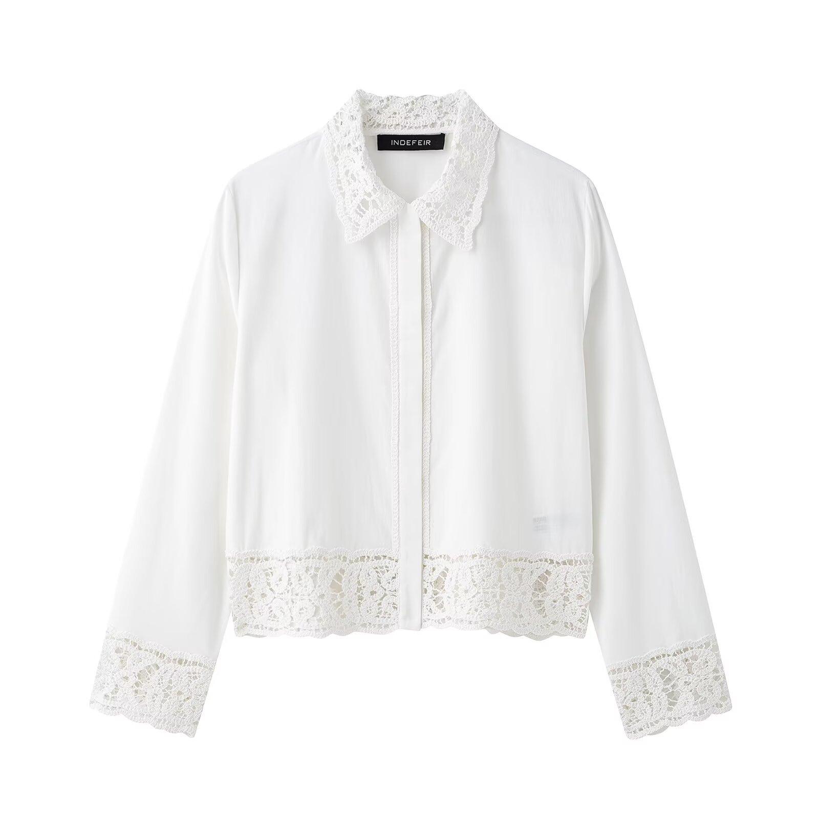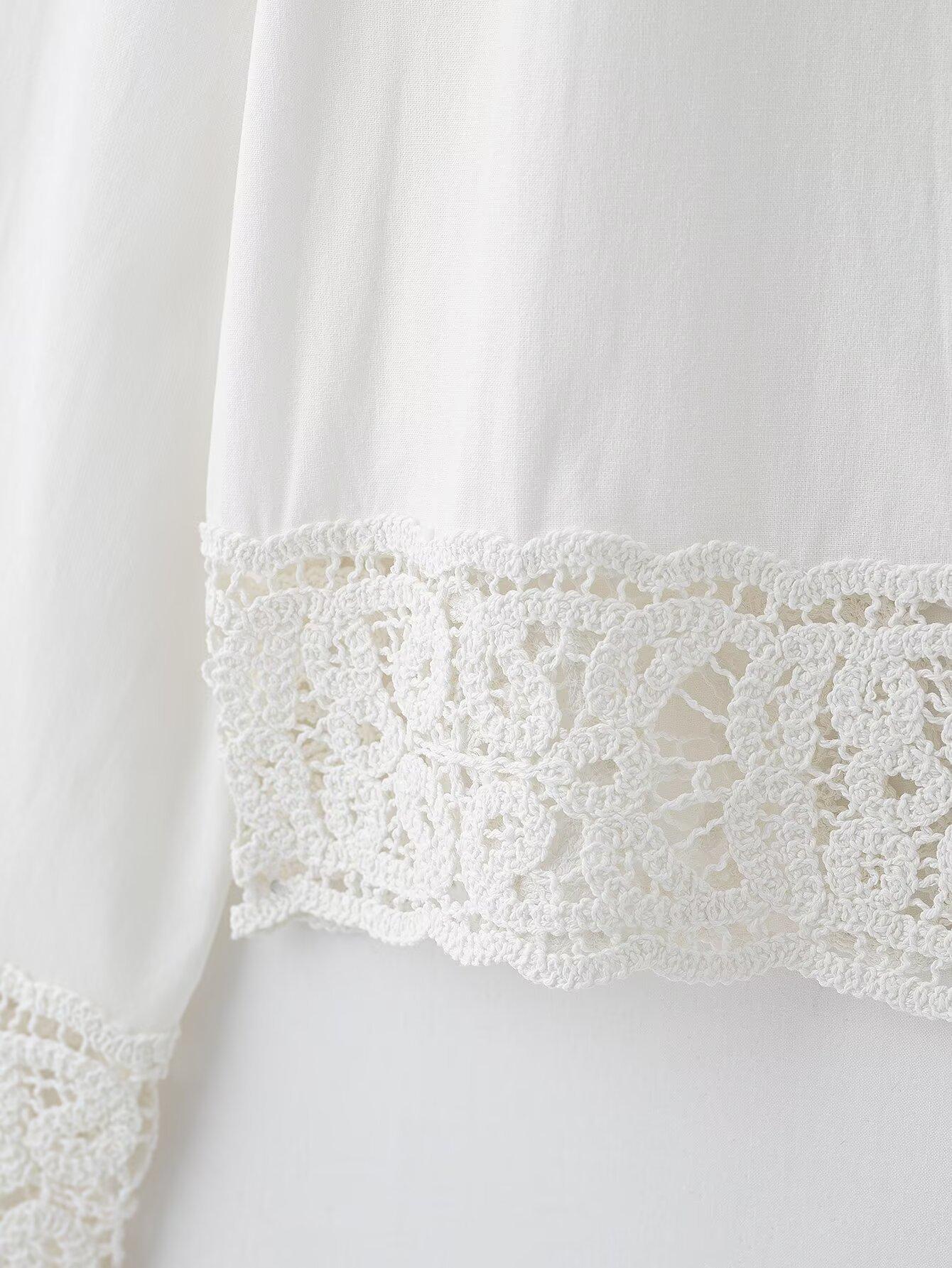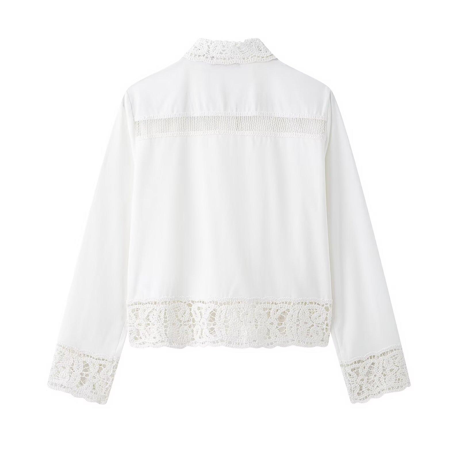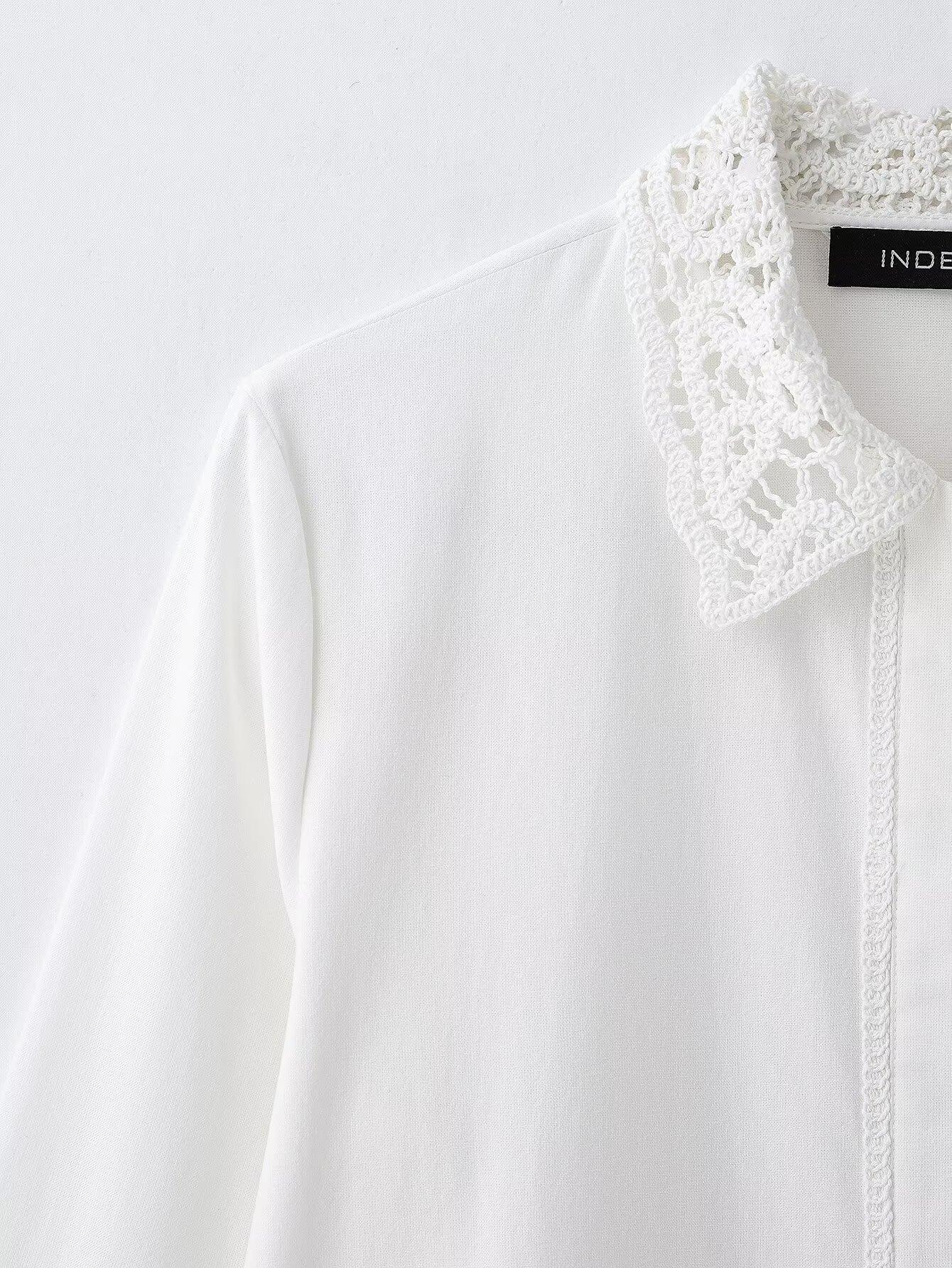 2025 Primavera Nuevo Europeo y Americano Transfronterizo para Mujer Camisa de Manga Larga con Empalme de Crochet + Pantalón Recto Drapeado