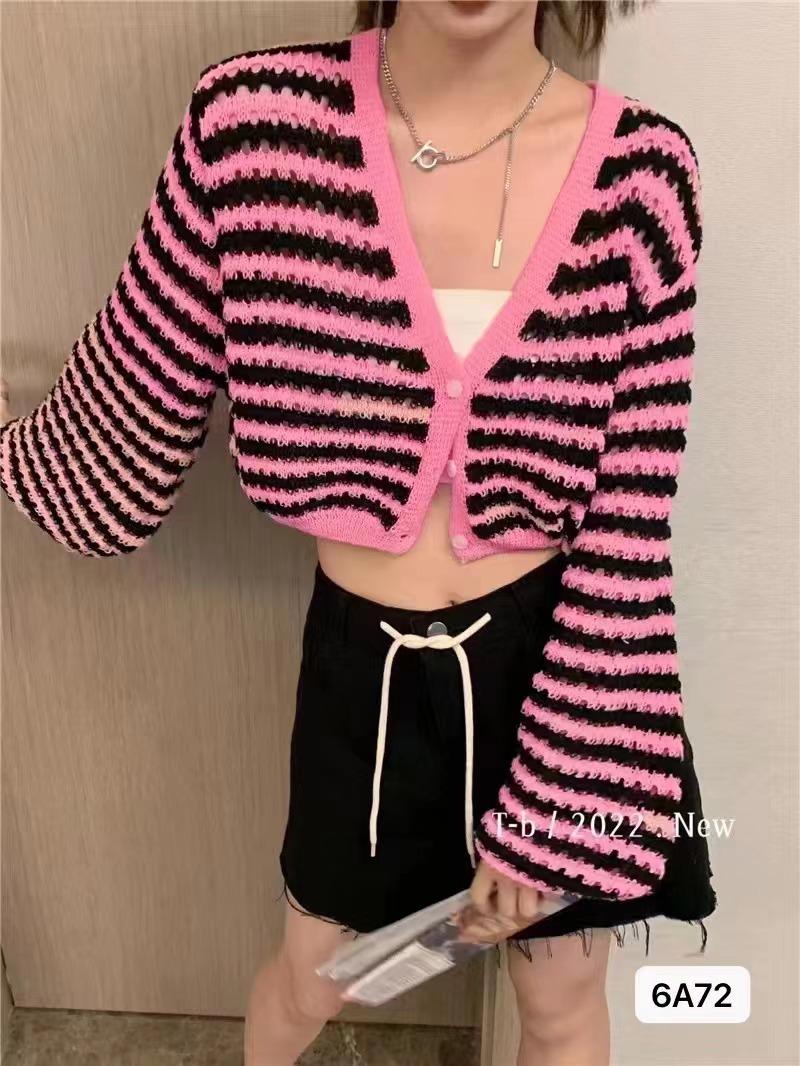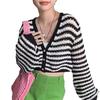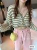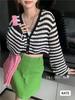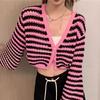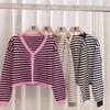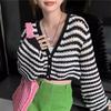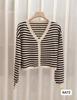 Verano Nuevo Estilo Francés Retro Cuello en V Pequeño Suéter Rayado Chanel Manga Larga Delgado Combinable Estilo Occidental Top Corto