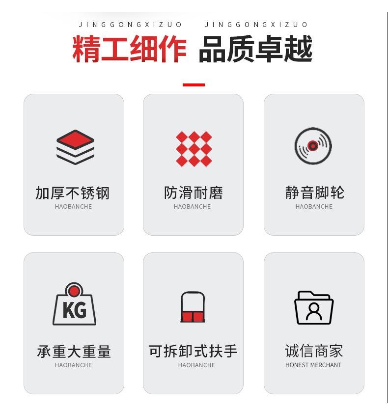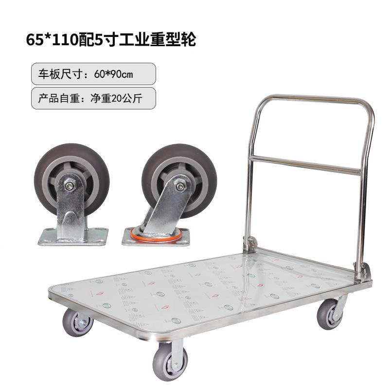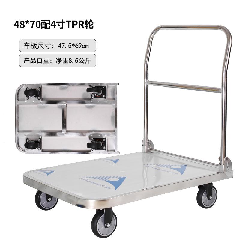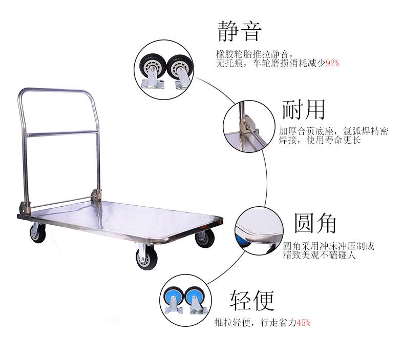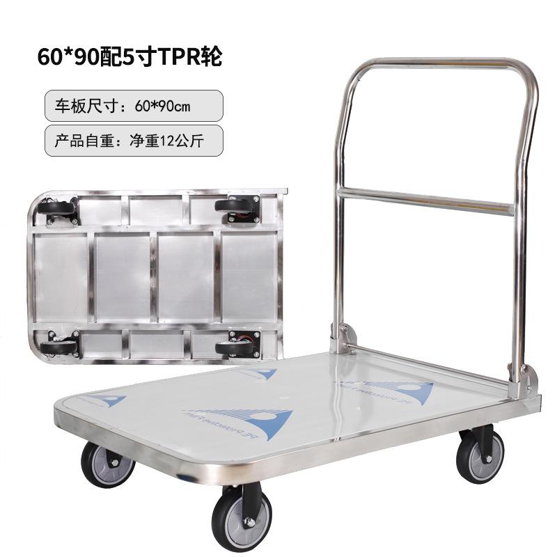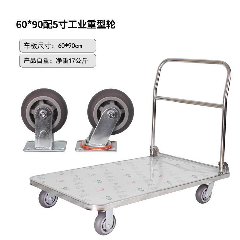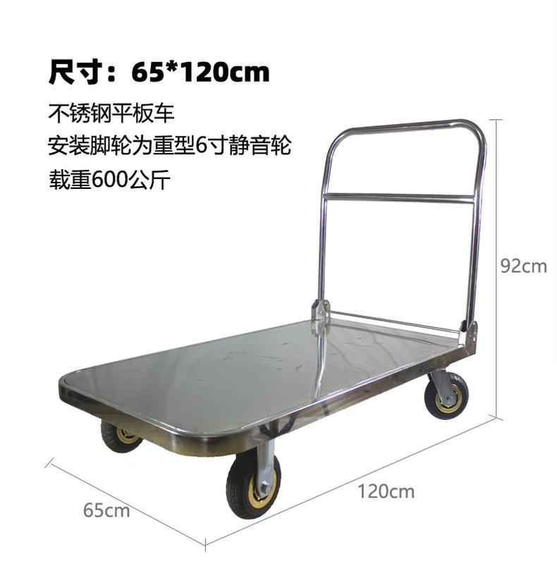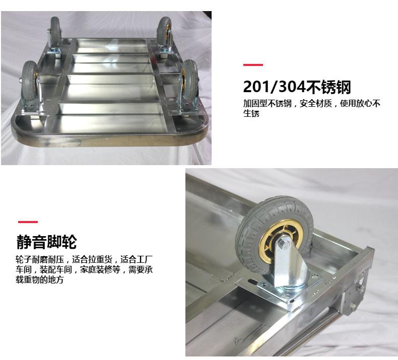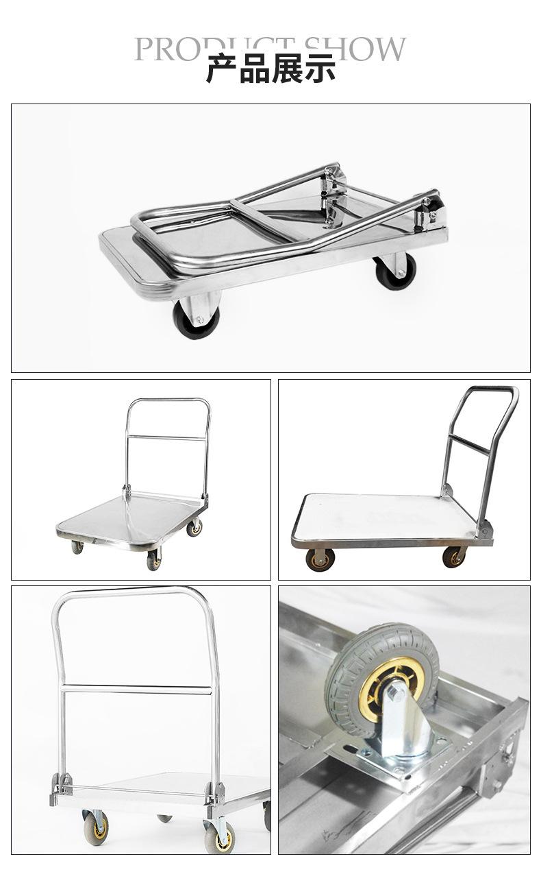 Carro de plataforma de acero inoxidable Carretilla de mano pequeña Carro de transporte Carro plegable silencioso Remolque Trabajador
