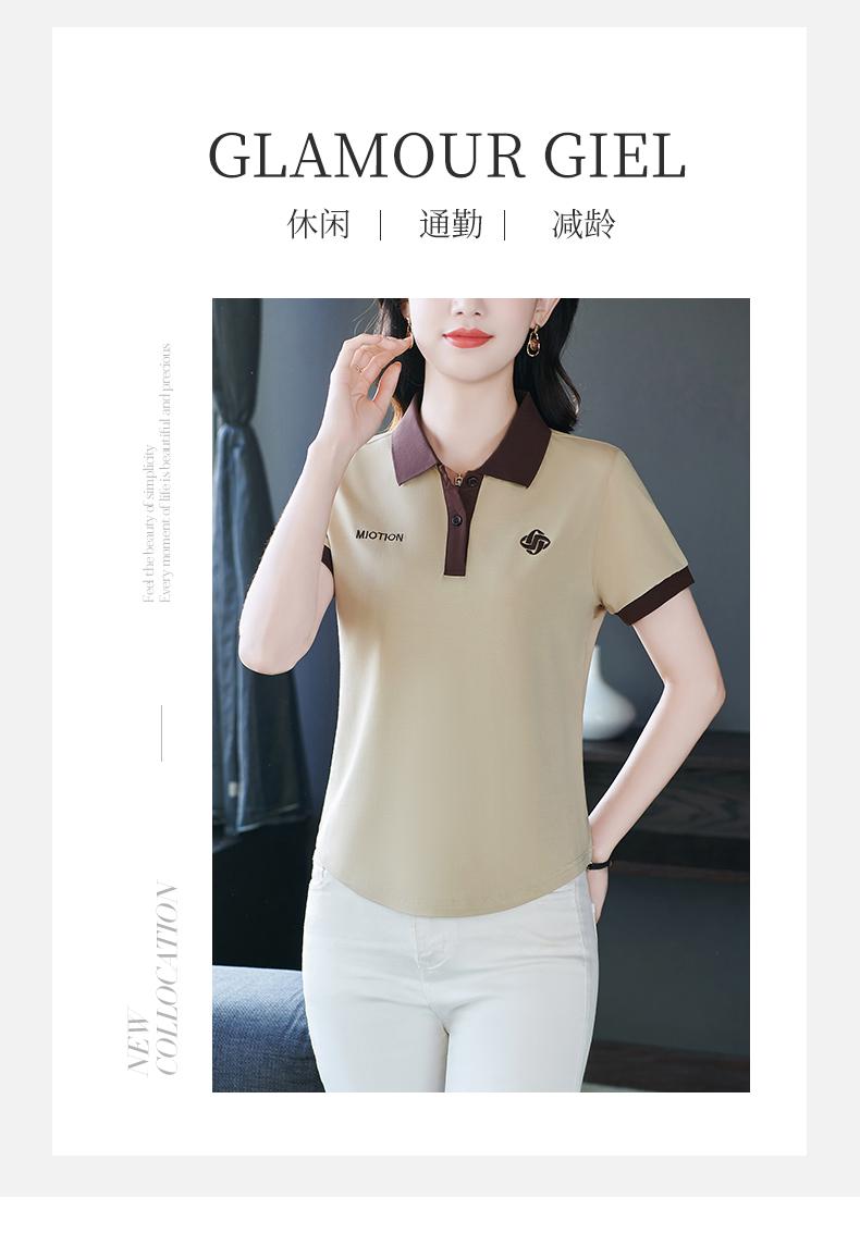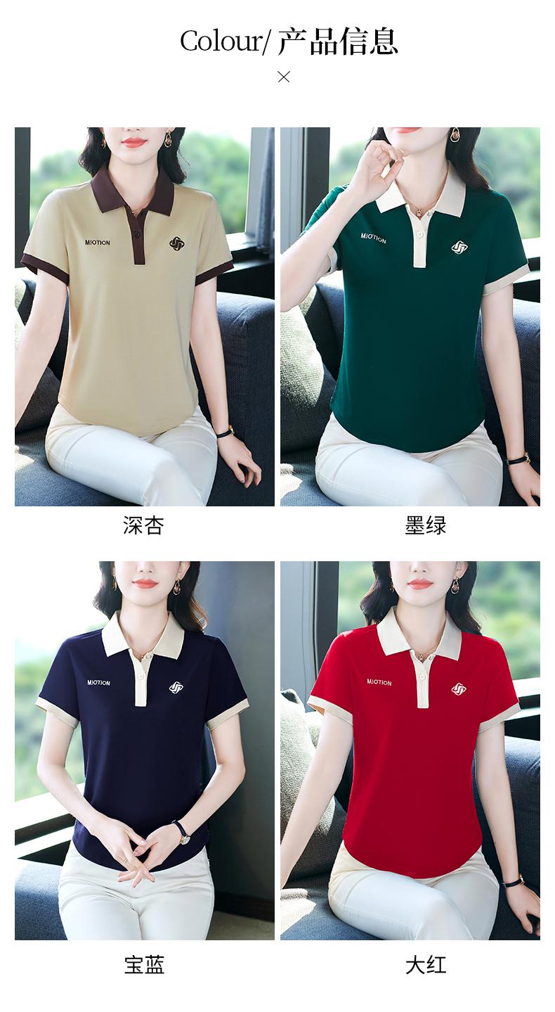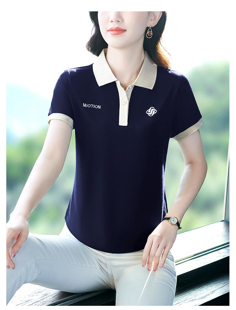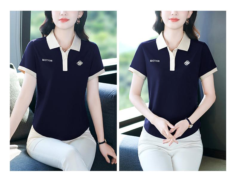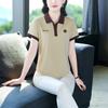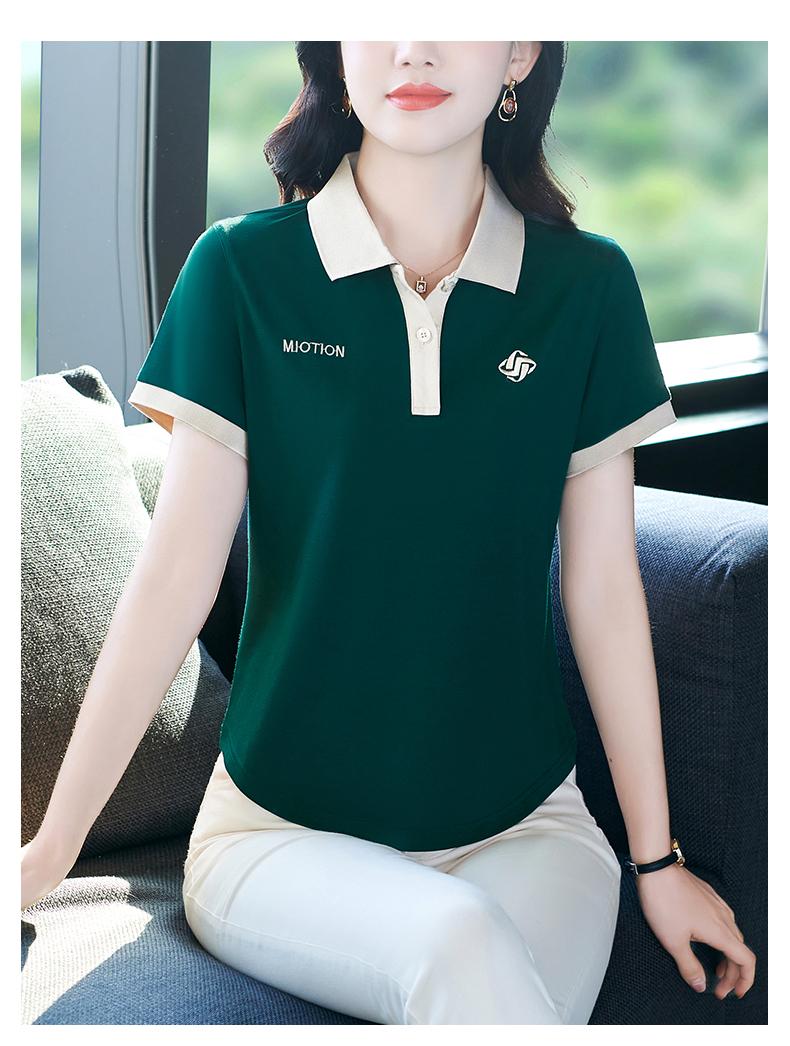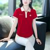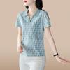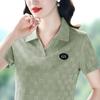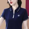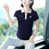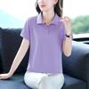 Polo de solapa de seda de hielo camiseta de manga corta para mujer 2024 nueva popular azul zafiro top casual verano ropa de talla grande