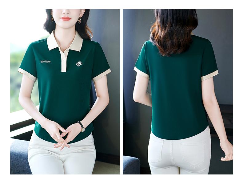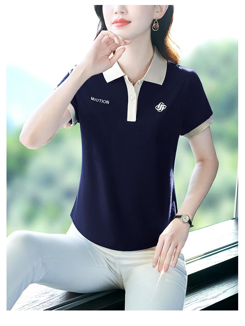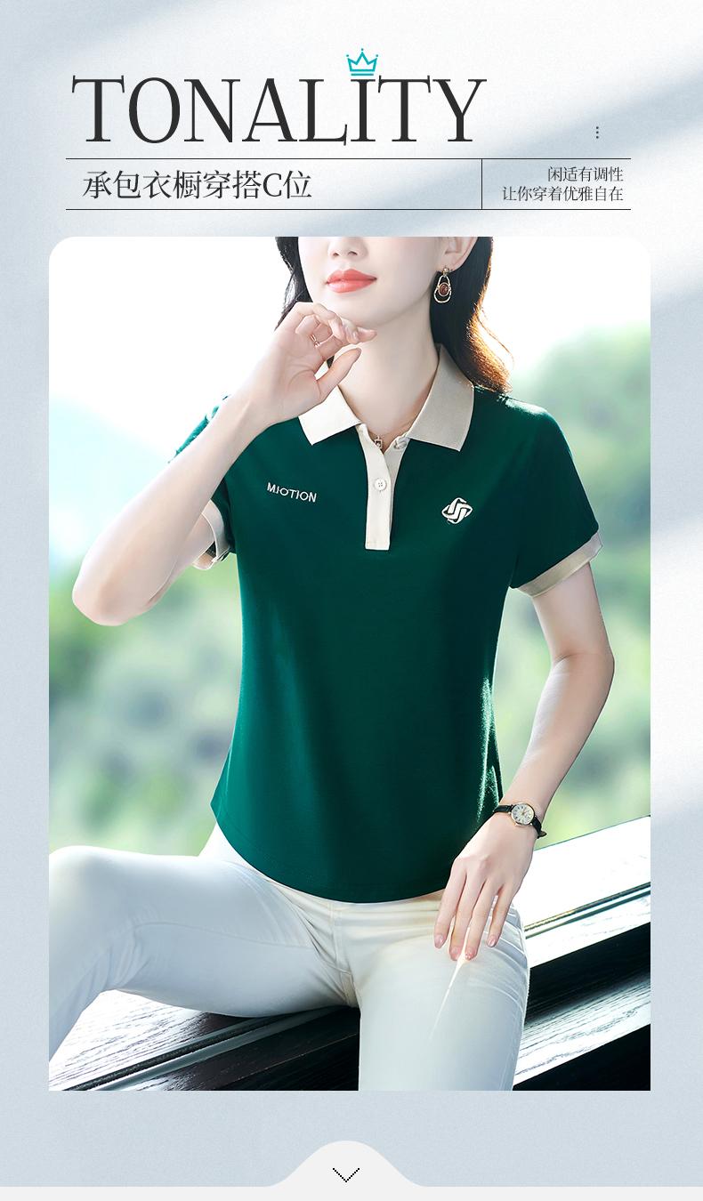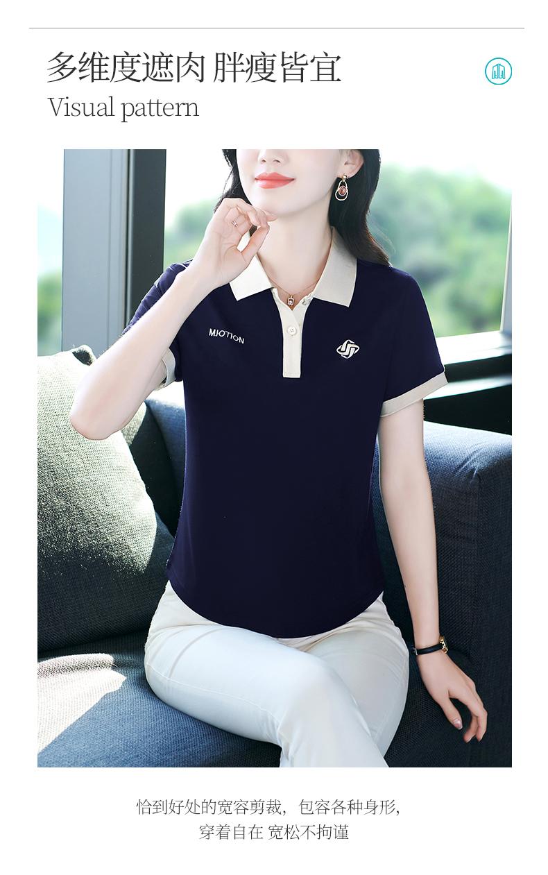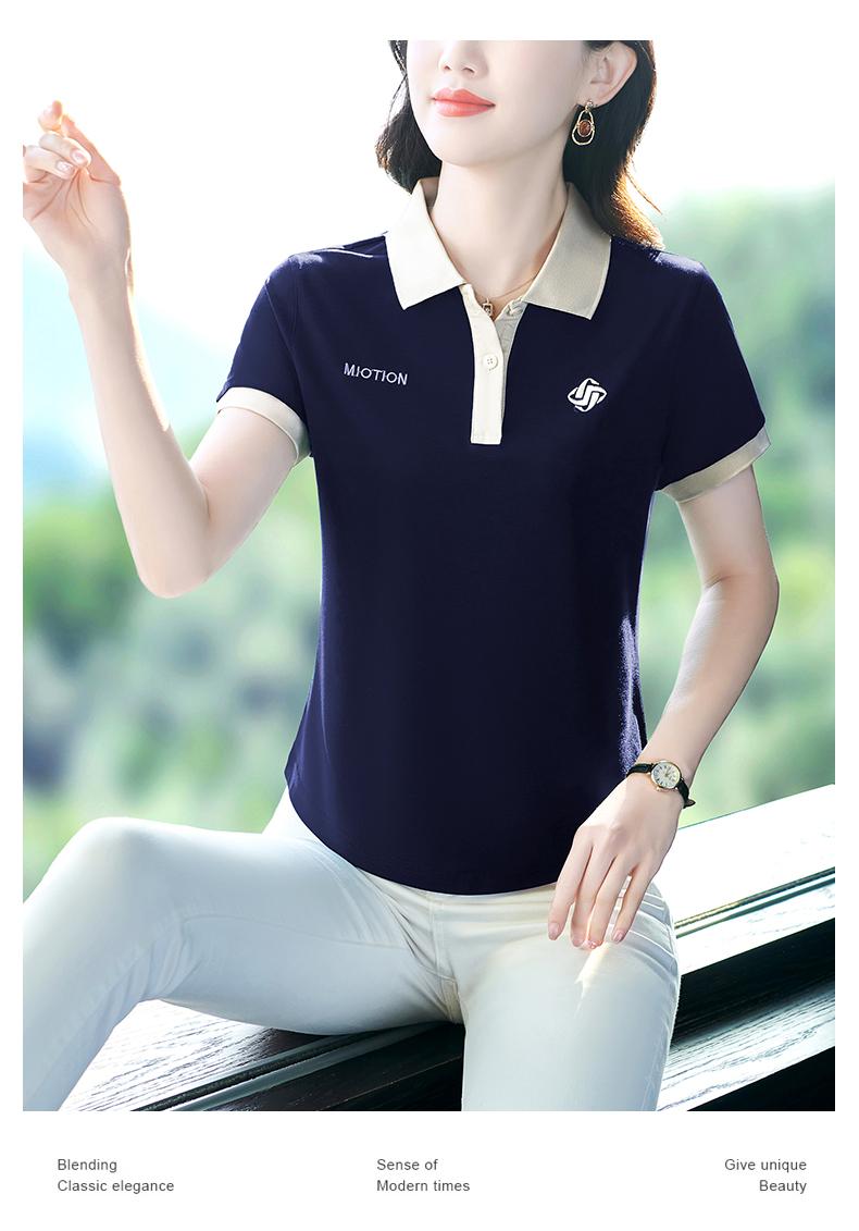 Polo de solapa de seda de hielo camiseta de manga corta para mujer 2024 nueva popular azul zafiro top casual verano ropa de talla grande