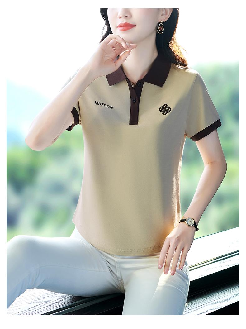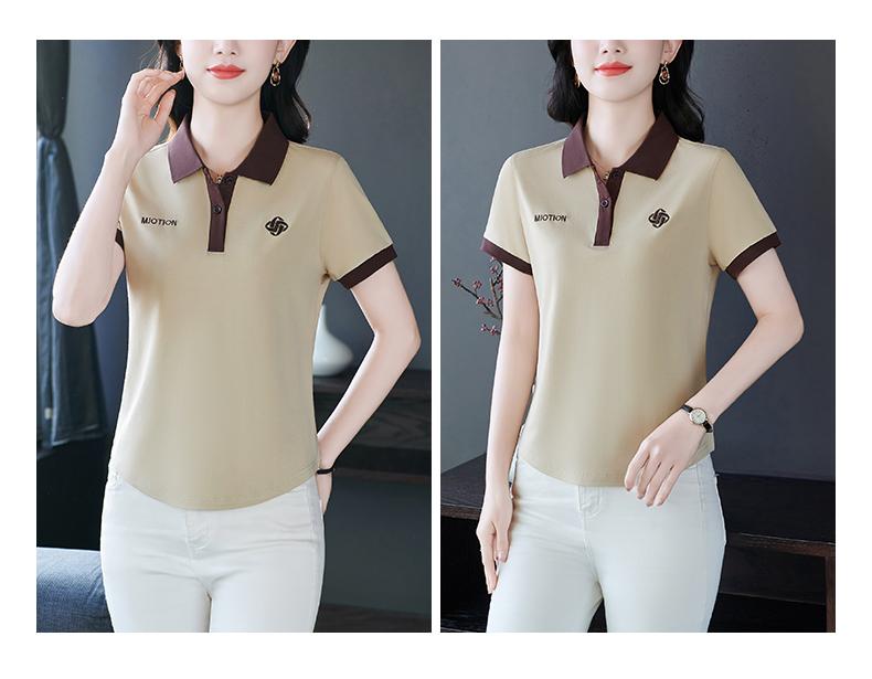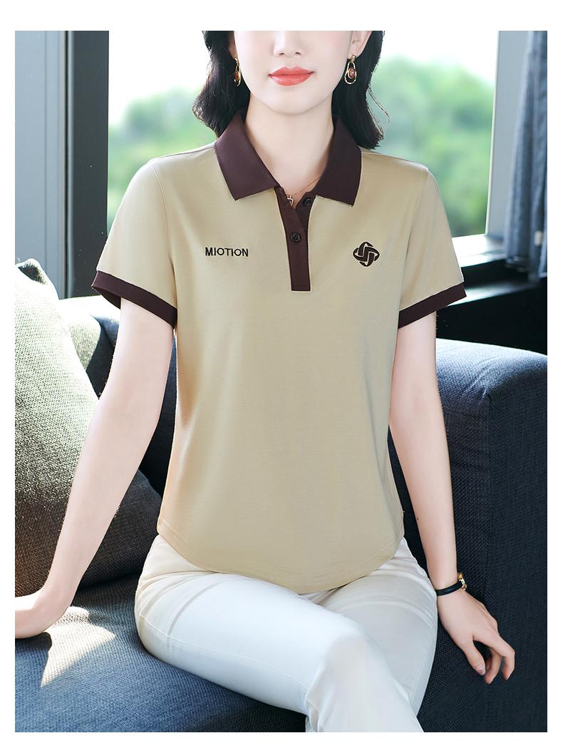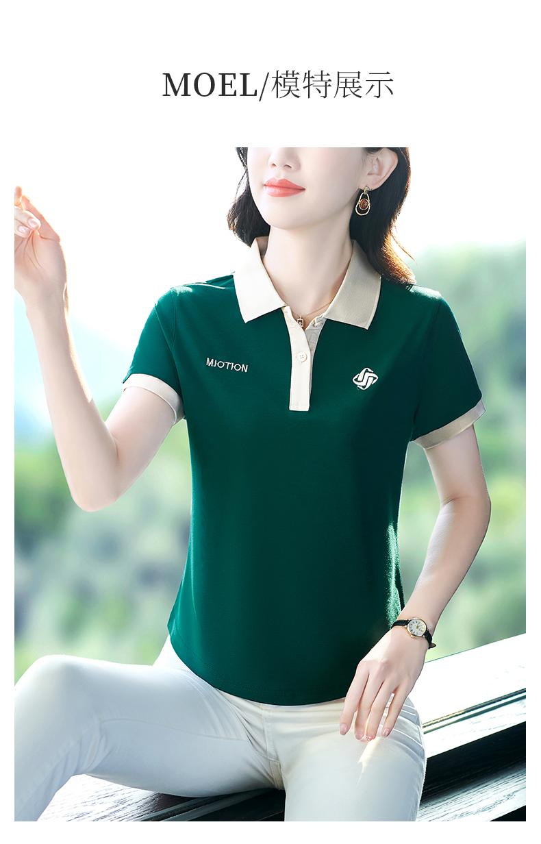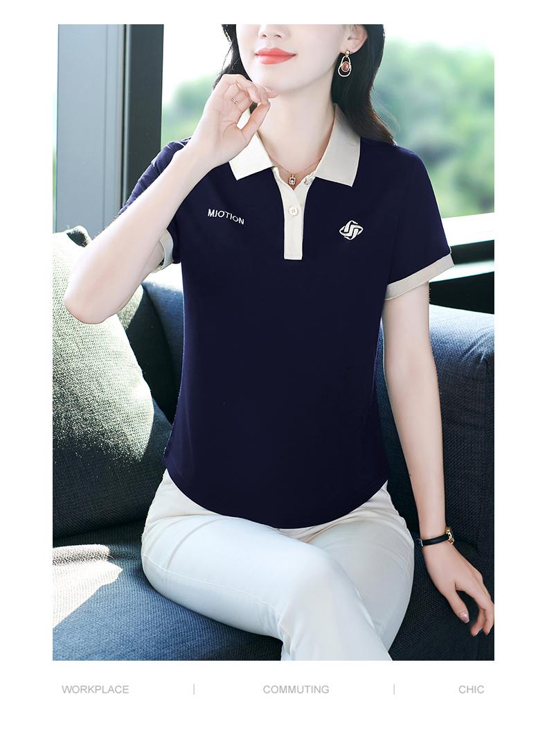 Polo de solapa de seda de hielo camiseta de manga corta para mujer 2024 nueva popular azul zafiro top casual verano ropa de talla grande