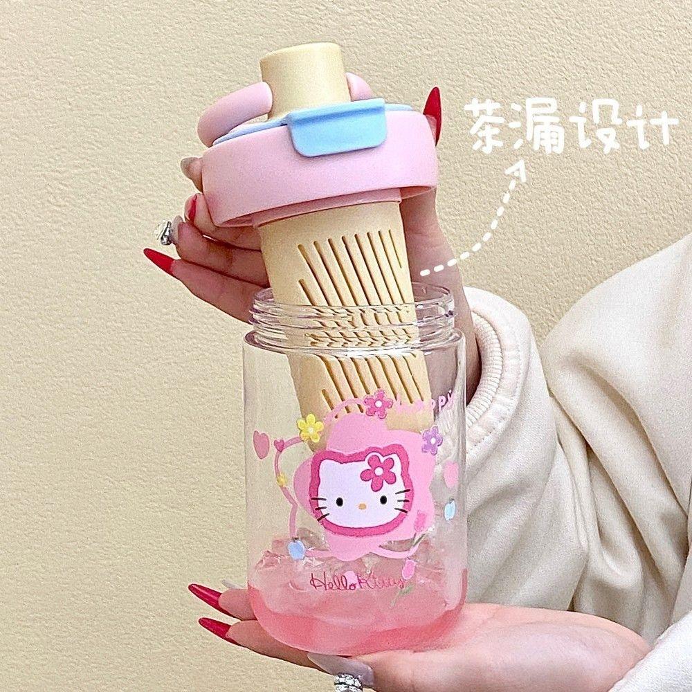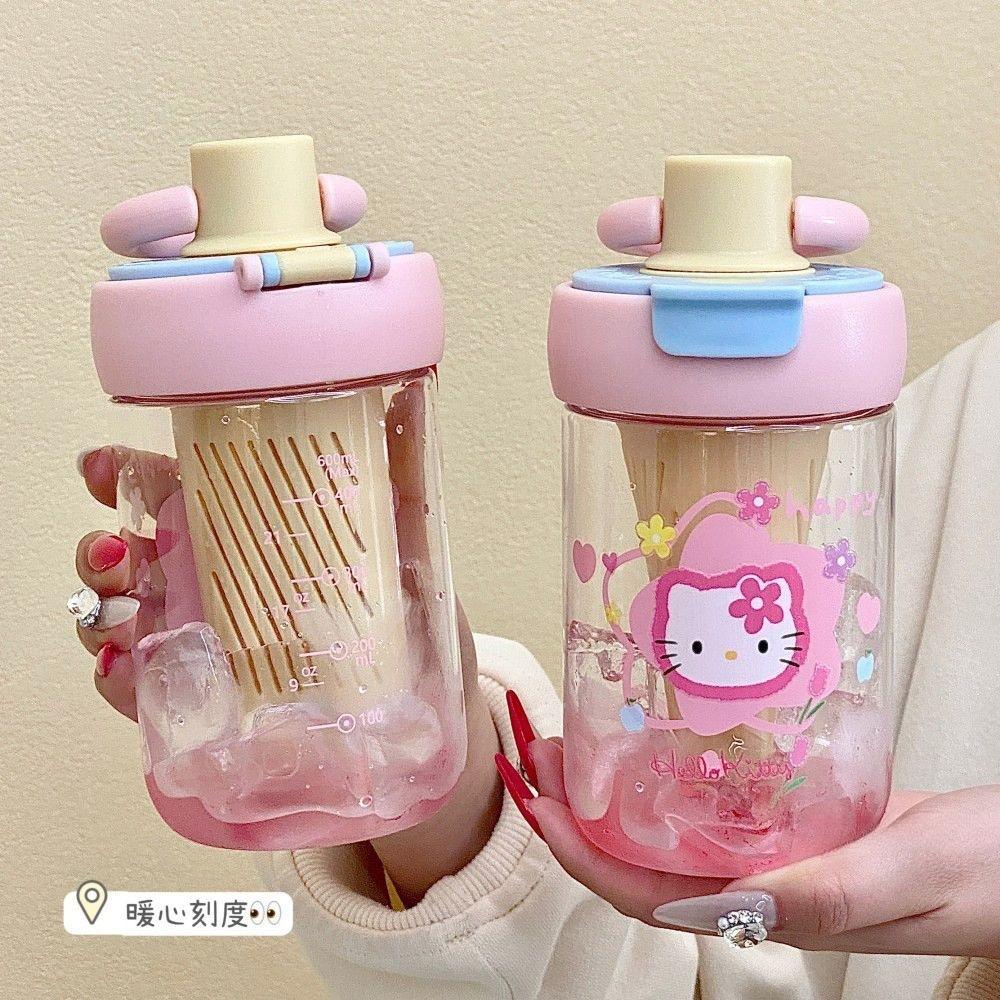 Nueva taza de agua de verano de gran capacidad para beber doble para niñas, de alto valor de color, taza de separación de té, taza de succión portátil resistente a altas temperaturas