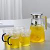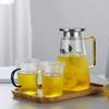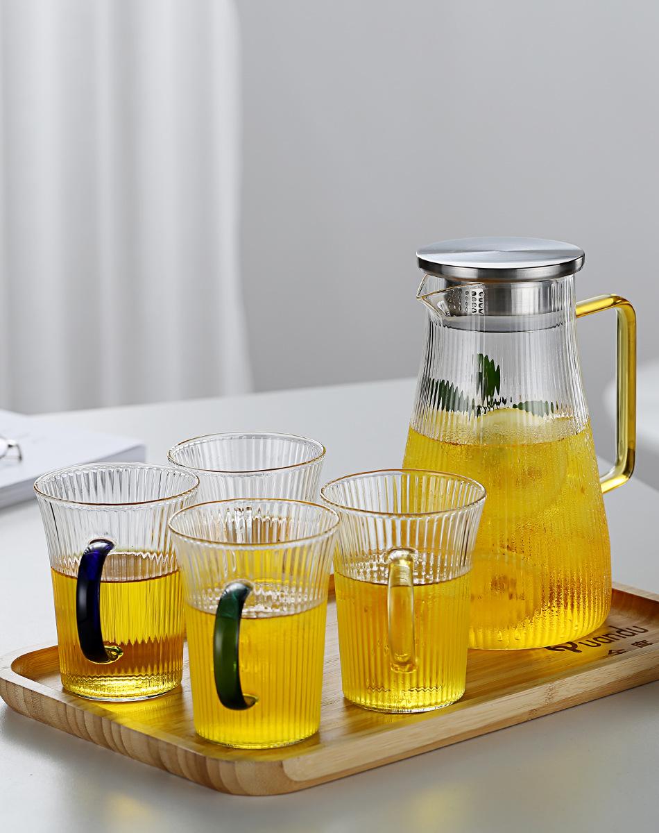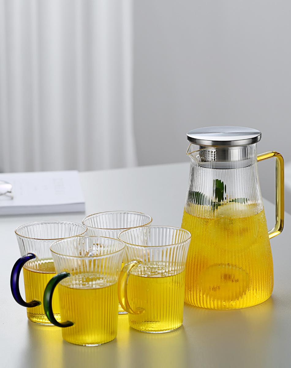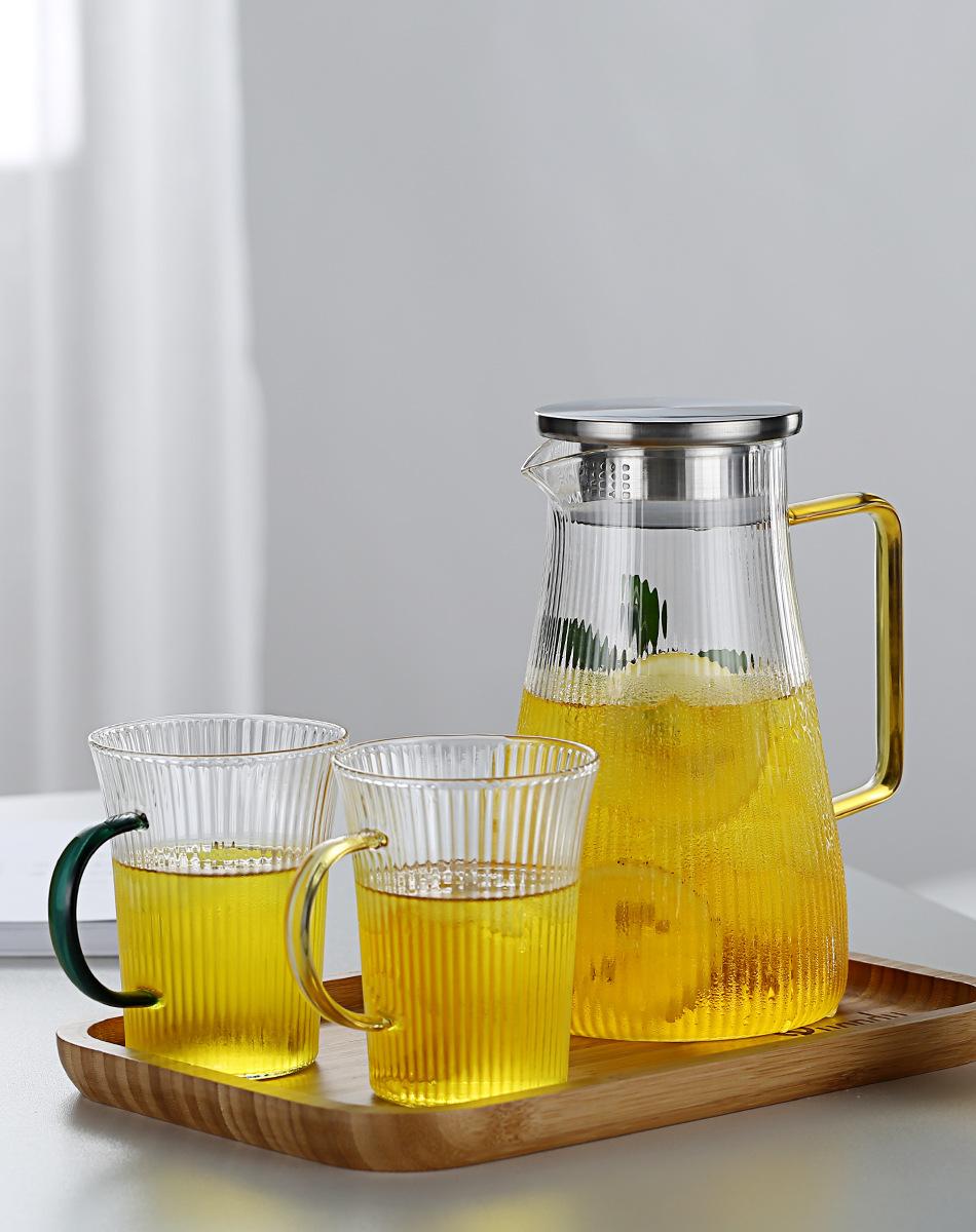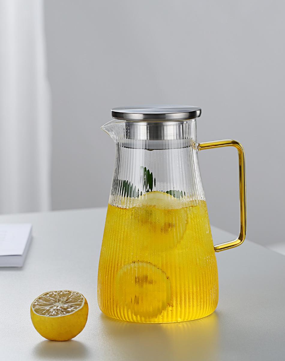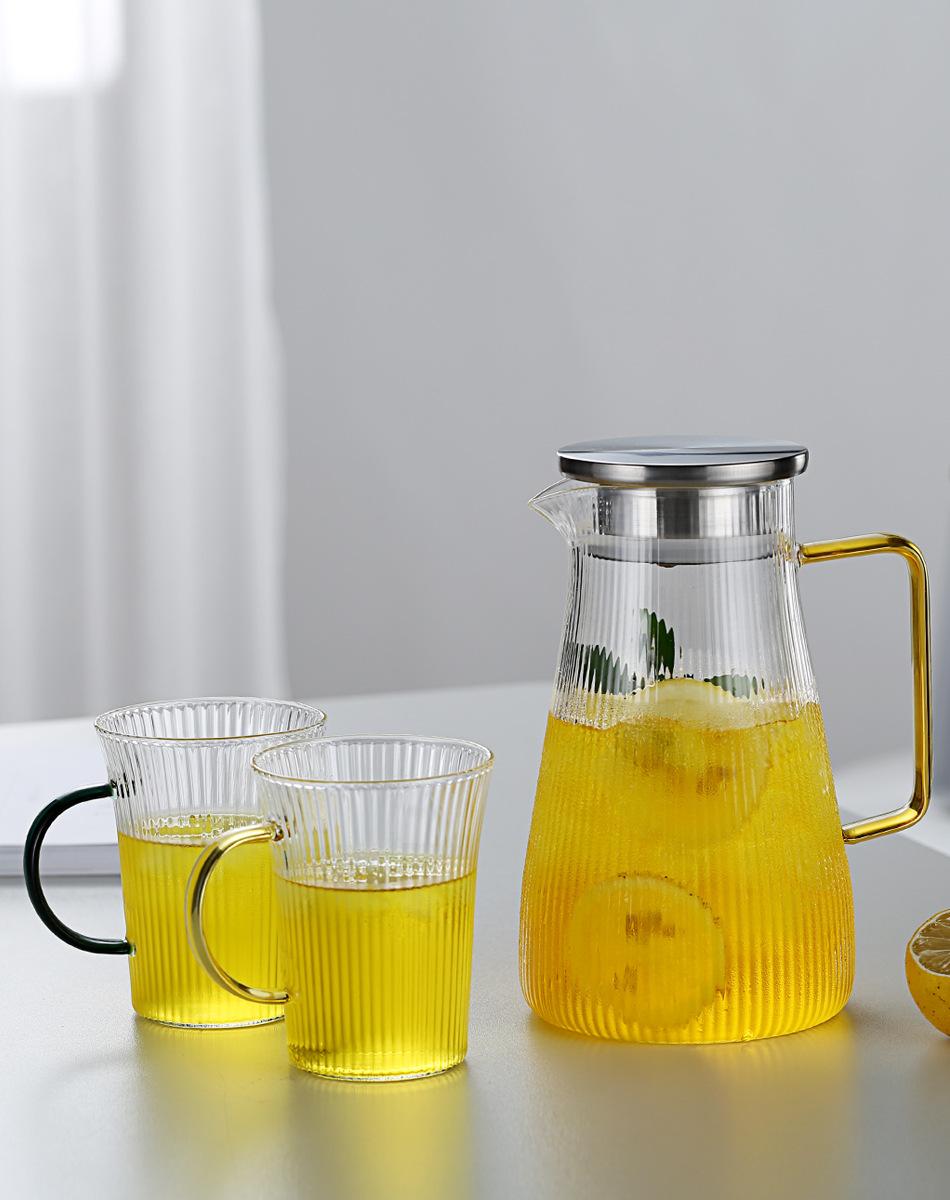 Jarra de Agua Fría de Vidrio de Borosilicato Alto Rayas Verticales Asa Amarilla Gran Capacidad Jarra de Agua Fría Hogar Oficina Hervidor de Agua