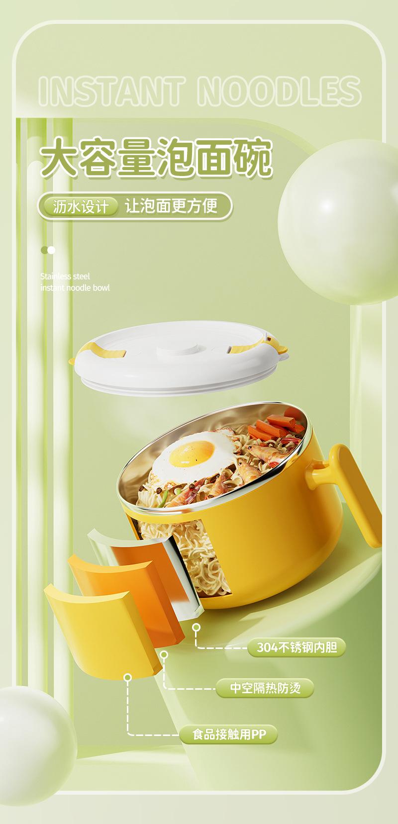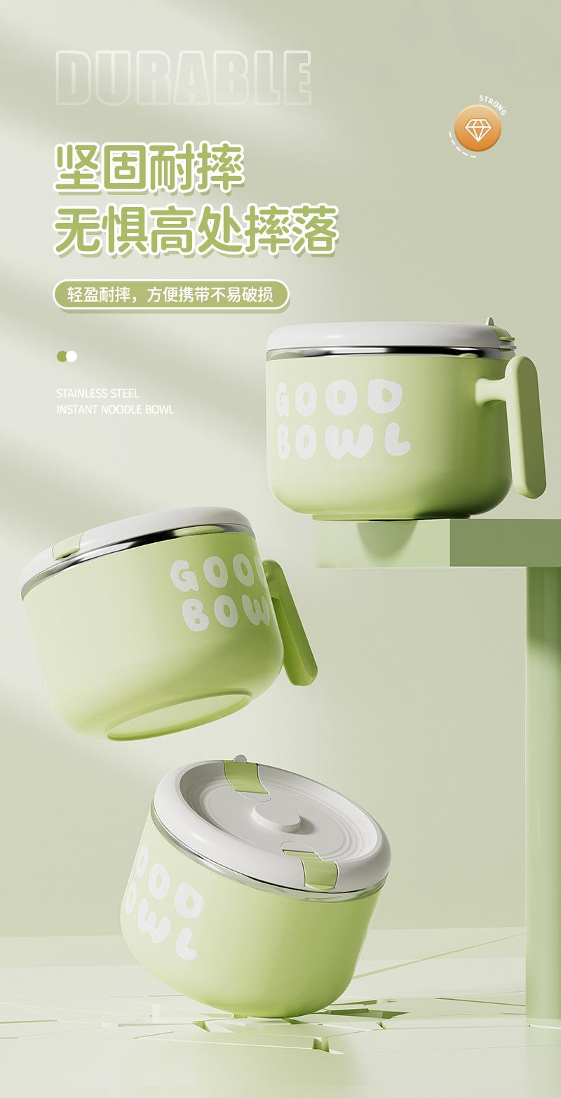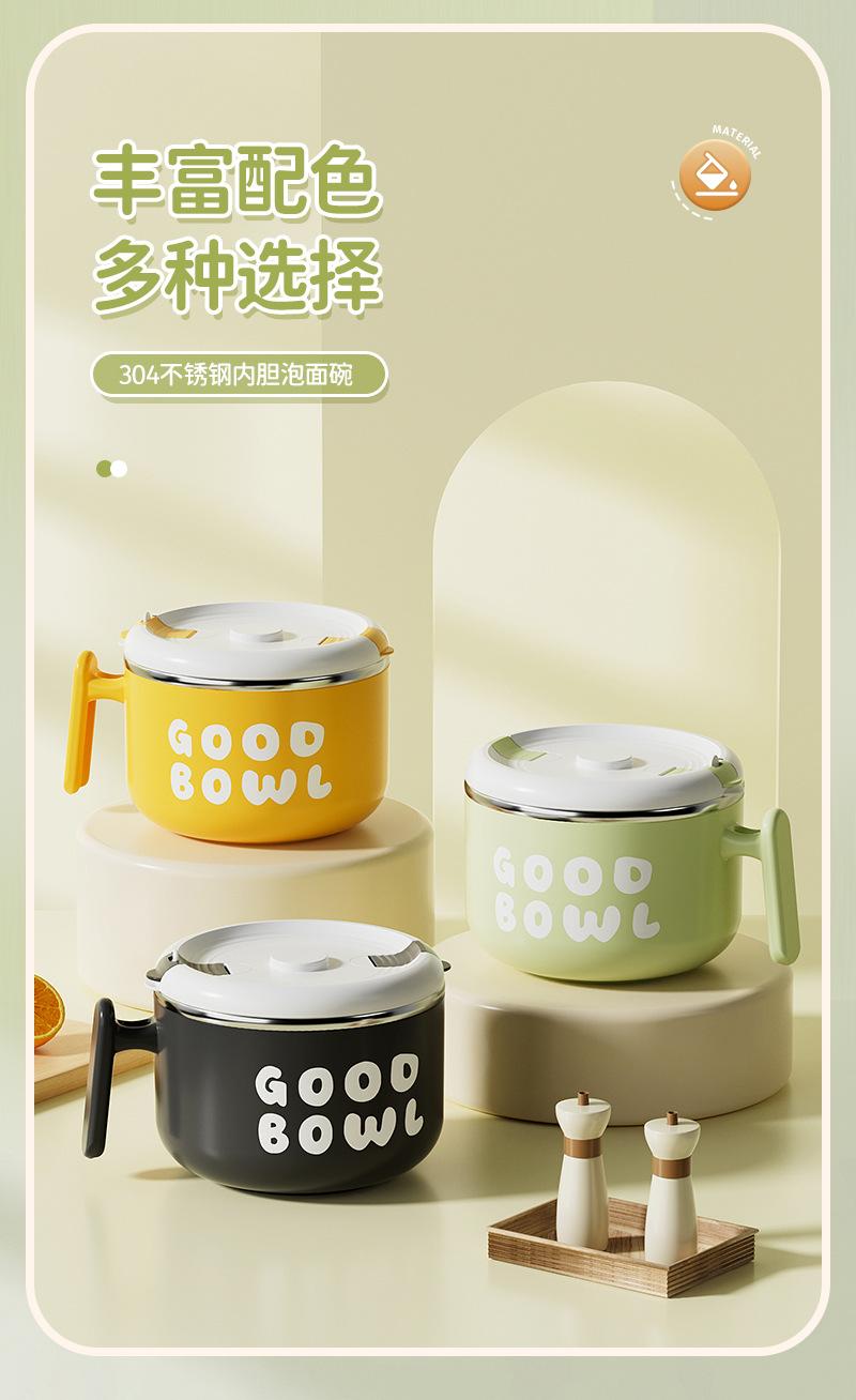 Tazón de Fideos Instantáneos con Tapa para Estudiantes de Residencia, Estilo Japonés Acero Inoxidable 304 Aislado Gran Capacidad, Tazón de Arroz de Acero Inoxidable Fresco
