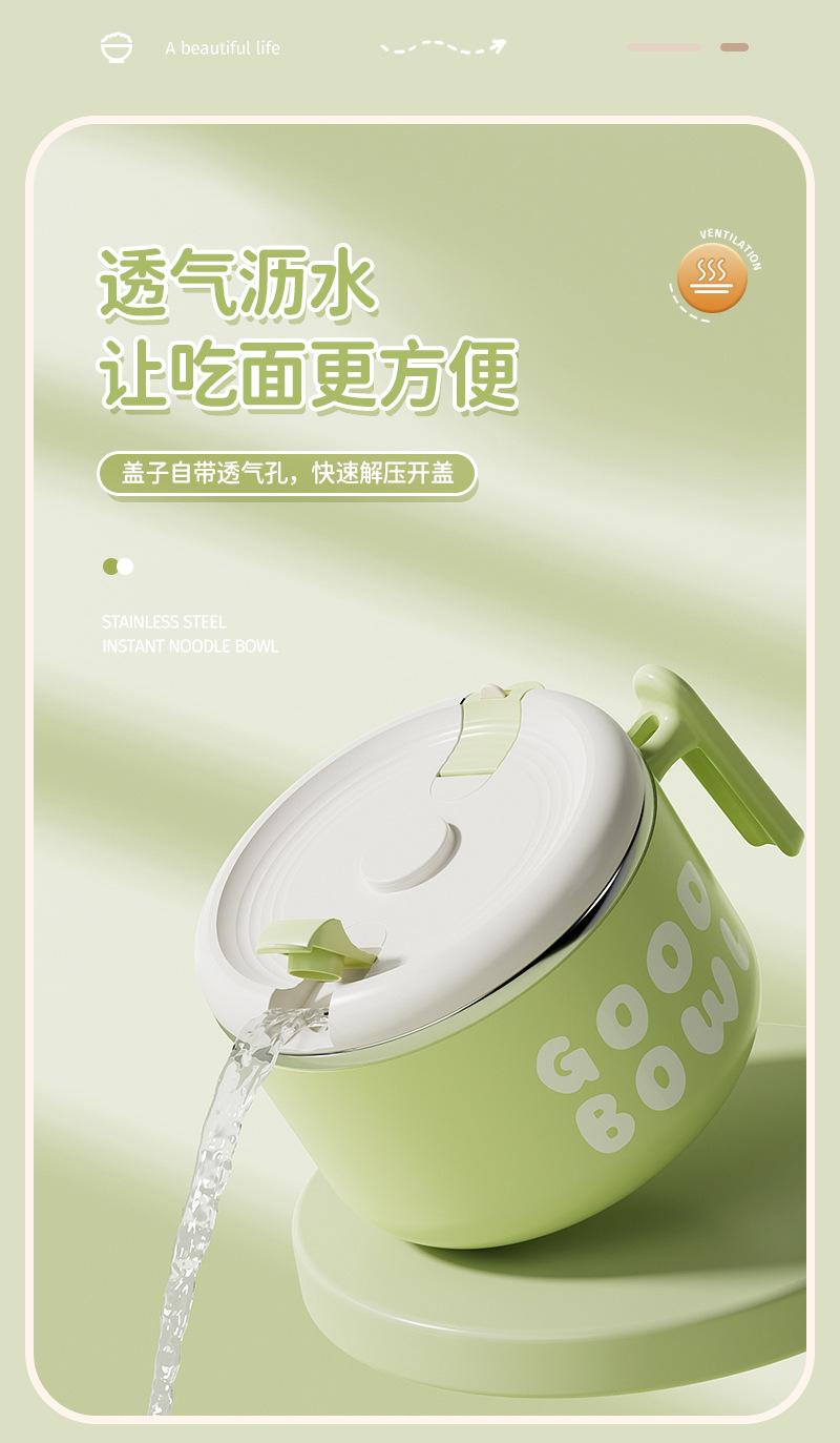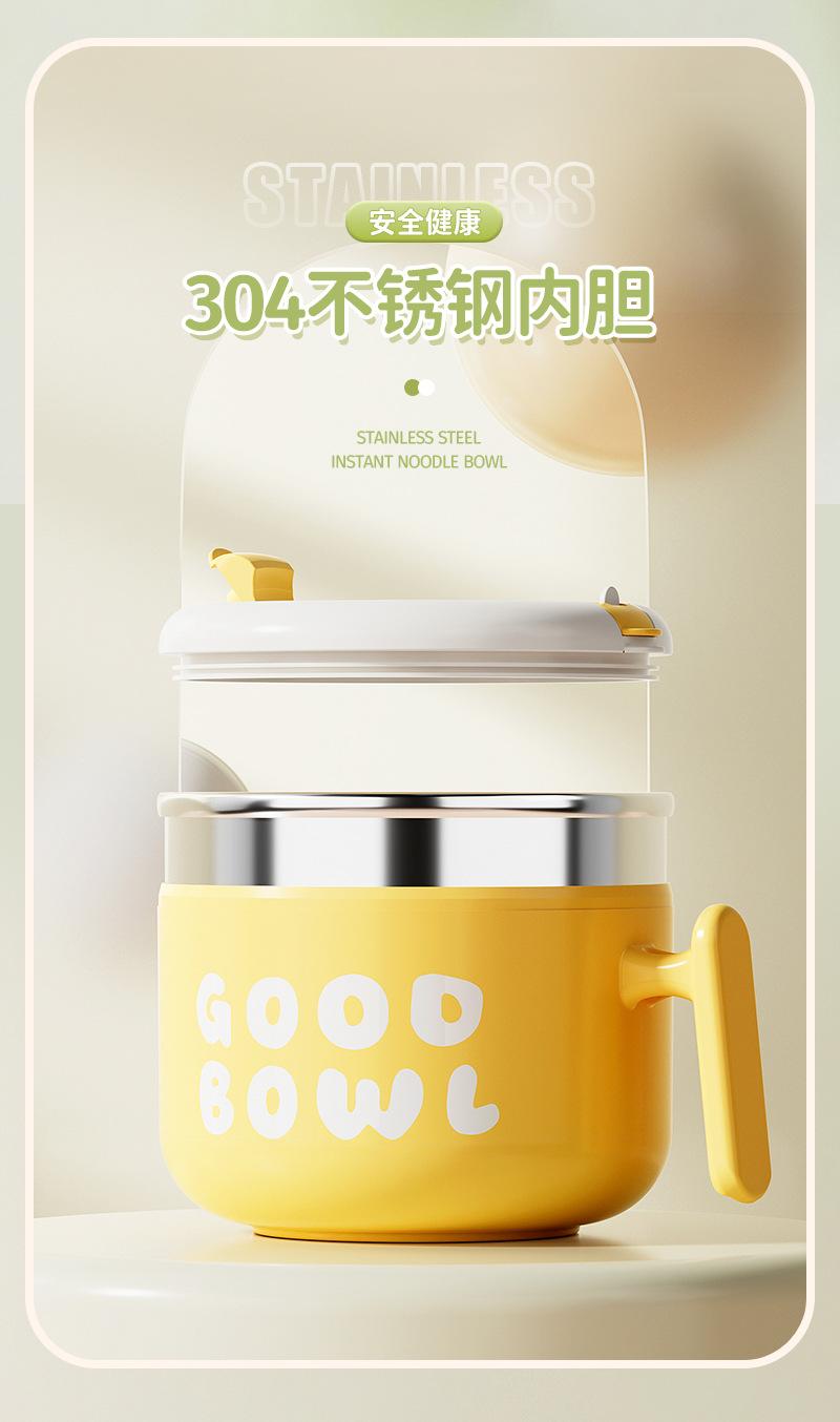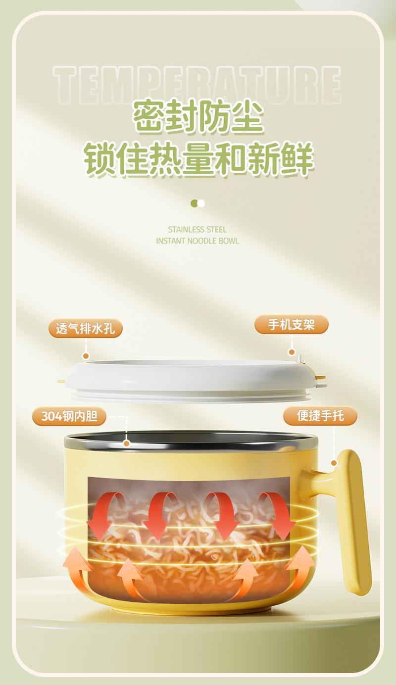 Tazón de Fideos Instantáneos con Tapa para Estudiantes de Residencia, Estilo Japonés Acero Inoxidable 304 Aislado Gran Capacidad, Tazón de Arroz de Acero Inoxidable Fresco