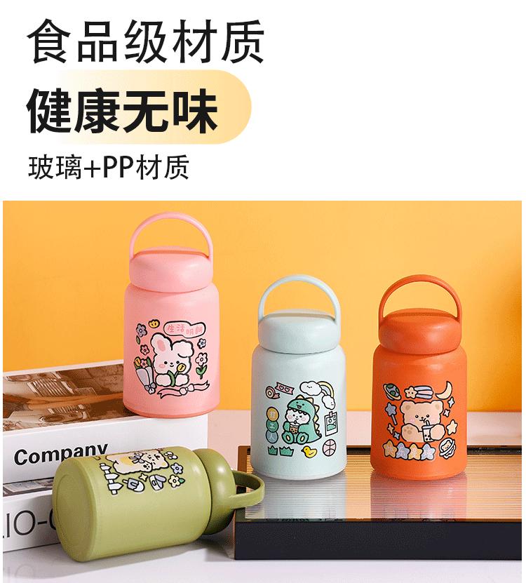 Nuevo Vaso de Agua Portátil con Asa, Lindo Vaso de Agua de Vidrio de Dibujos Animados, Vaso de Agua para Regalo de Apertura de Negocio al por Mayor