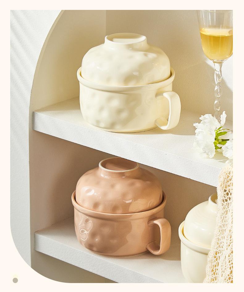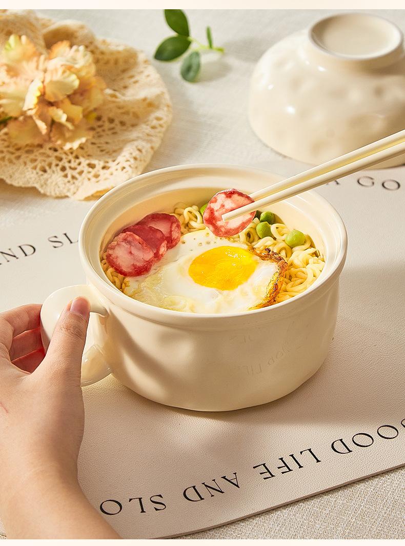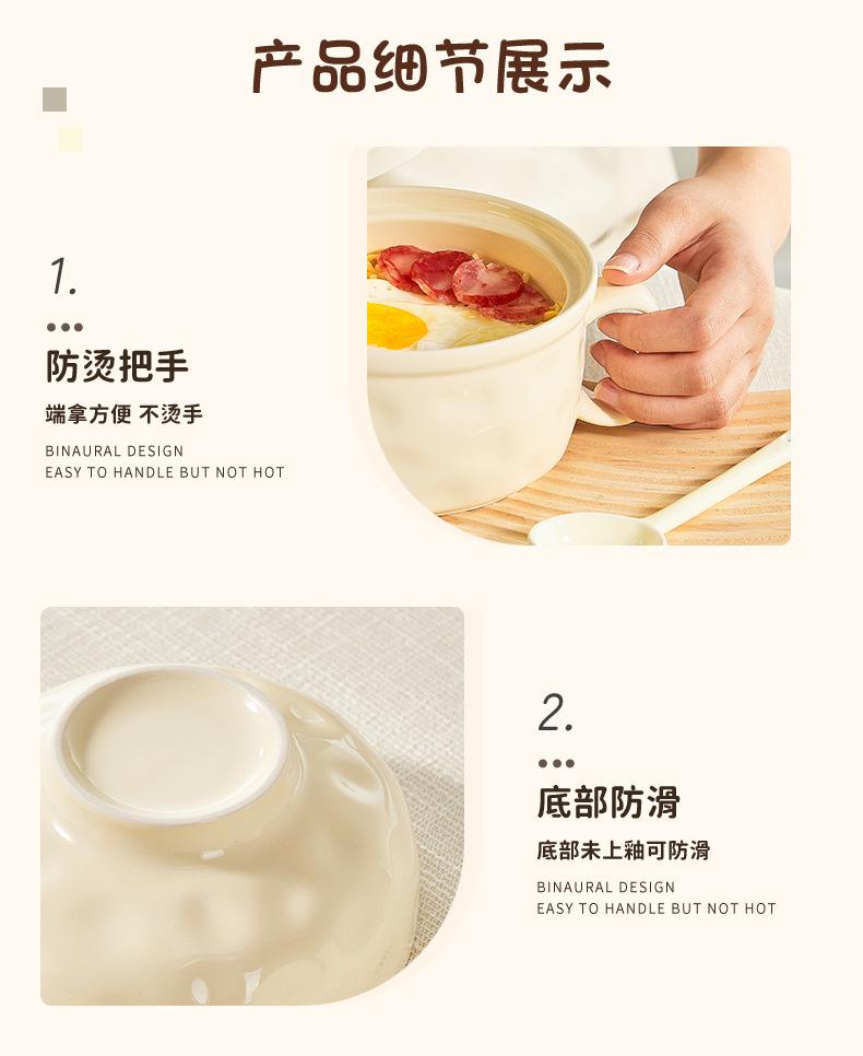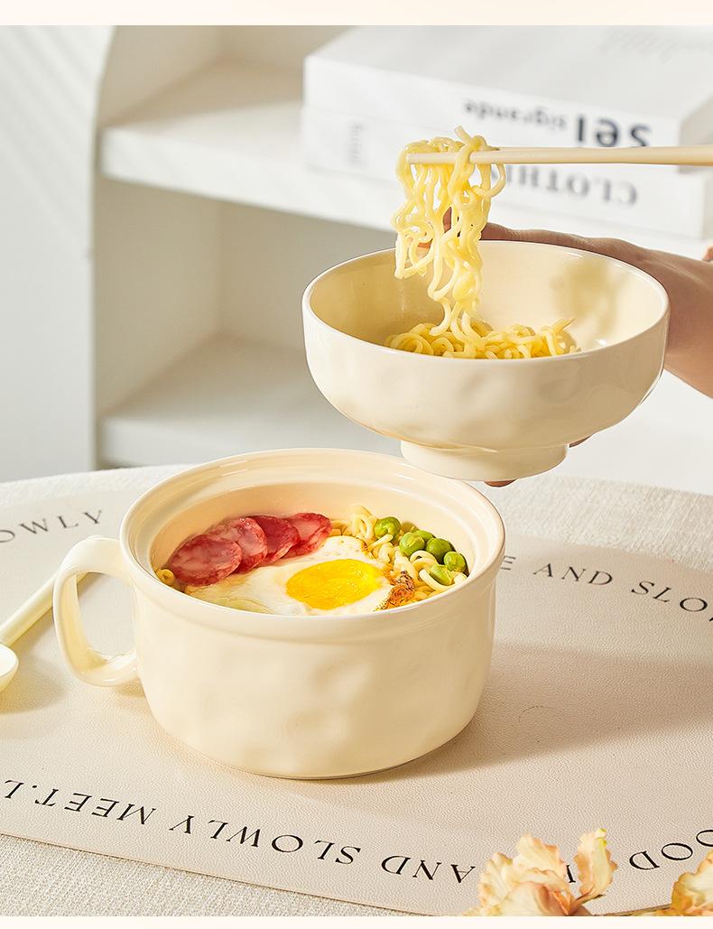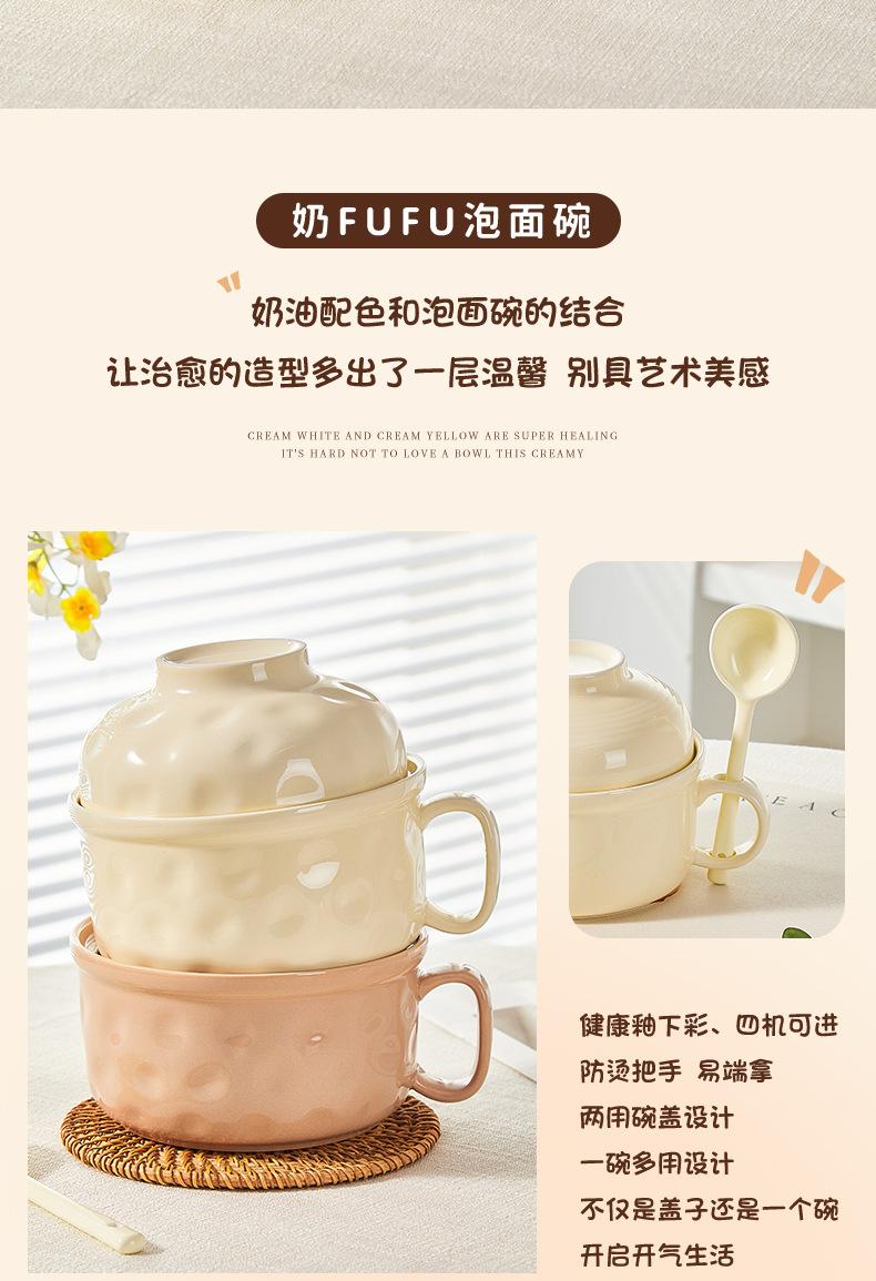 [milk yellow] 6inch hand pinched instant noodle bowl 1, [custard bowl + spoon] 6inch 1 hand-kneaded instant no...