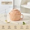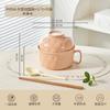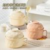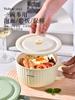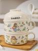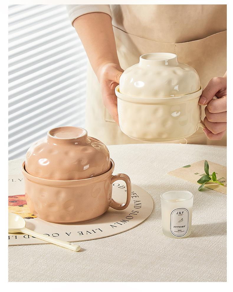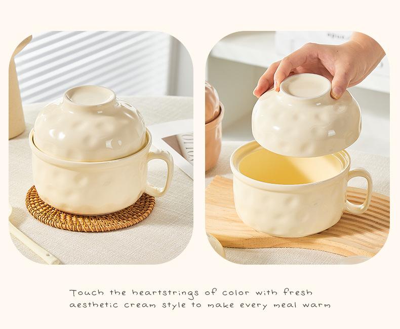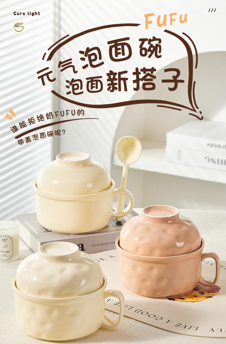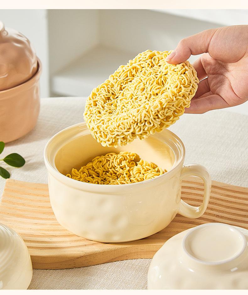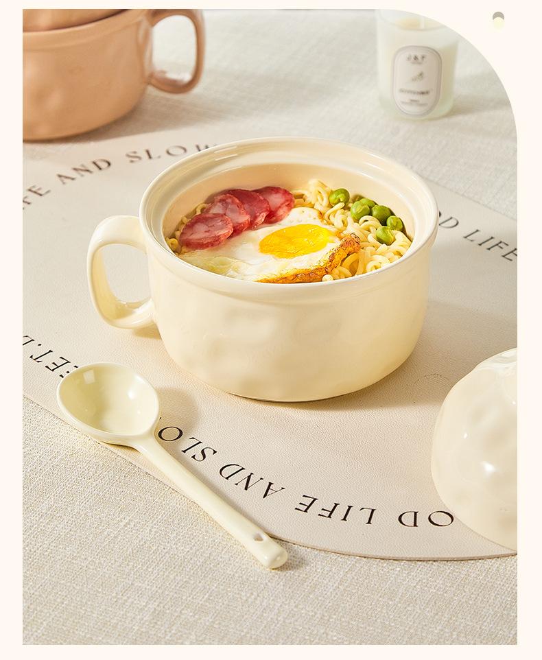 Tazón de Cerámica Bajo Esmalte Tazón para Fideos Instantáneos con Tapa, Cuchara y Asa, Anti-Escaldamiento, Tazón para Fideos Instantáneos de Dormitorio Estudiantil de Aspecto Elegante