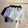 Cárdigan de punto de seda helada fina con cuello en V para mujer 2025 Chaqueta de manga larga Top Holgado Lazy Color Sólido Protector Solar Camisa para aire acondicionado