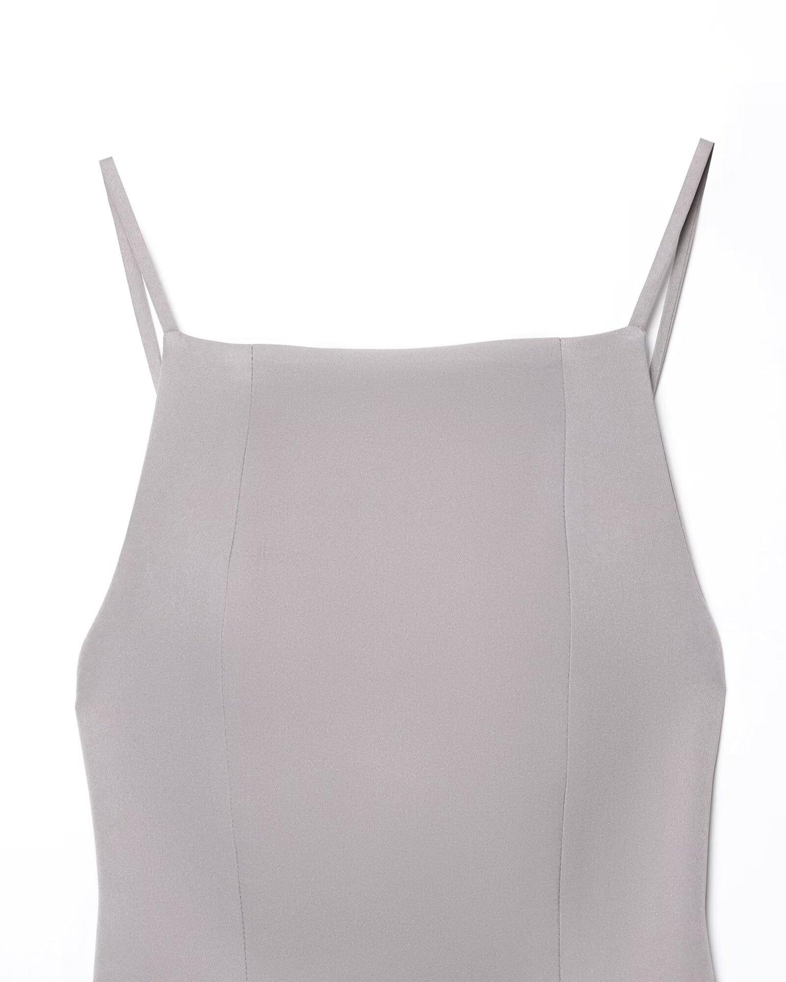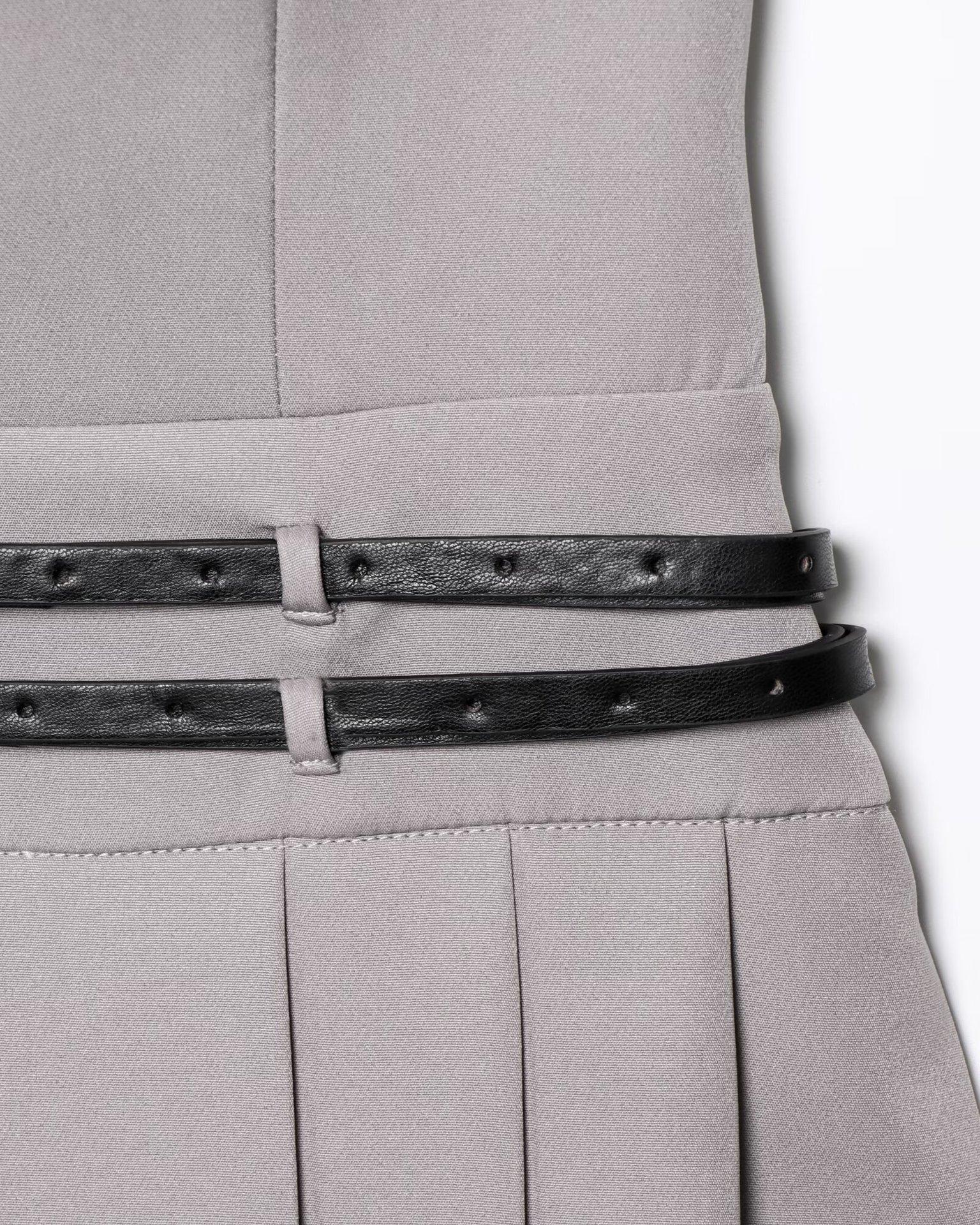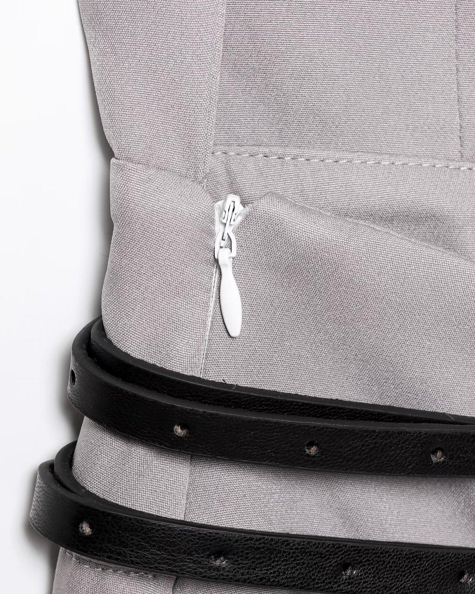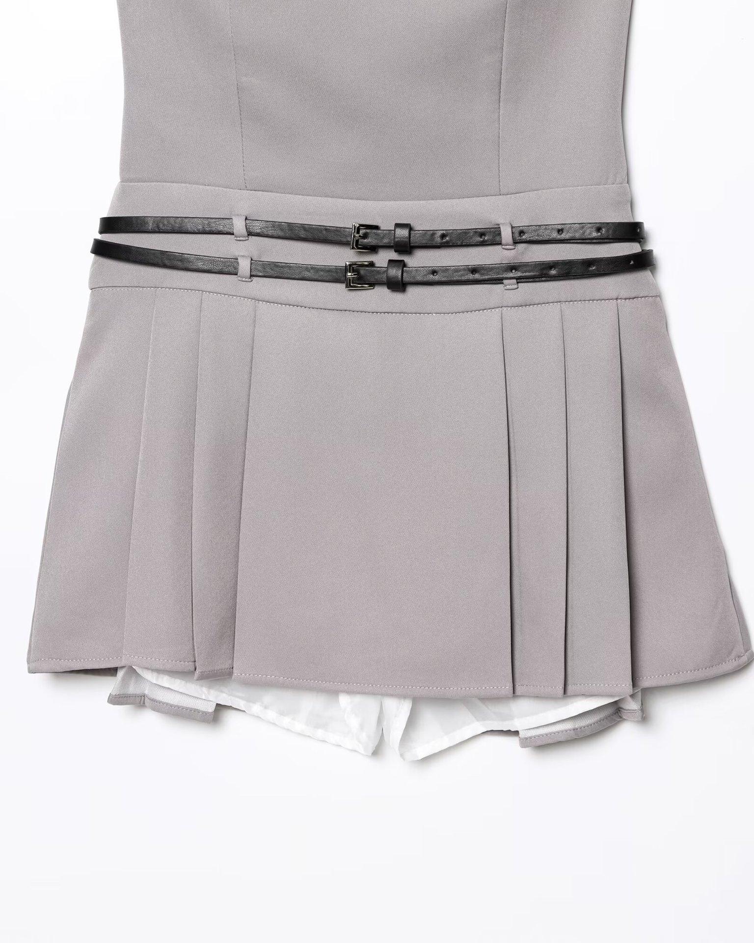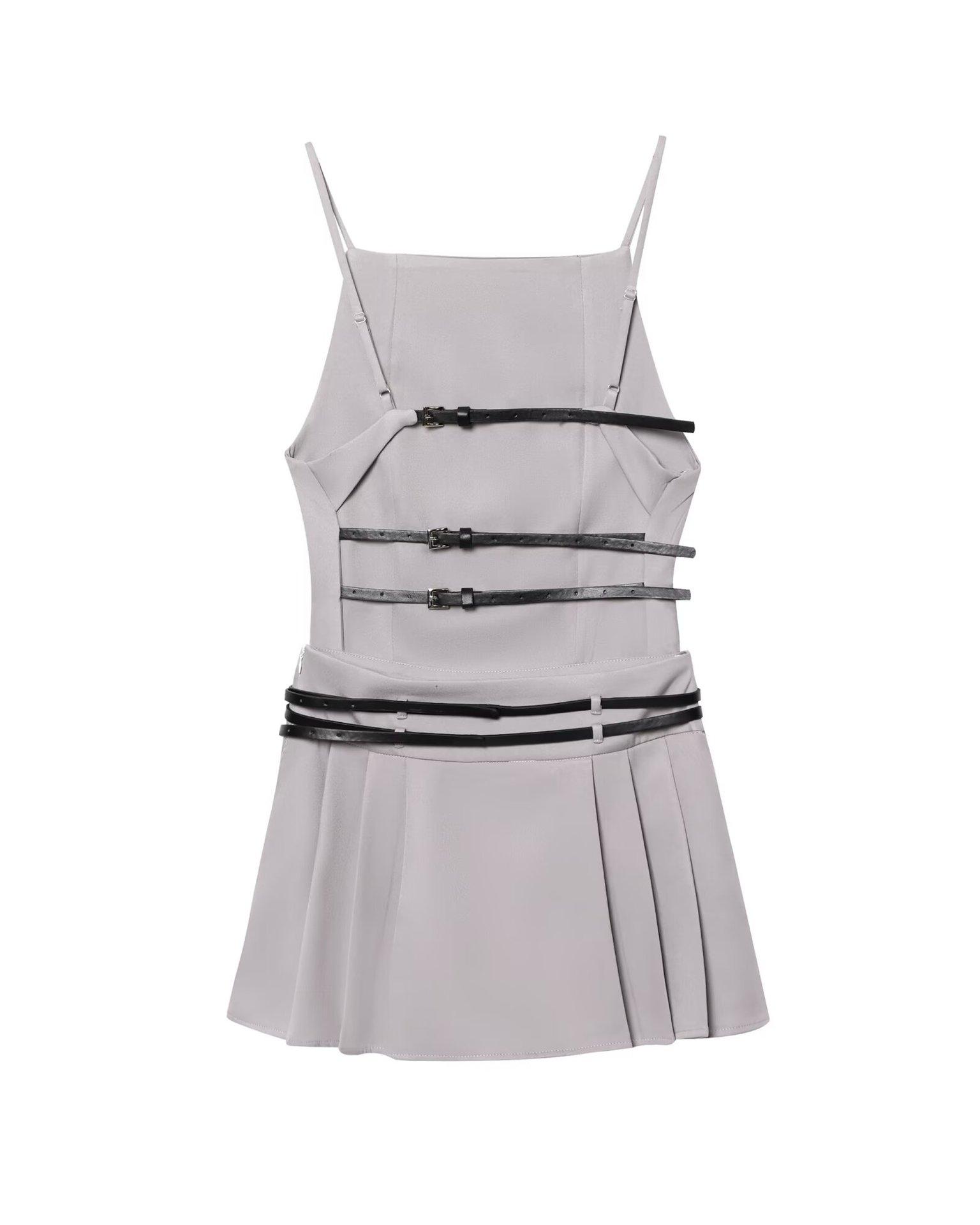 Primavera 2025 nueva moda europea y americana transfronteriza para mujer vestido de tirantes plisado sin espalda con cordones gris w063 3149