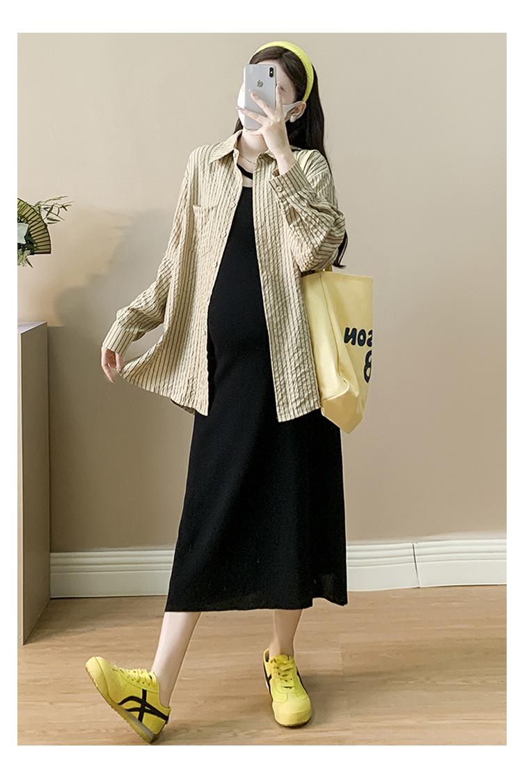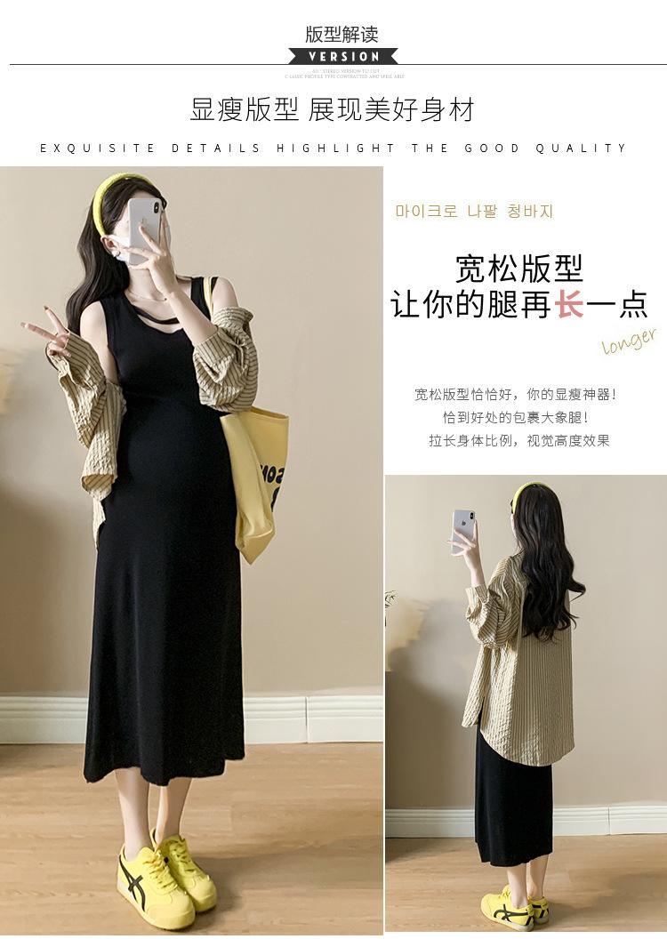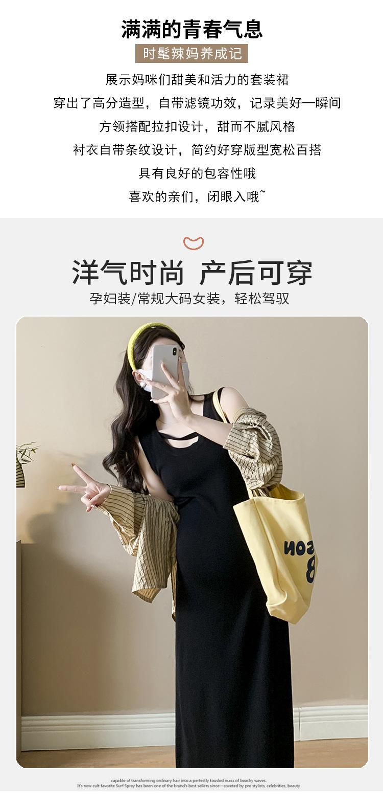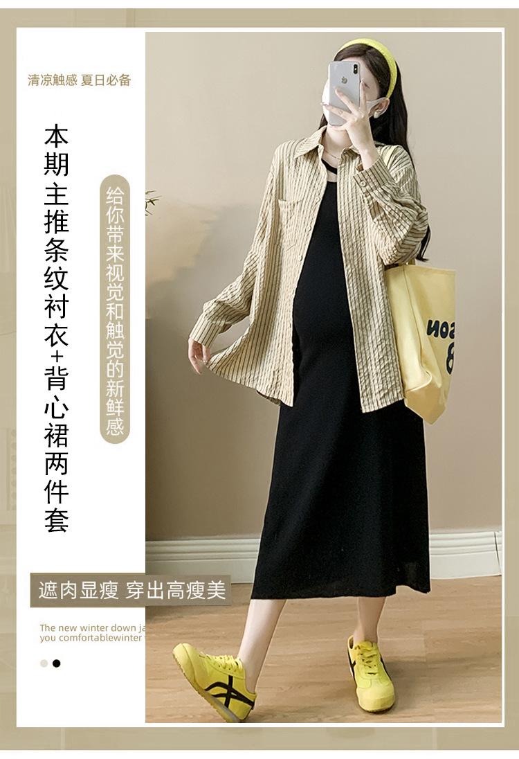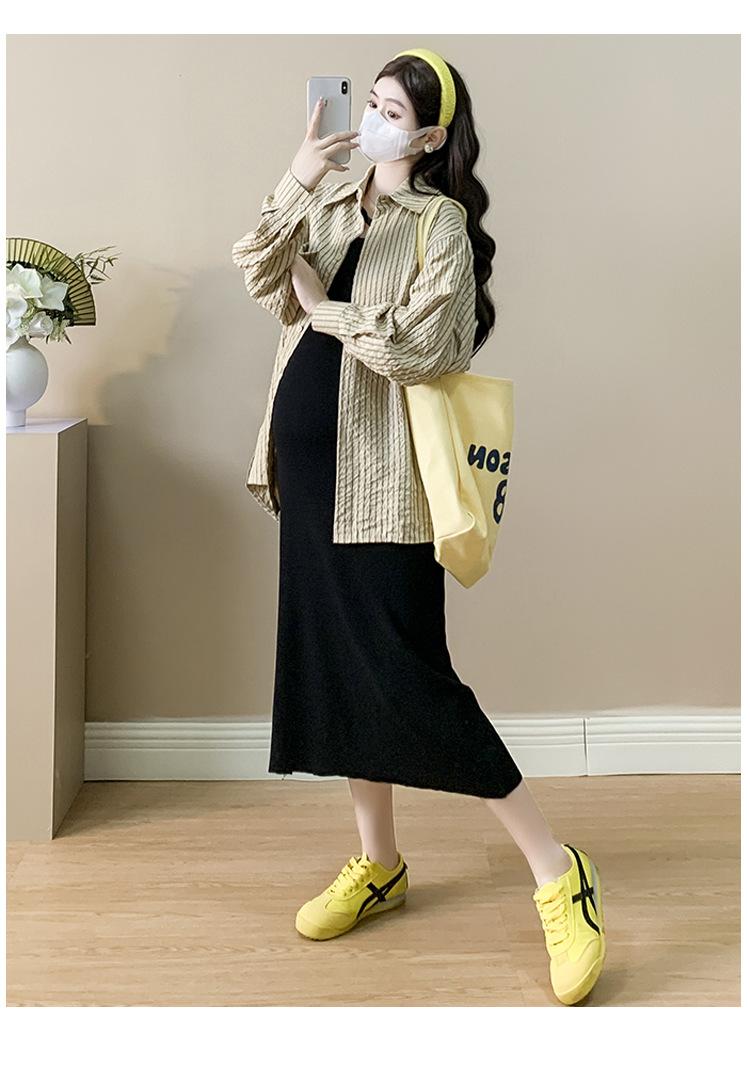 Ropa de Maternidad Primavera 2025 Nuevo Estilo Coreano Vestido Chaleco Suelto + Camisa a Rayas Vestido de Maternidad de Dos Piezas