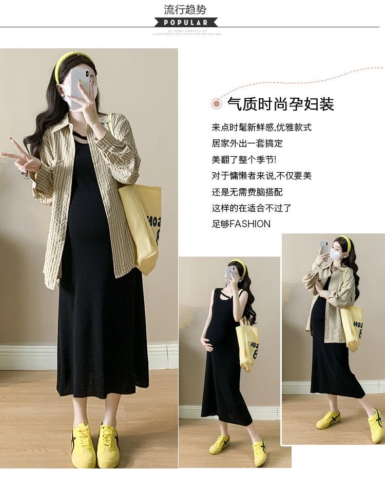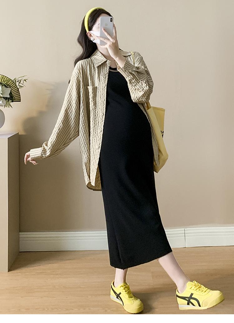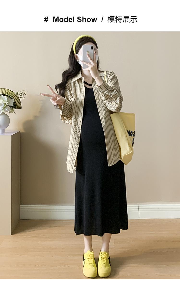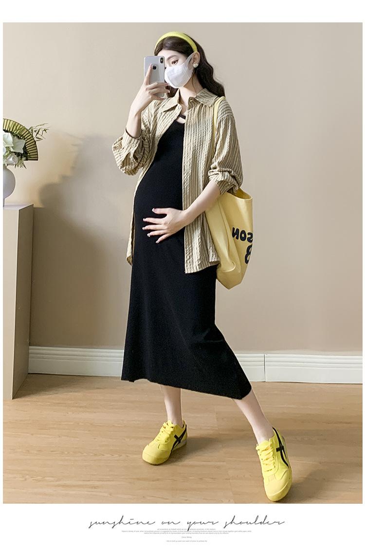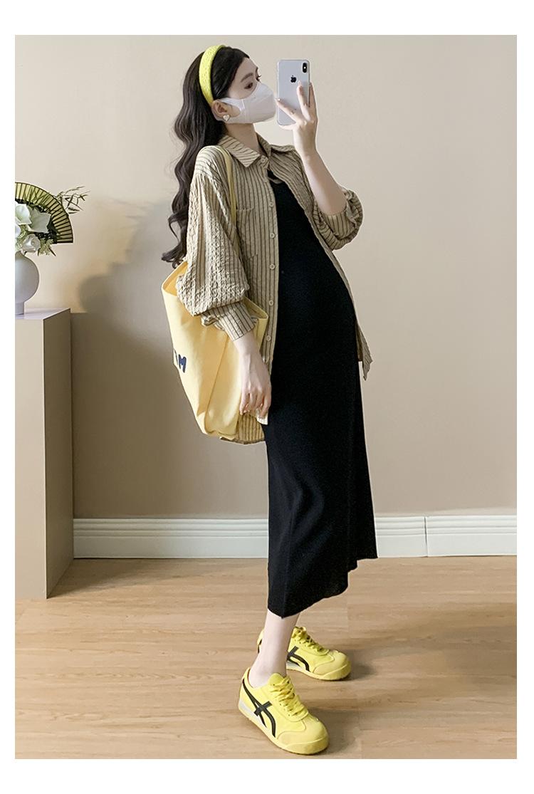 Ropa de Maternidad Primavera 2025 Nuevo Estilo Coreano Vestido Chaleco Suelto + Camisa a Rayas Vestido de Maternidad de Dos Piezas