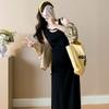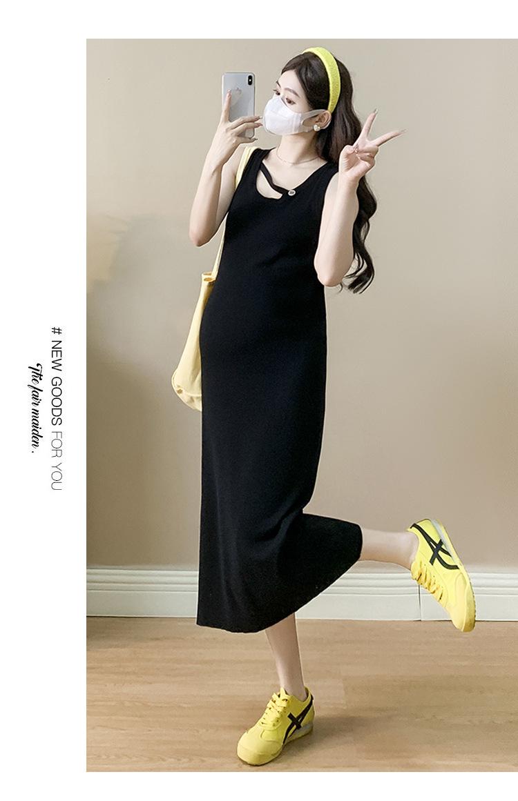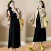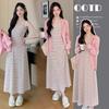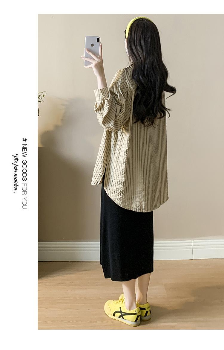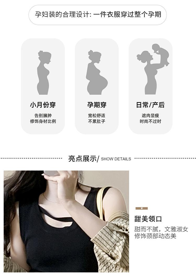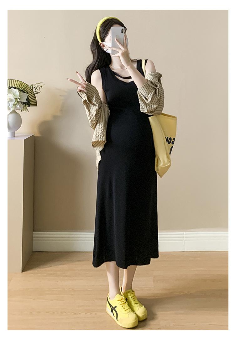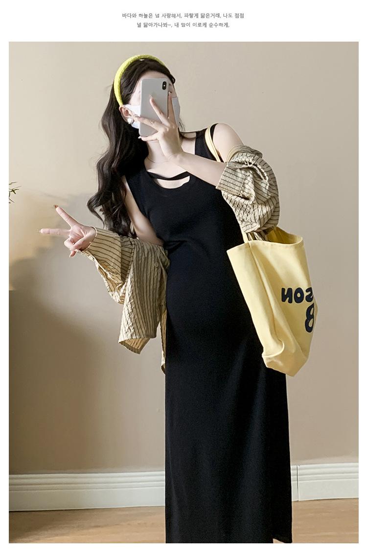 Ropa de Maternidad Primavera 2025 Nuevo Estilo Coreano Vestido Chaleco Suelto + Camisa a Rayas Vestido de Maternidad de Dos Piezas
