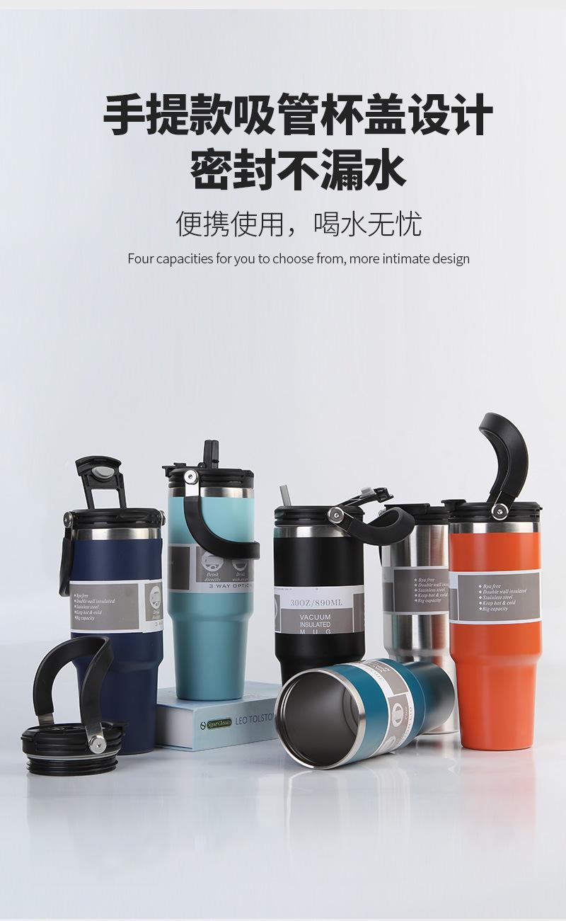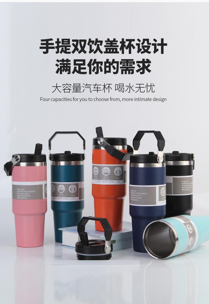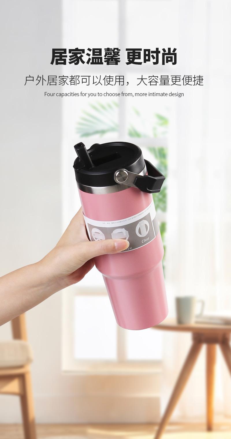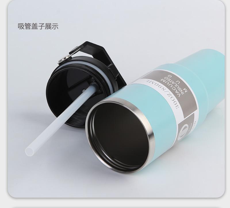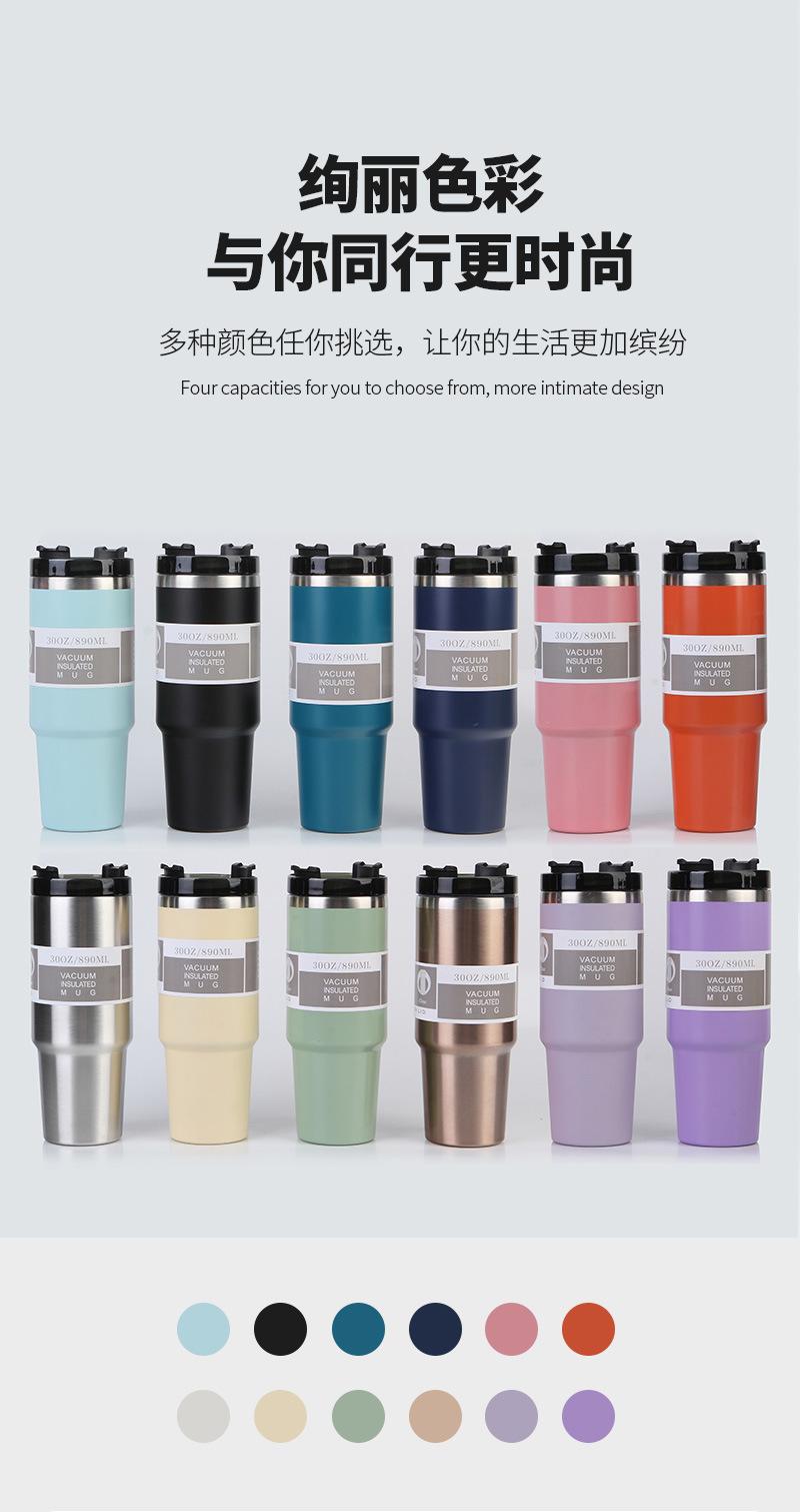 Vaso Cartera Transfronterizo de 20 oz/30 oz para Coche con Pajita para Mantener Frío Vaso de Hielo Vaso de Acero Inoxidable Aislado al Vacío para Coche