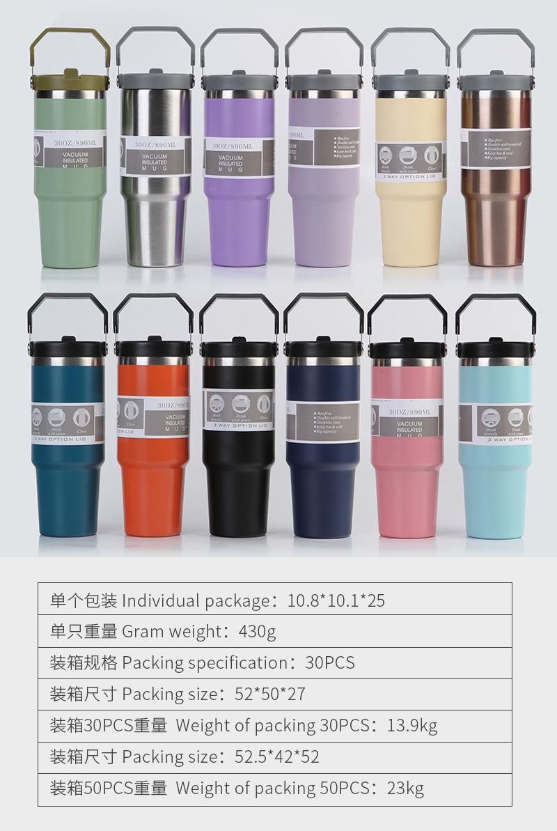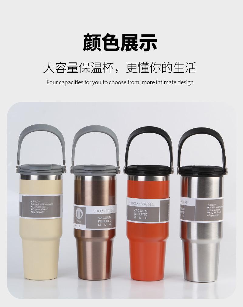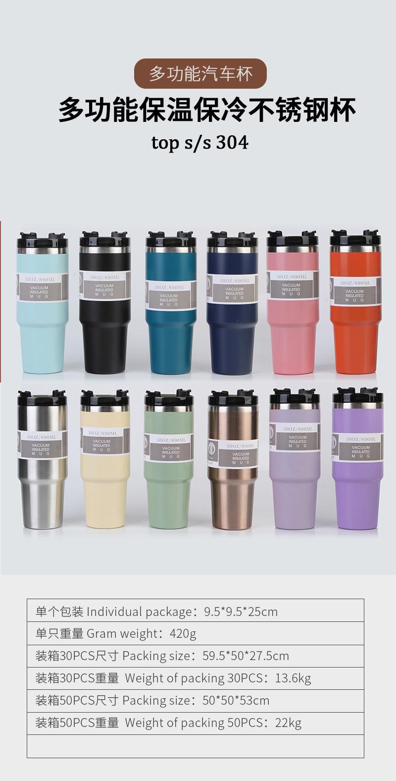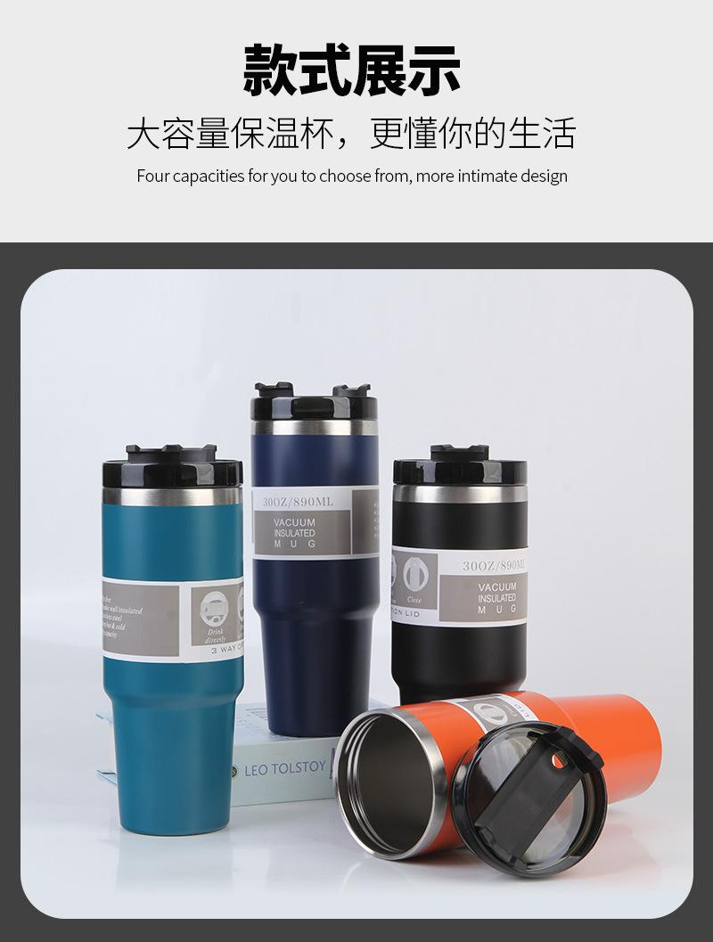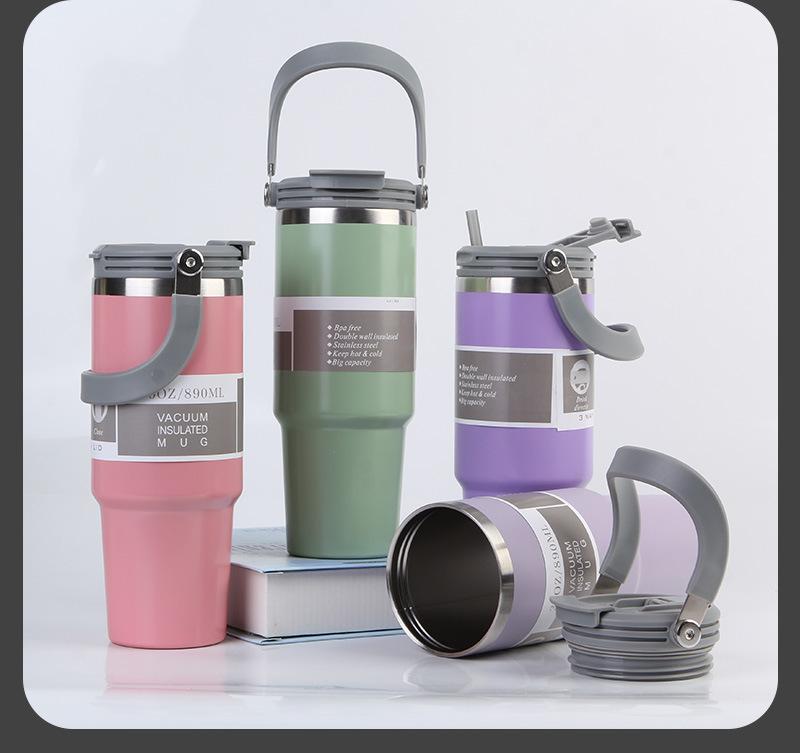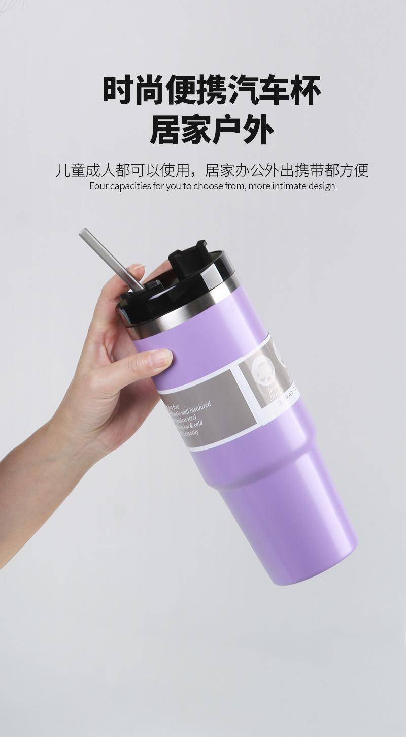 Vaso Cartera Transfronterizo de 20 oz/30 oz para Coche con Pajita para Mantener Frío Vaso de Hielo Vaso de Acero Inoxidable Aislado al Vacío para Coche