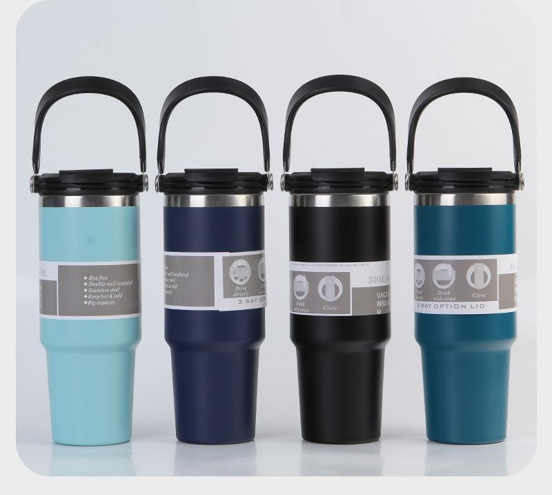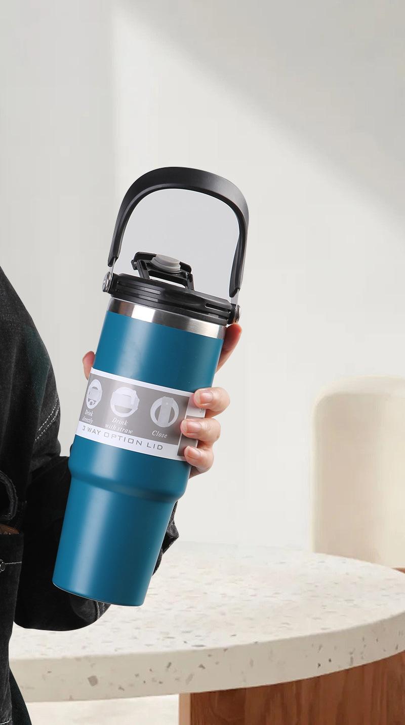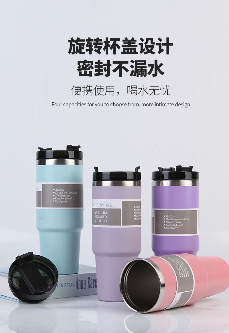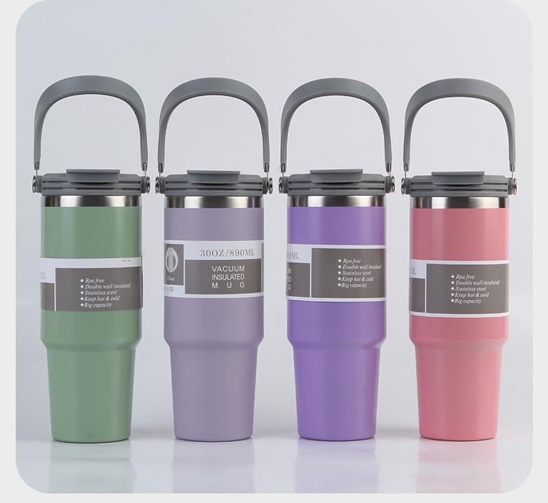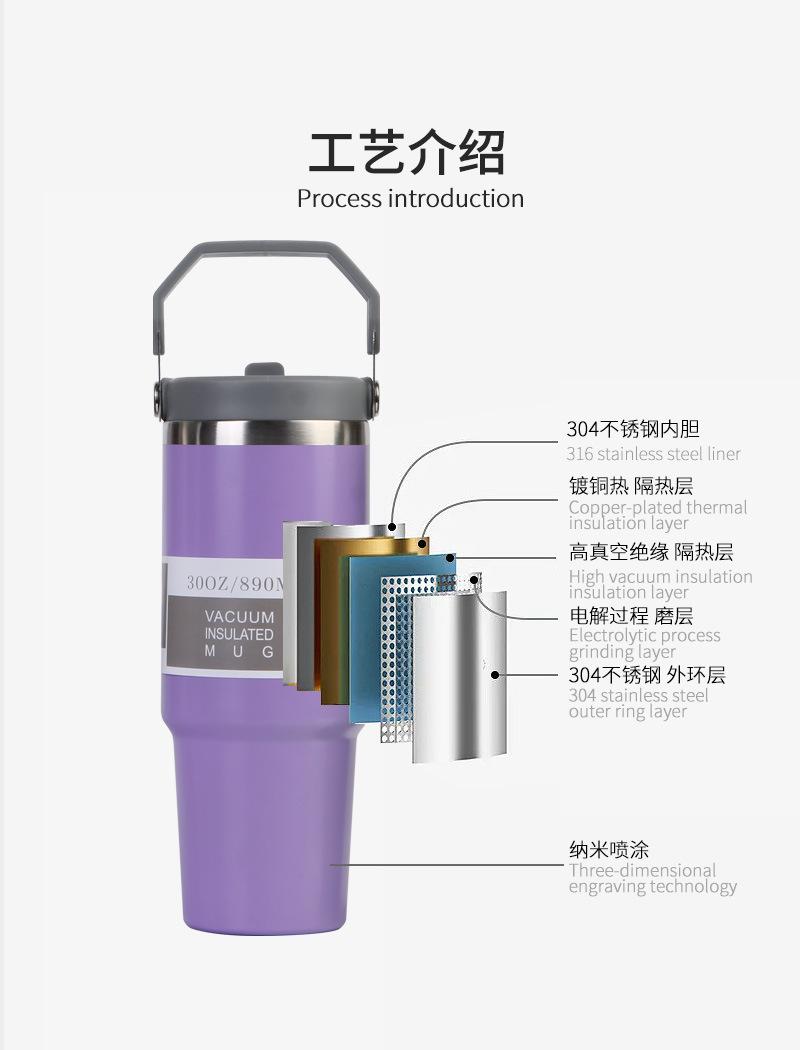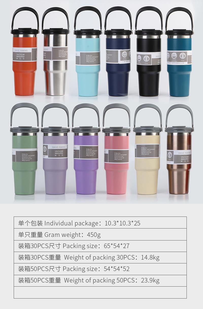 Vaso Cartera Transfronterizo de 20 oz/30 oz para Coche con Pajita para Mantener Frío Vaso de Hielo Vaso de Acero Inoxidable Aislado al Vacío para Coche