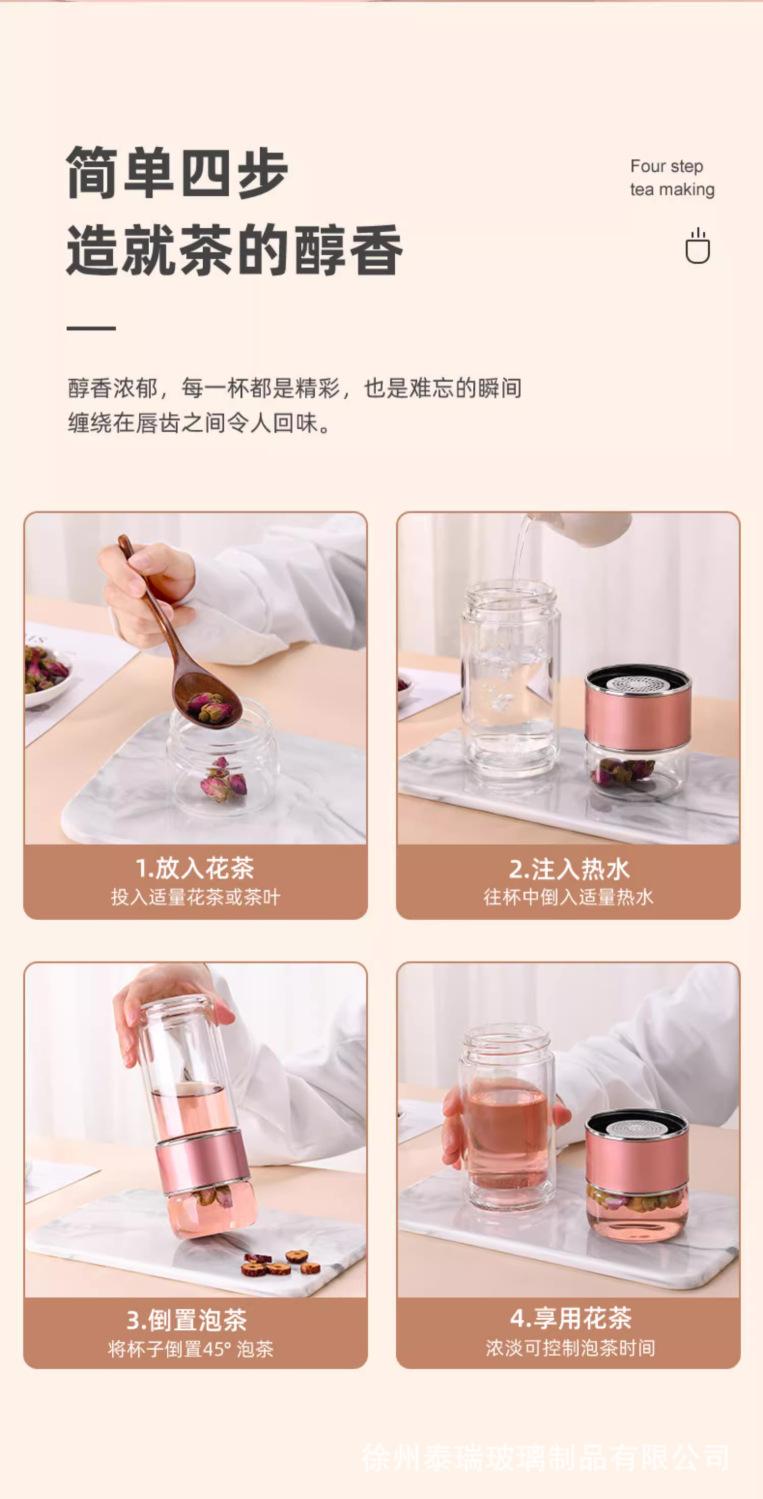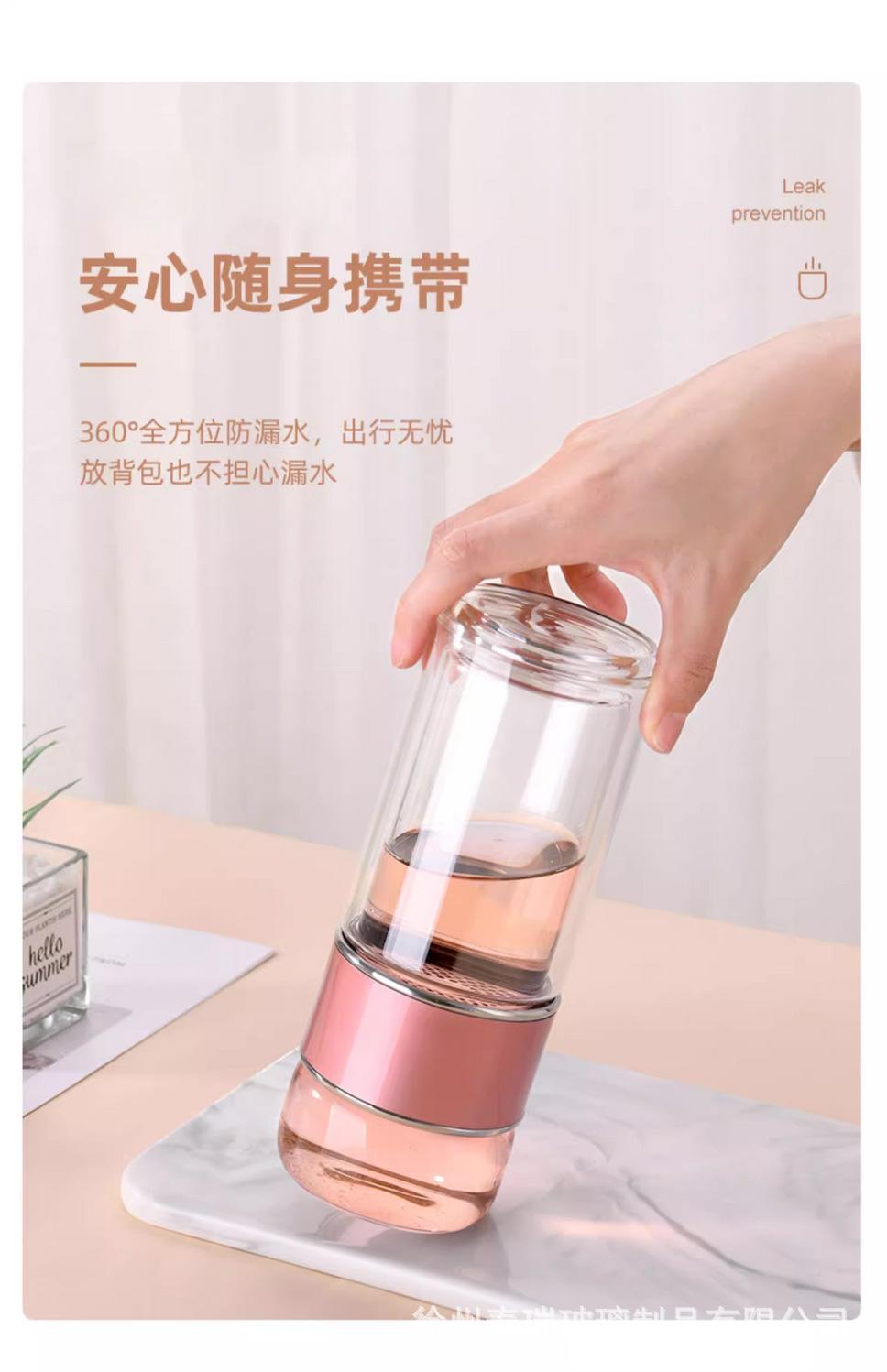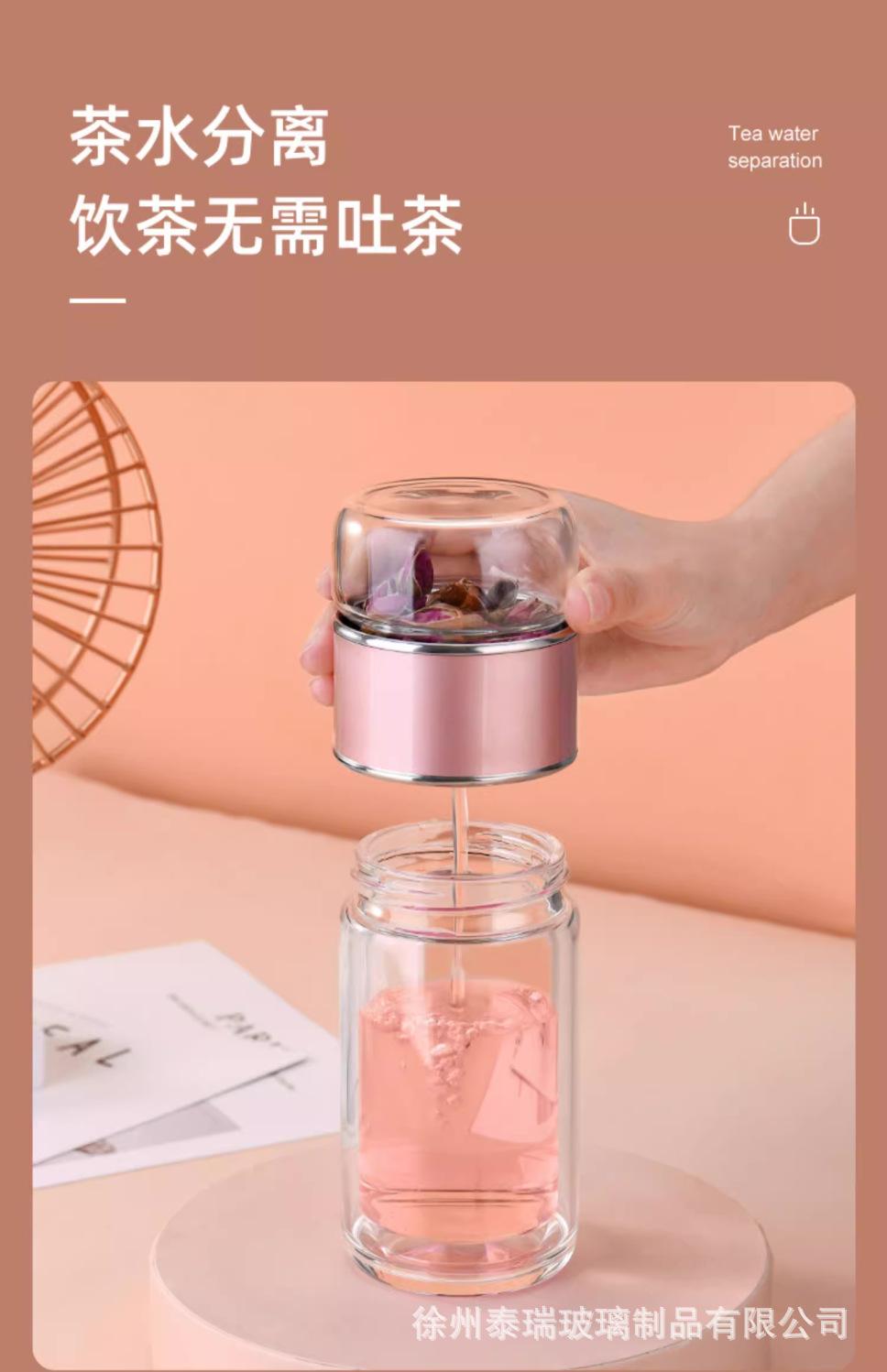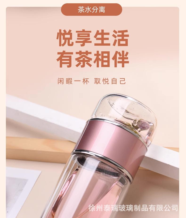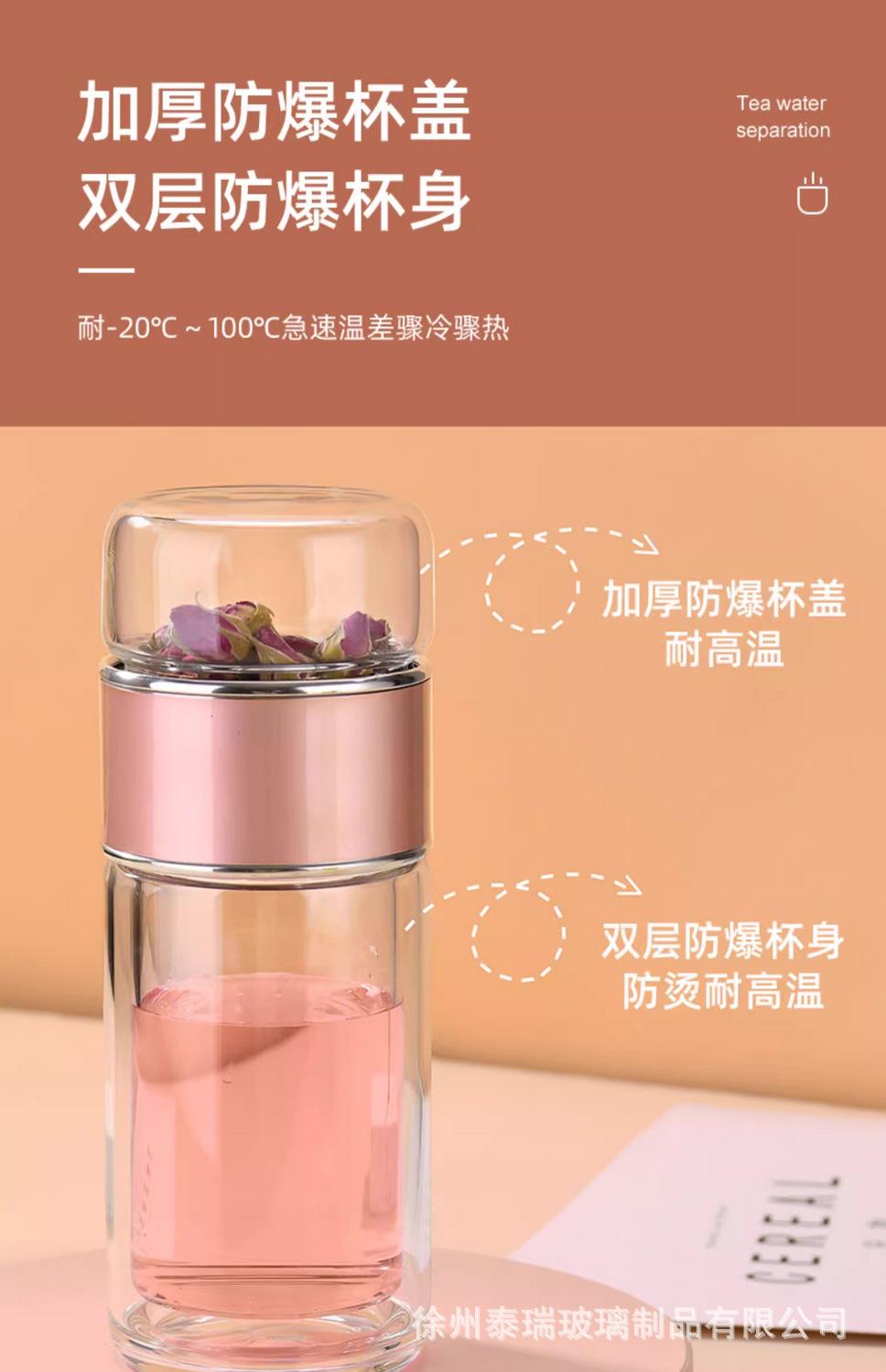 Taza Separadora de Té Vaso de Vidrio de Doble Capa Transparente Portátil Taza de Té de Oficina Taza Creativa Logo Imprimible