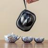 Azul Plata y Flor Taza Express Juego de Té Portátil para Viaje Traje Una Tetera Dos Tazas Té para Camping al Aire Libre Regalo Especial