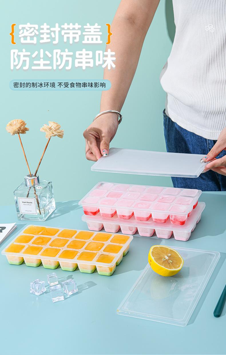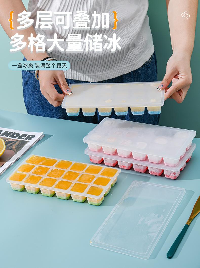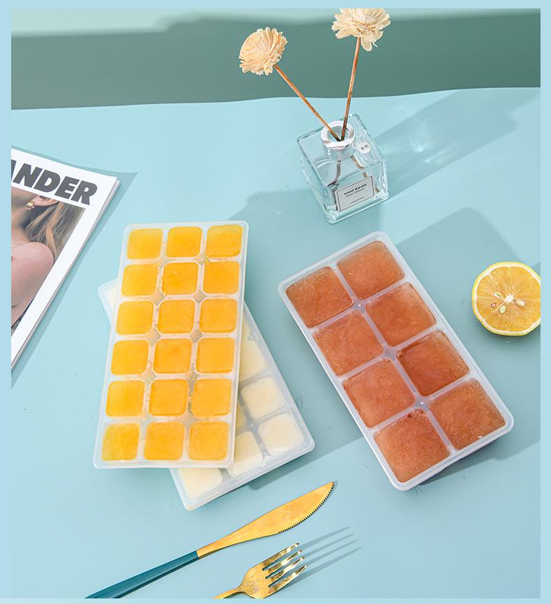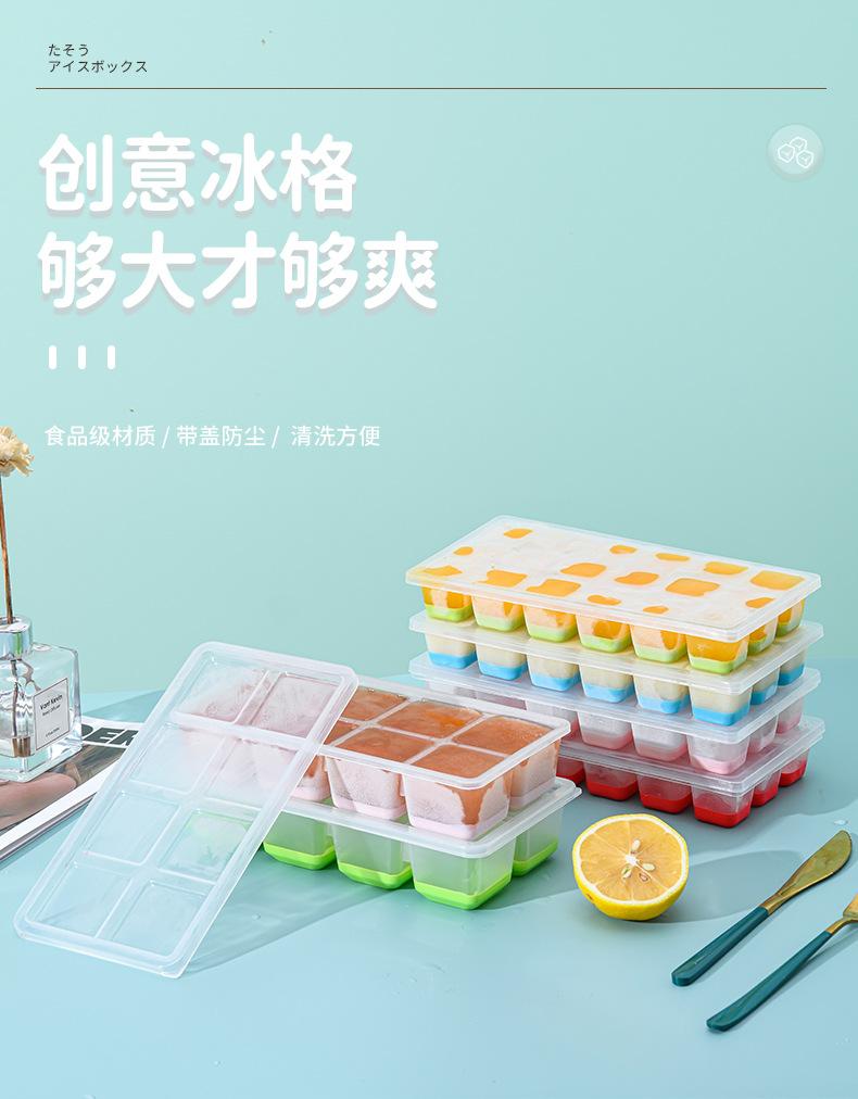 Molde de Cubitos de Hielo de Plástico Creativo Simple Cubito de Hielo Grande con Tapa Fondo Suave Molde Bandeja de Hielo Molde de Cubitos de Hielo de Silicona Hielera