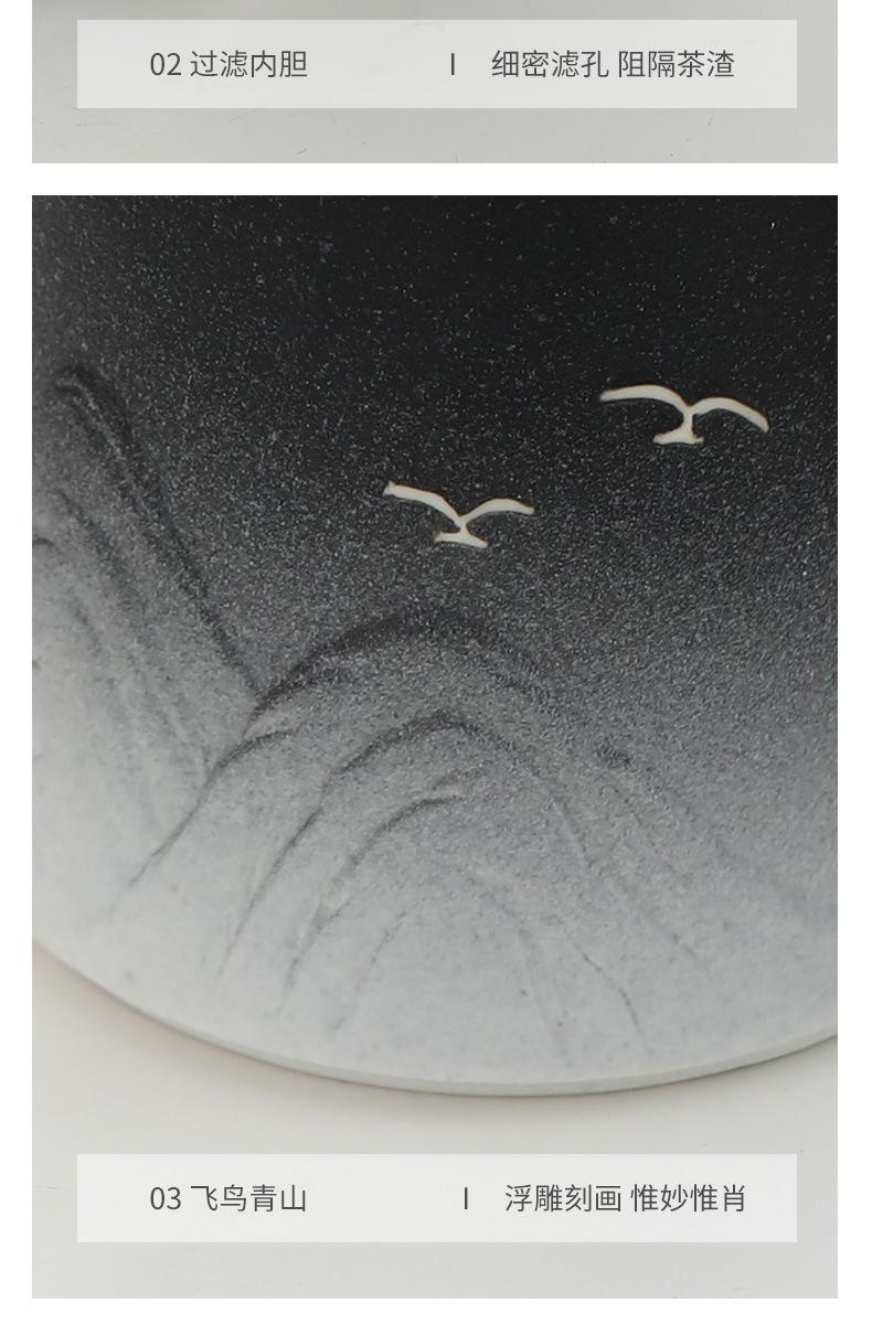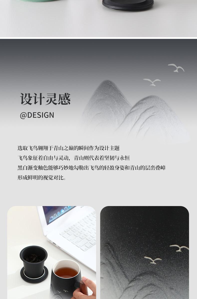 [ceramic handle] black and white gradient-fei bird qingshan office cup