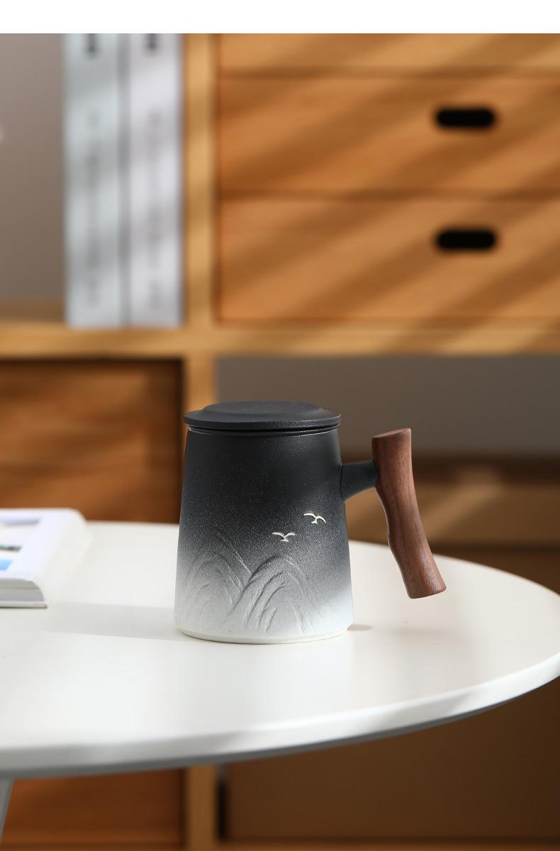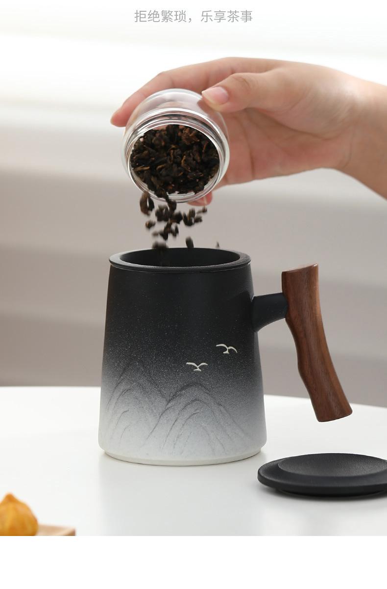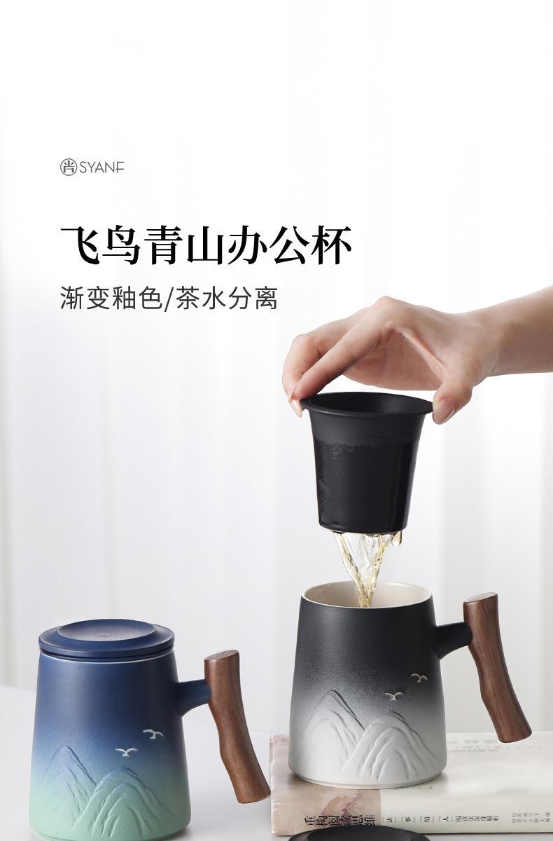 Taza de Té de Cerámica Separación de Té Personal para Hombre Oficina de Alta Gama Taza de Agua con Filtro y Tapa
