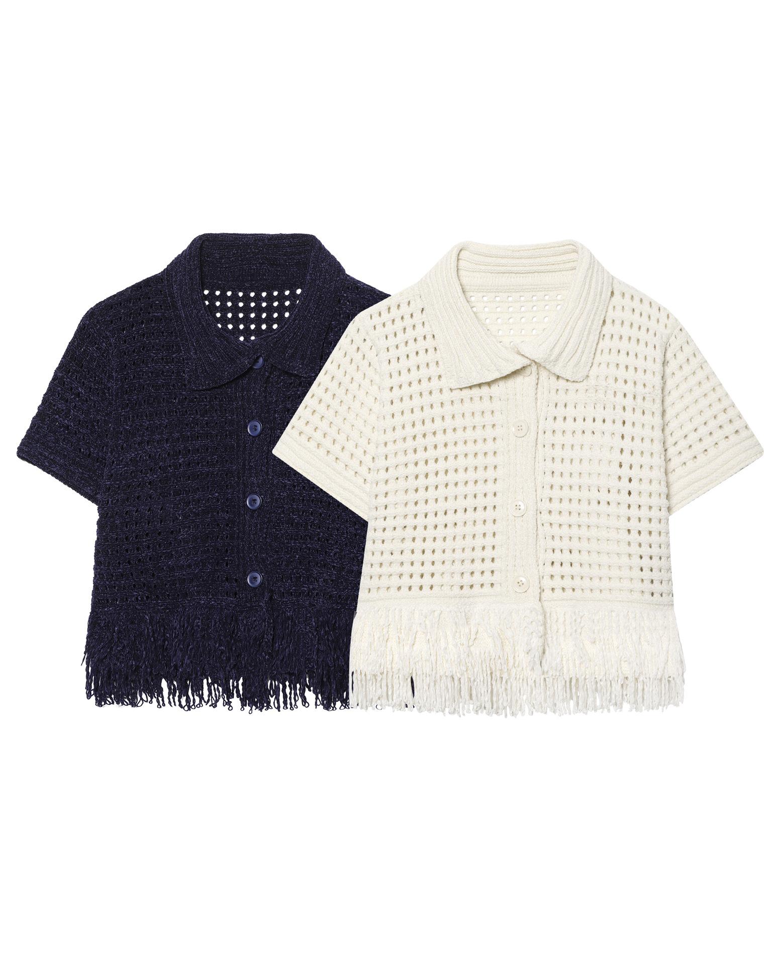 Off-white top, Navy blue top, Off-white skirt, Navy blue skirt