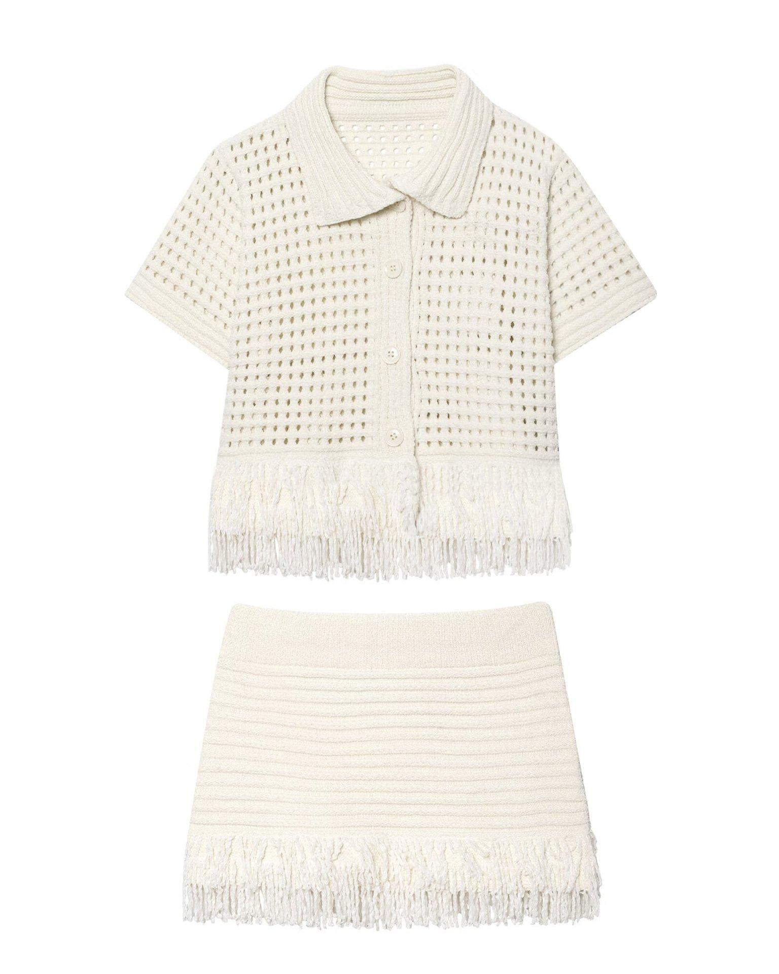 2025 Nuevos Productos de Verano Ropa de Mujer Transfronteriza Europea y Americana Top a Cuadros Decorado con Flecos + Traje de Falda W063 1336