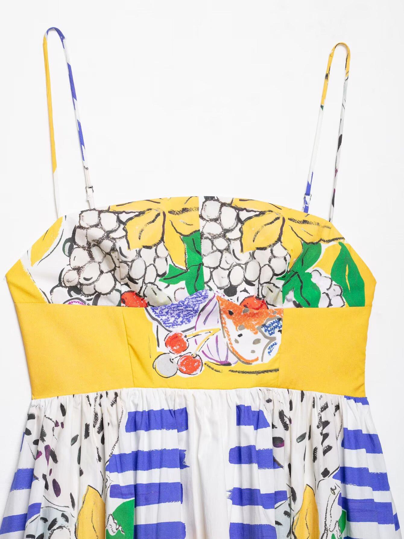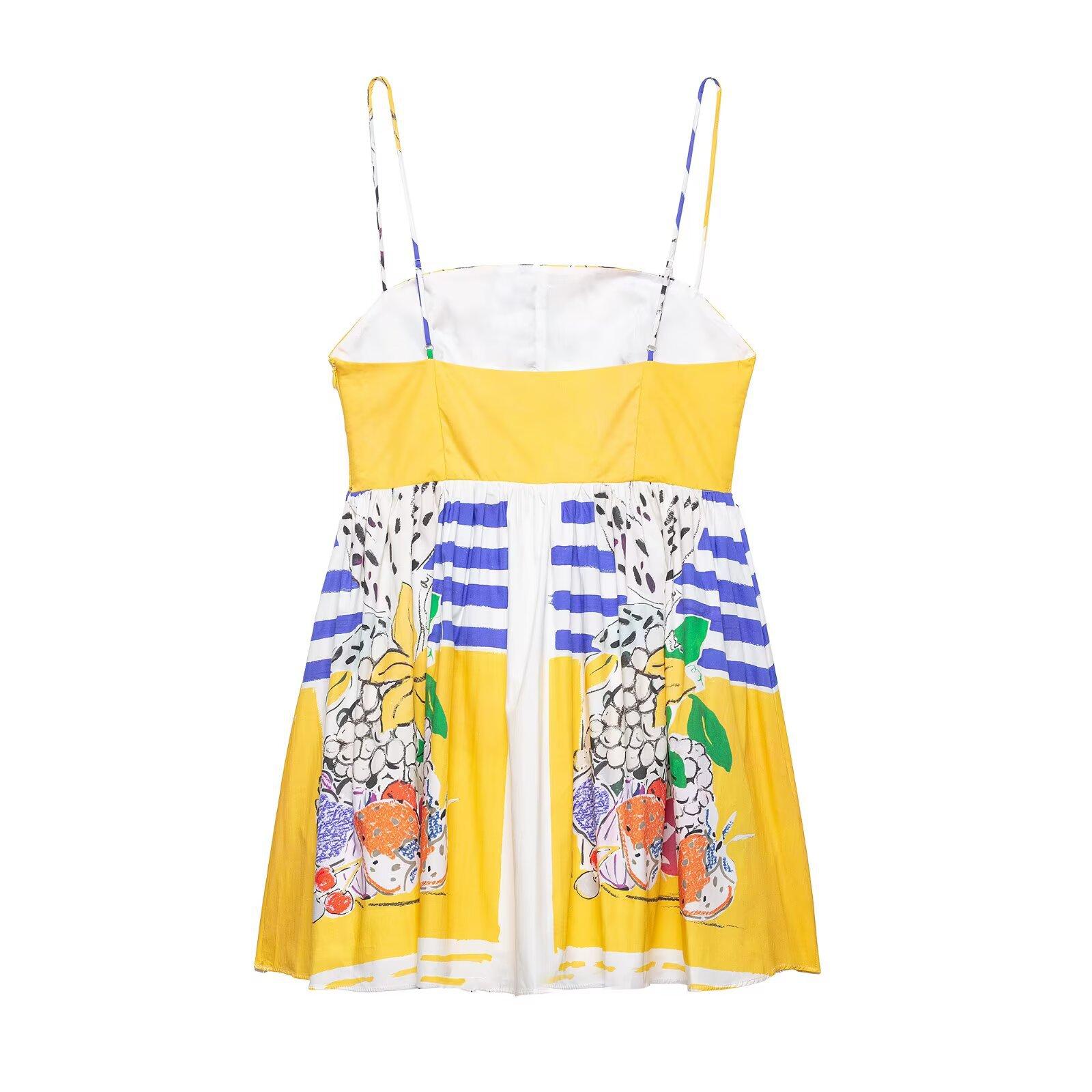 Verano 2025 nuevo ropa de mujer transfronteriza europea y americana moda callejera vestido de tirantes con estampado de frutas w03 6456