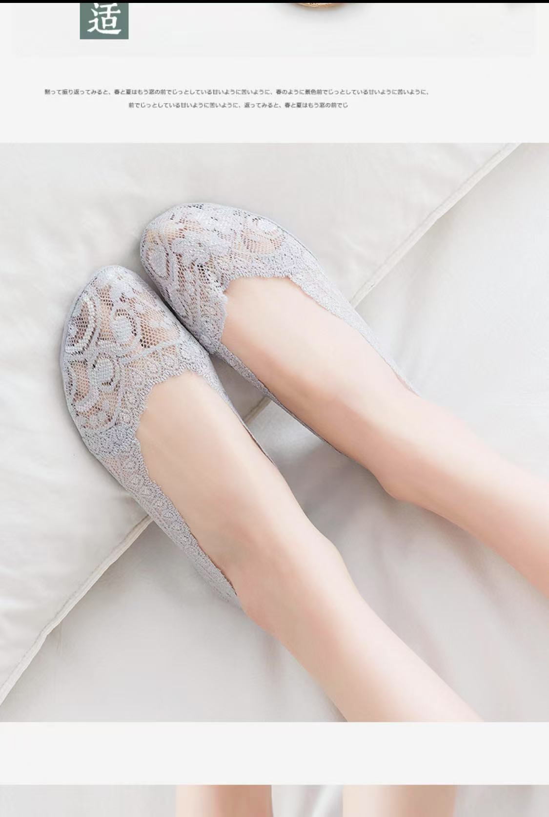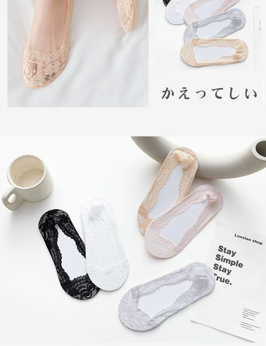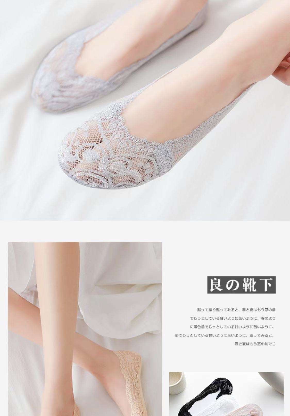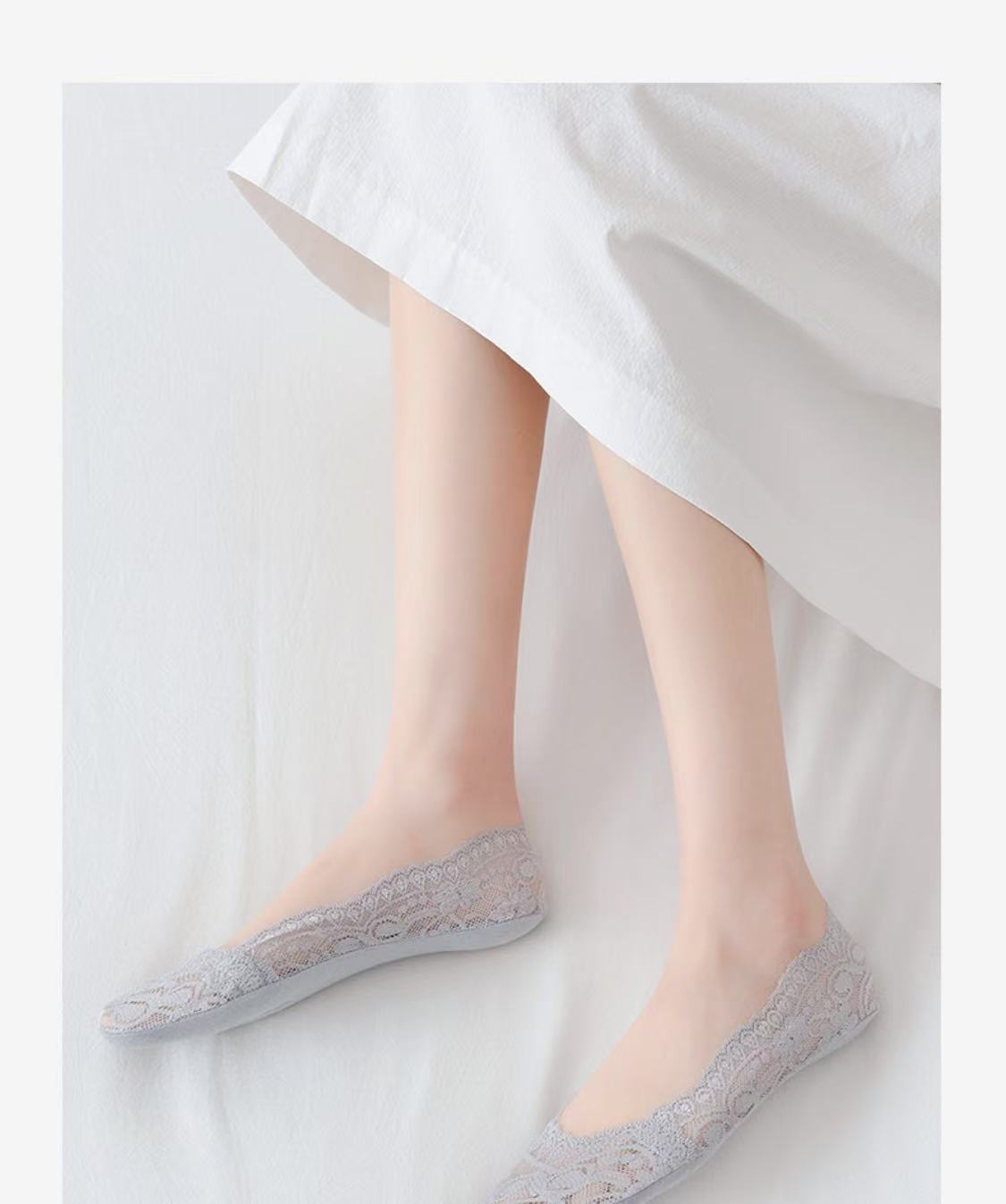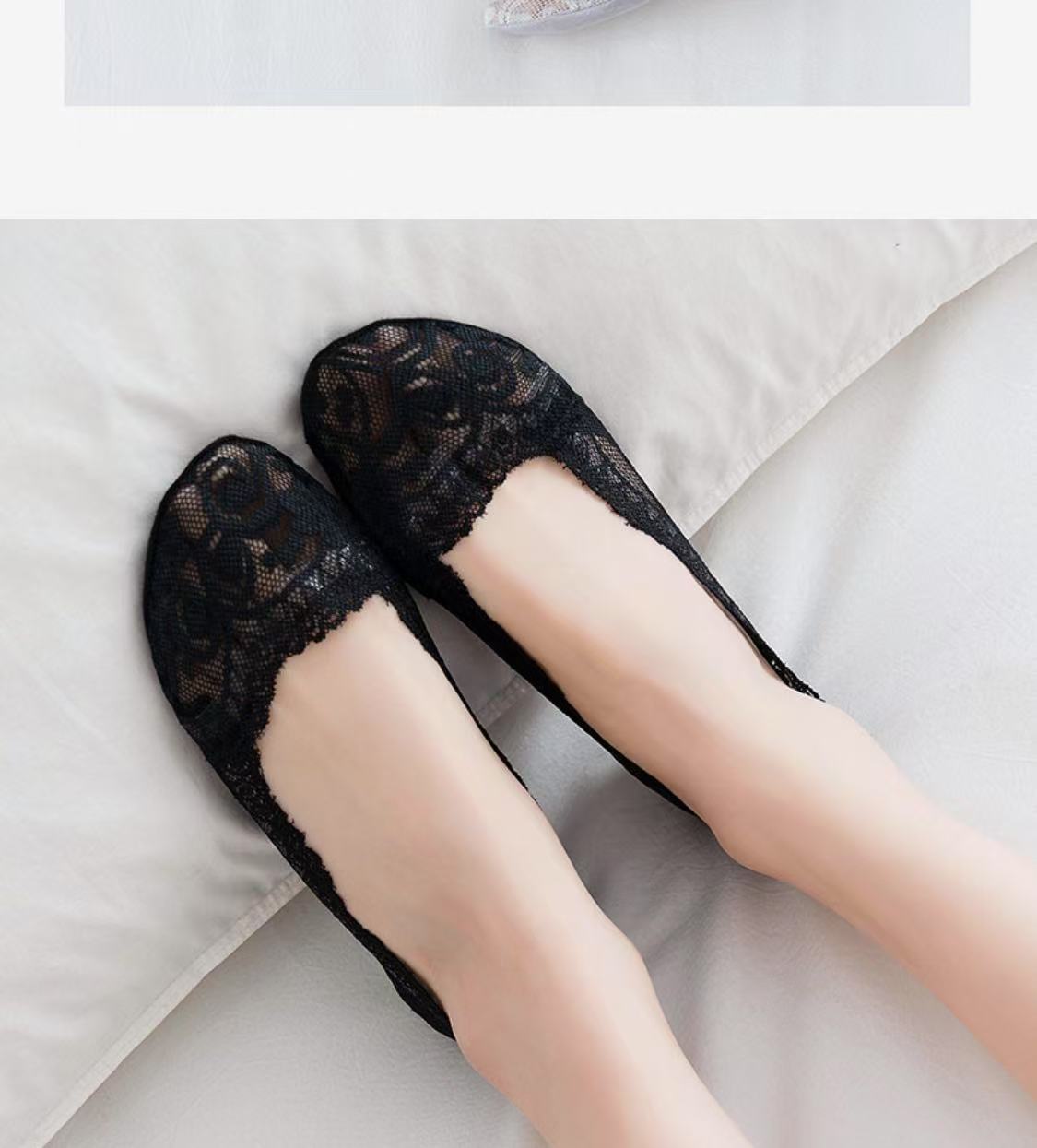 Lan Fengling Calcetines de Barco para Mujer Encaje Boca Baja Silicona Antideslizante Estilo Coreano Recorte Primavera, Verano y Otoño Calcetines Finos Invisibles
