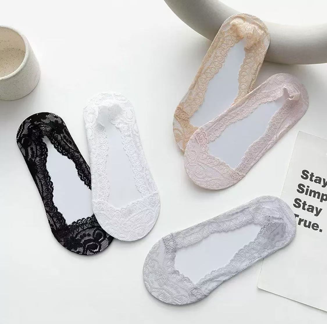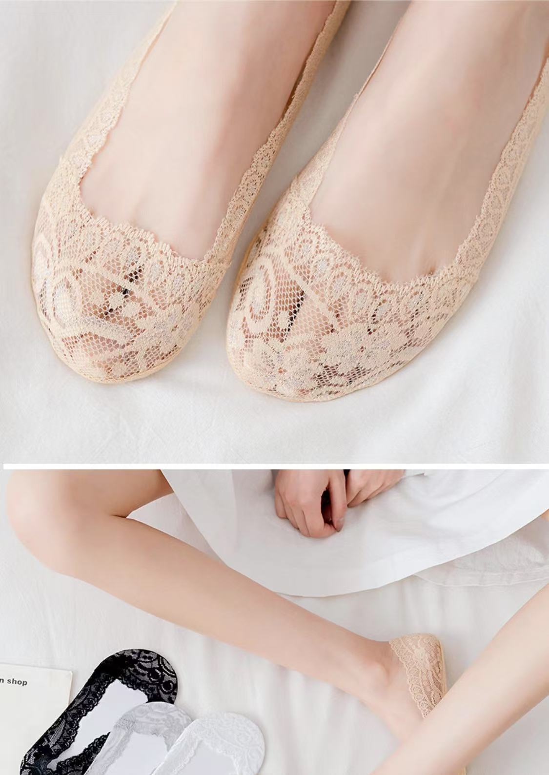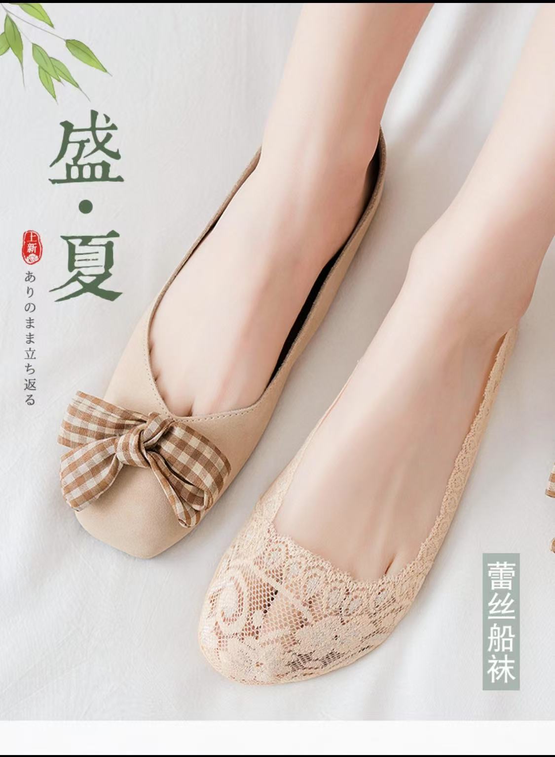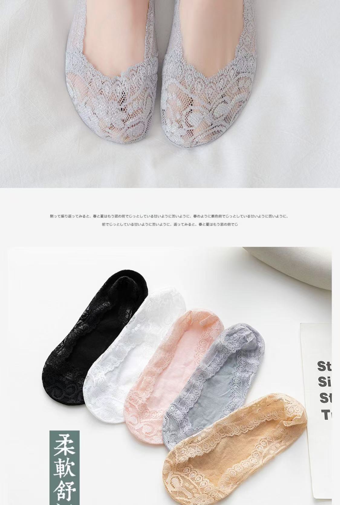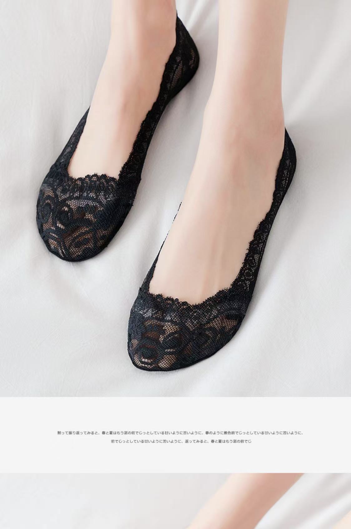 Lan Fengling Calcetines de Barco para Mujer Encaje Boca Baja Silicona Antideslizante Estilo Coreano Recorte Primavera, Verano y Otoño Calcetines Finos Invisibles