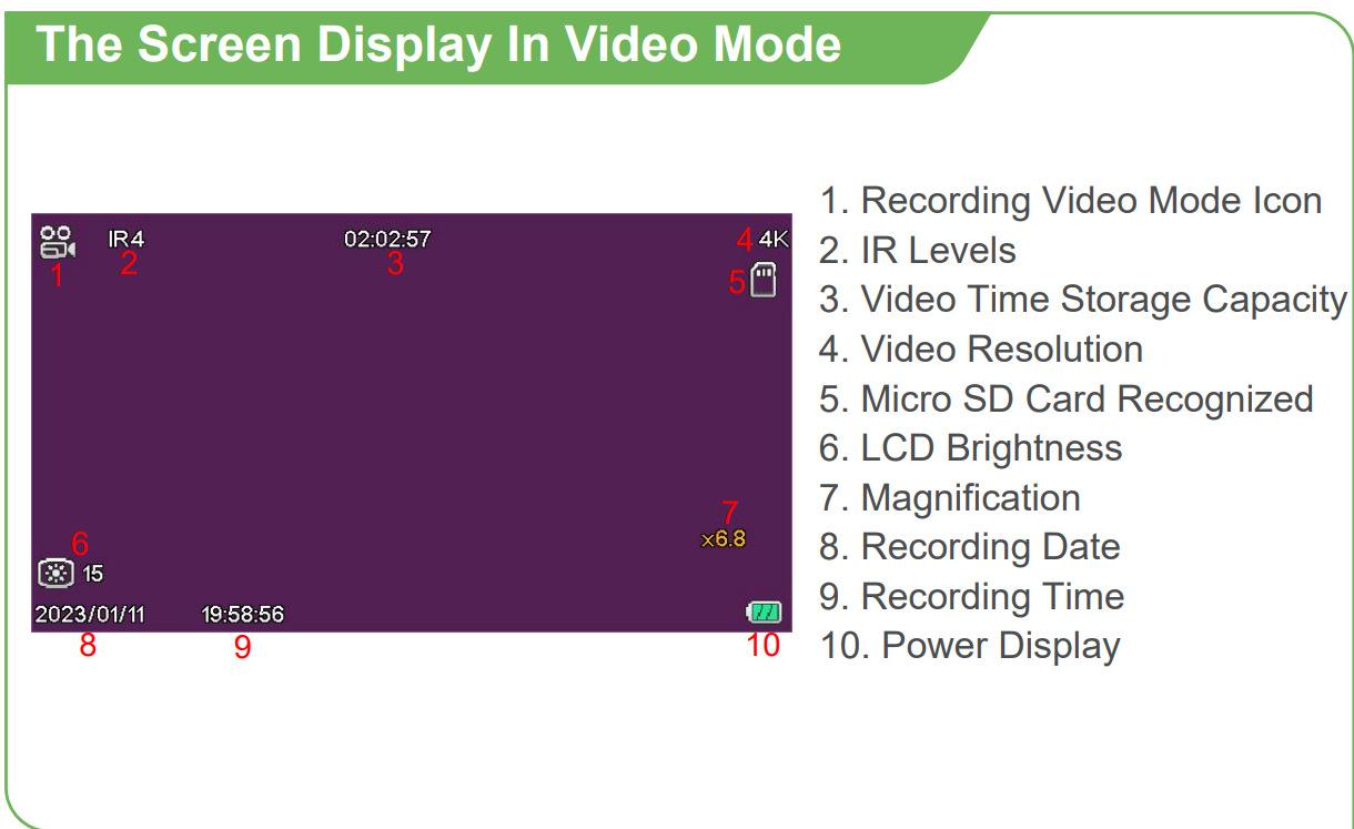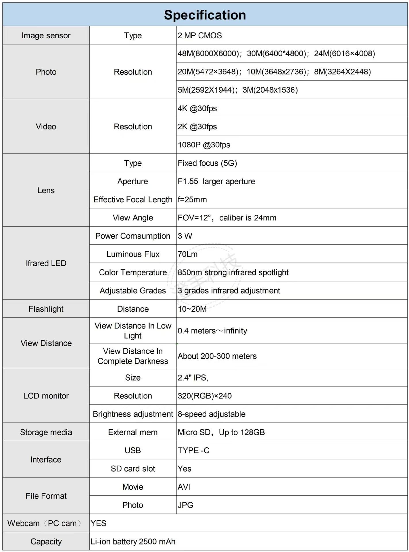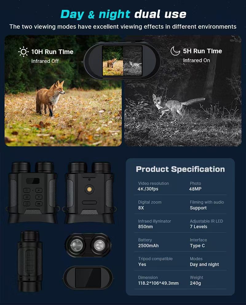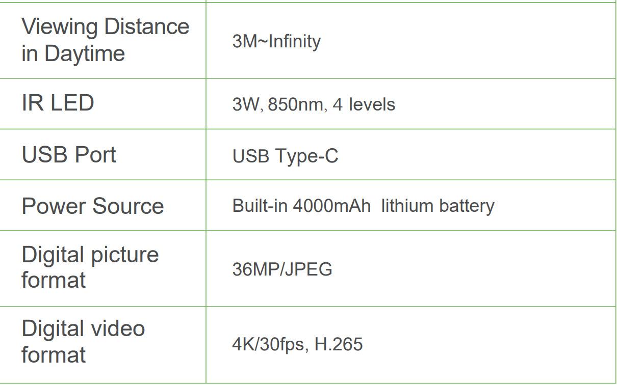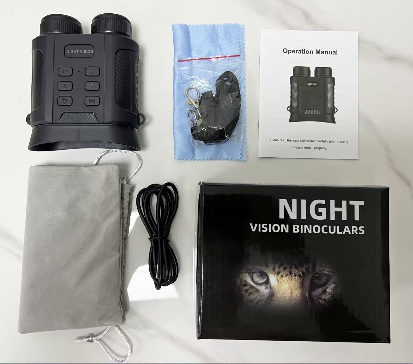 Lista de empaque: Dispositivo de visión nocturna Cable USB Bolsa de terciopelo Cordón Paño de limpieza Manual en chino e inglés